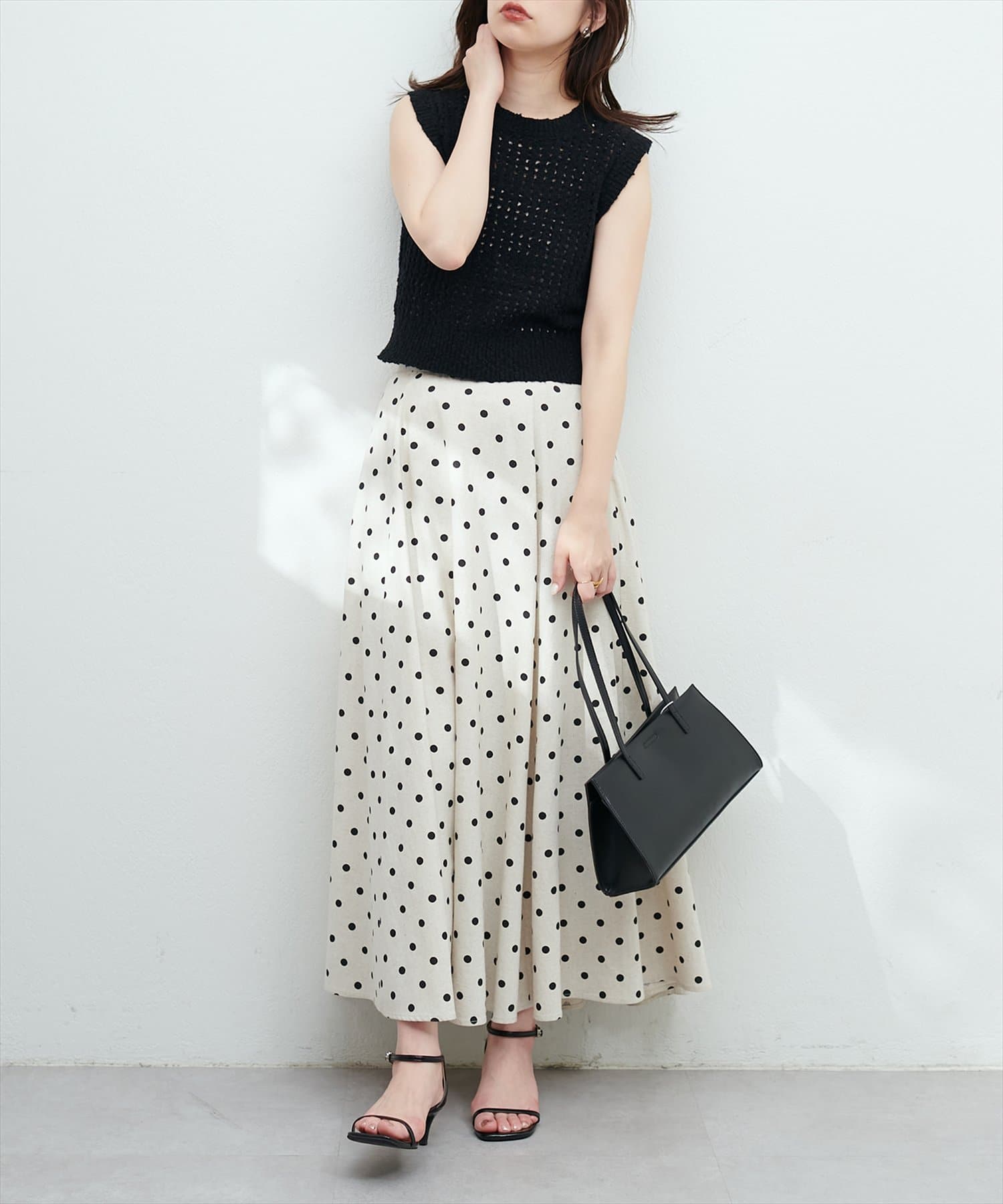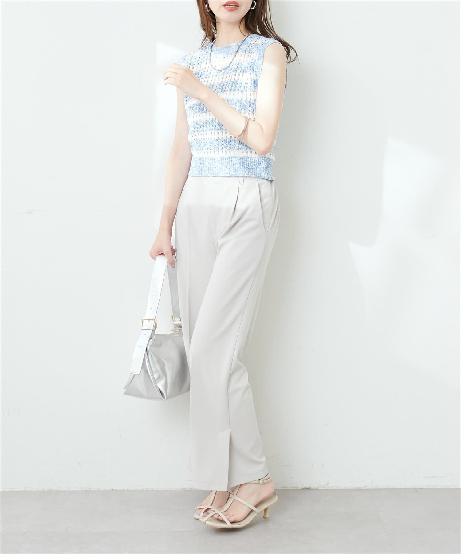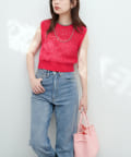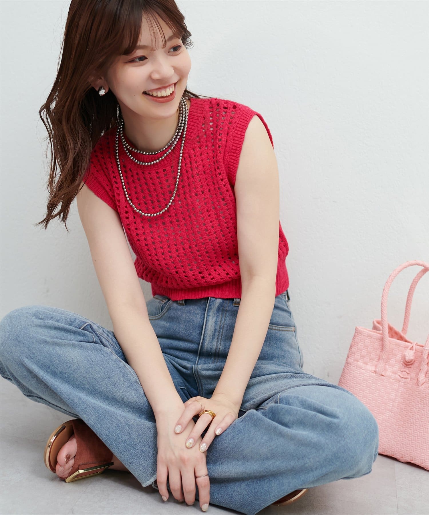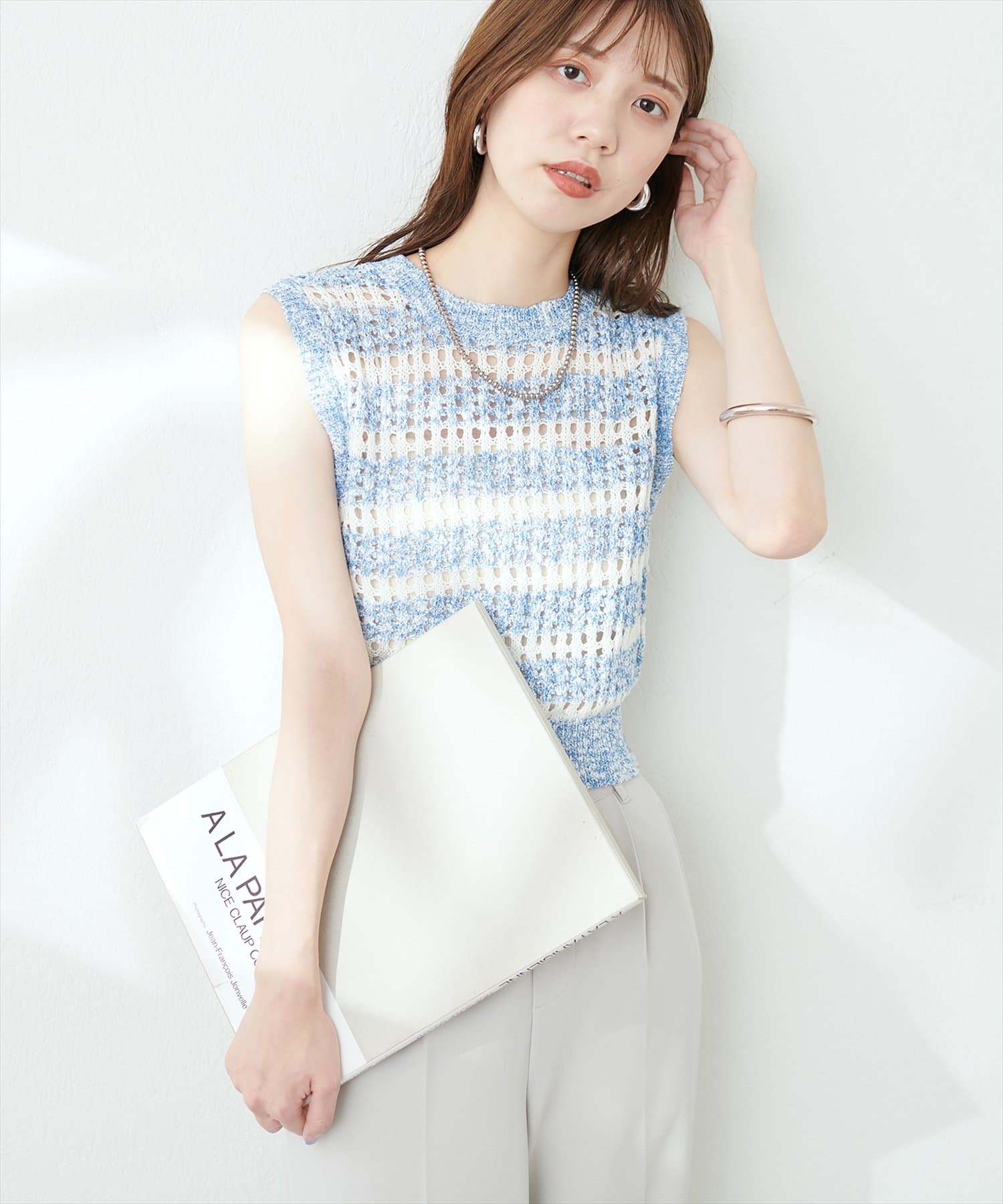 すっきりとしたノースリーブで爽やかな印象のニットトップス。