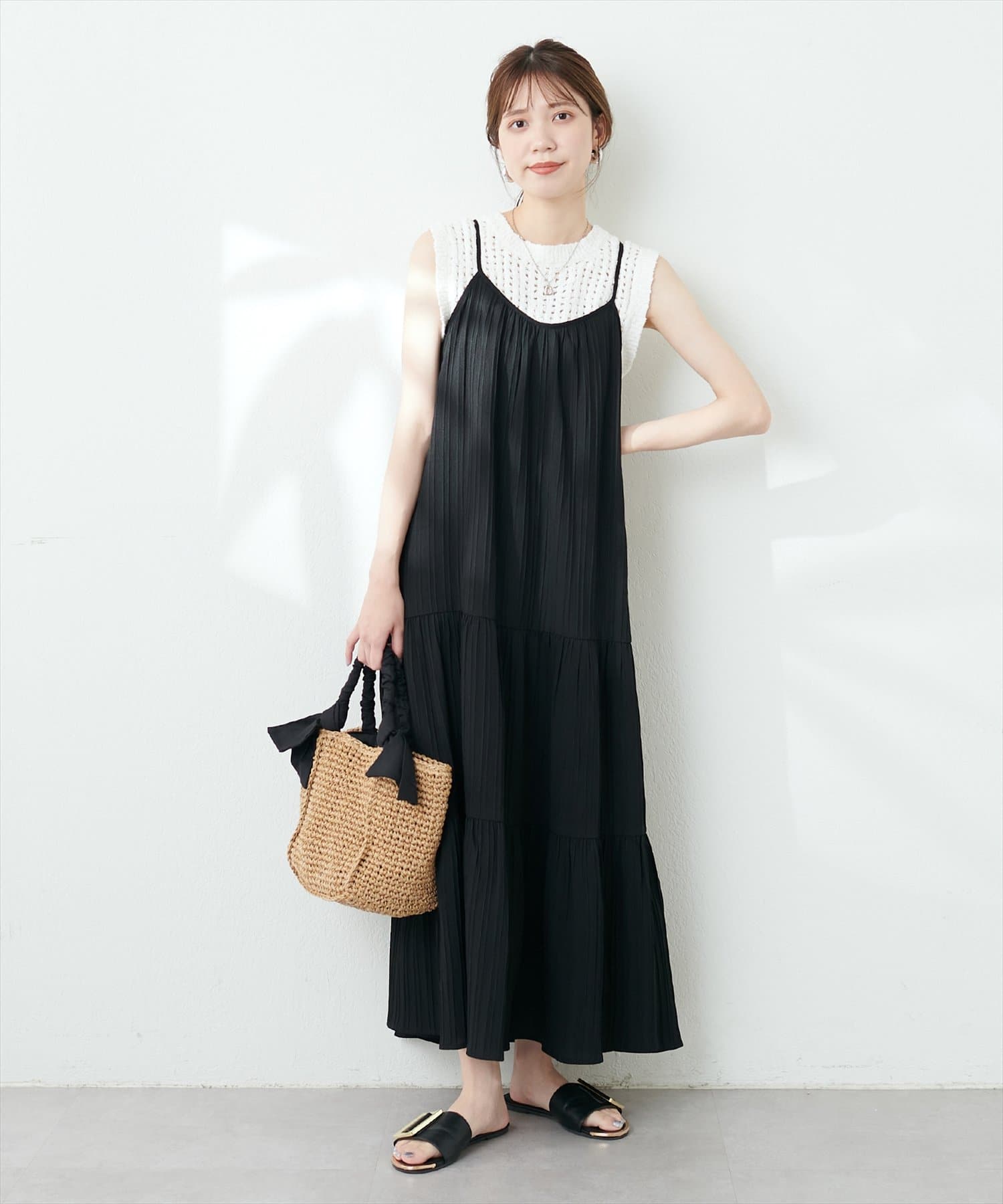 キャミワンピースやサロペットのインナーにすれば、涼やかなトレンドコーデが完成します。