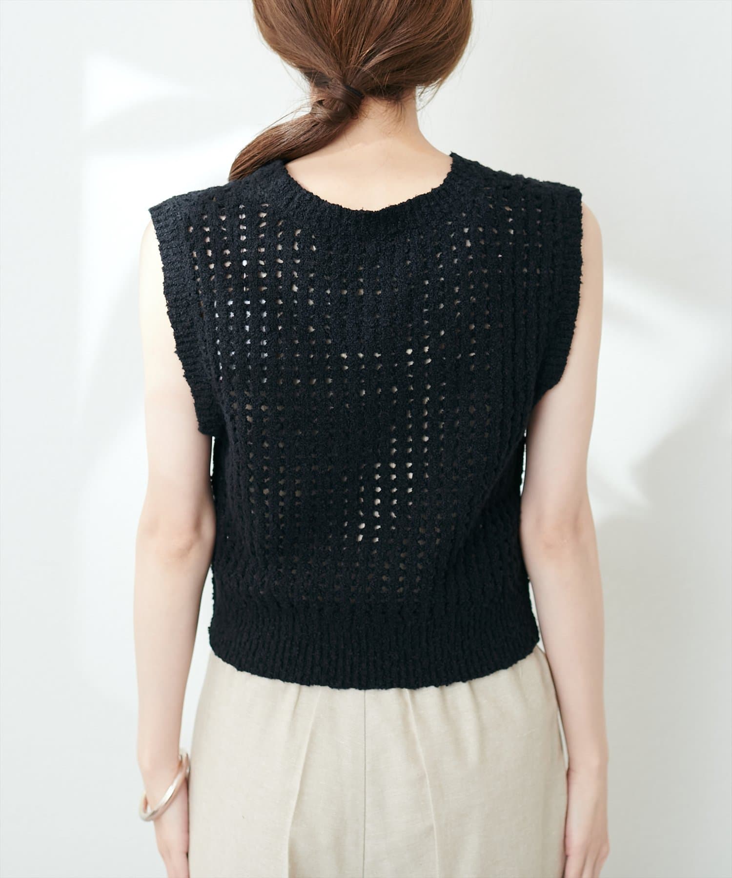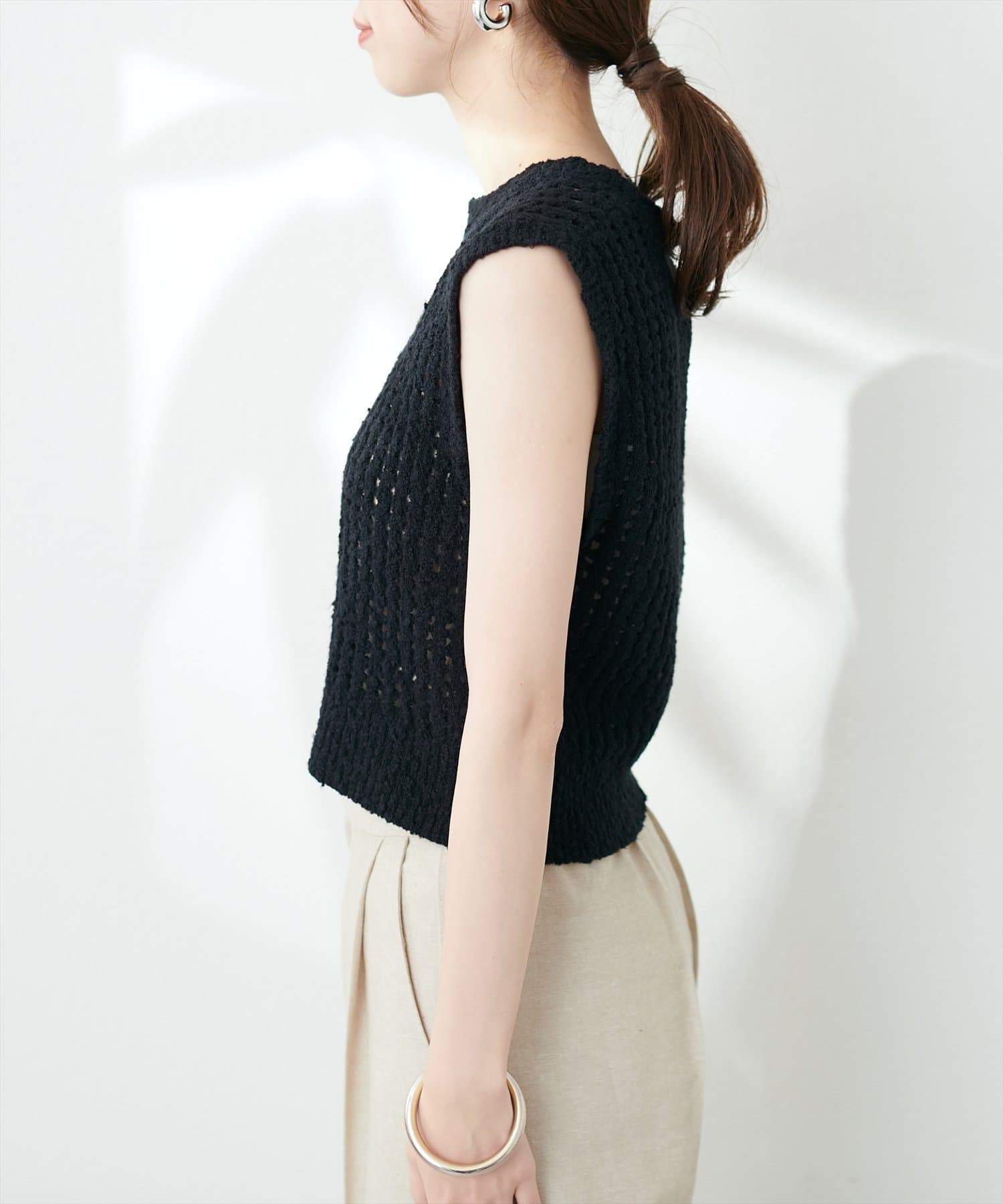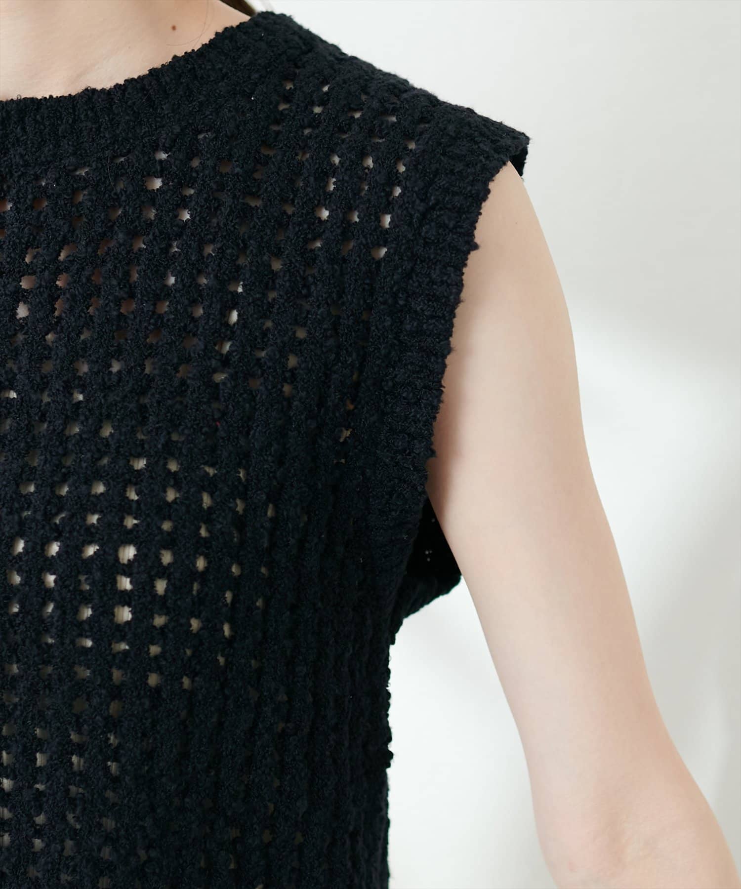 メッシュの編地がトレンド感のあるノースリーブプルオーバー