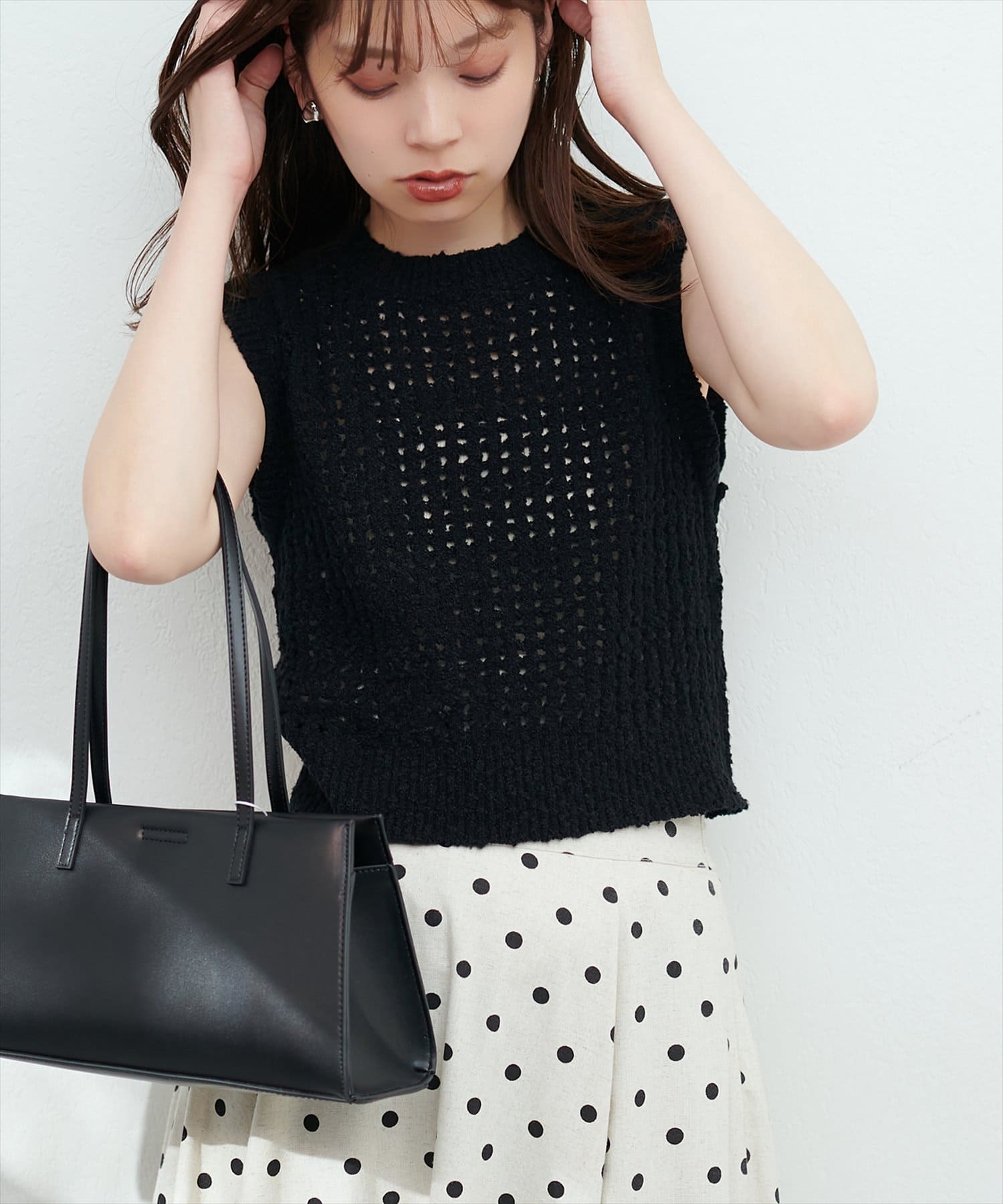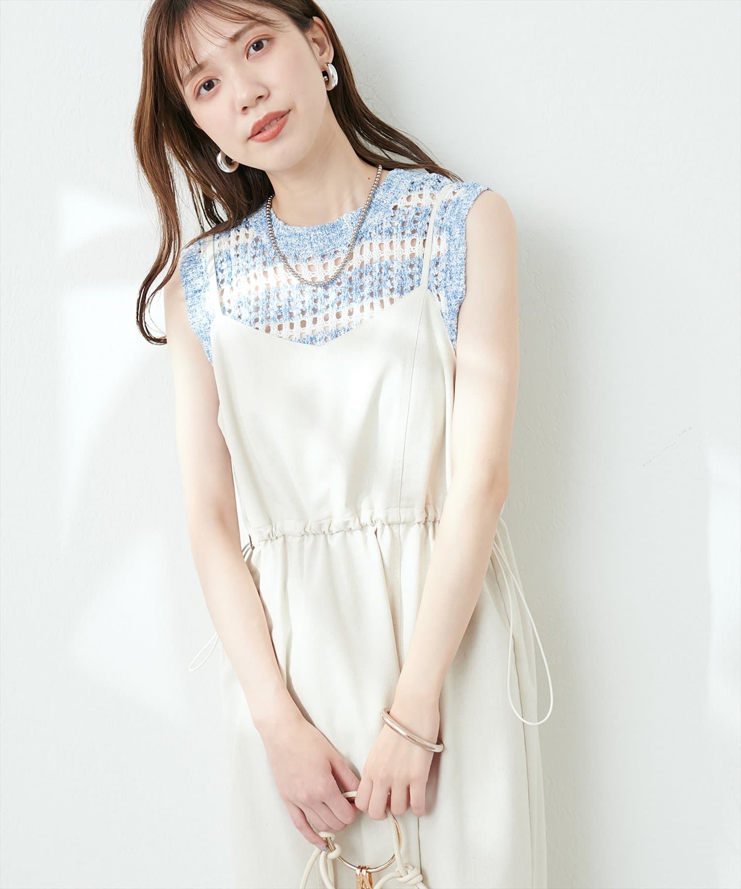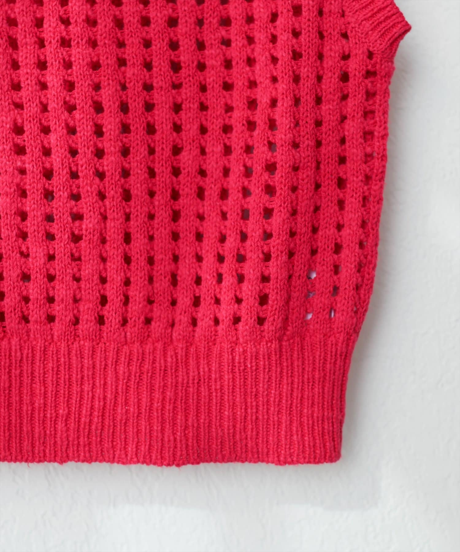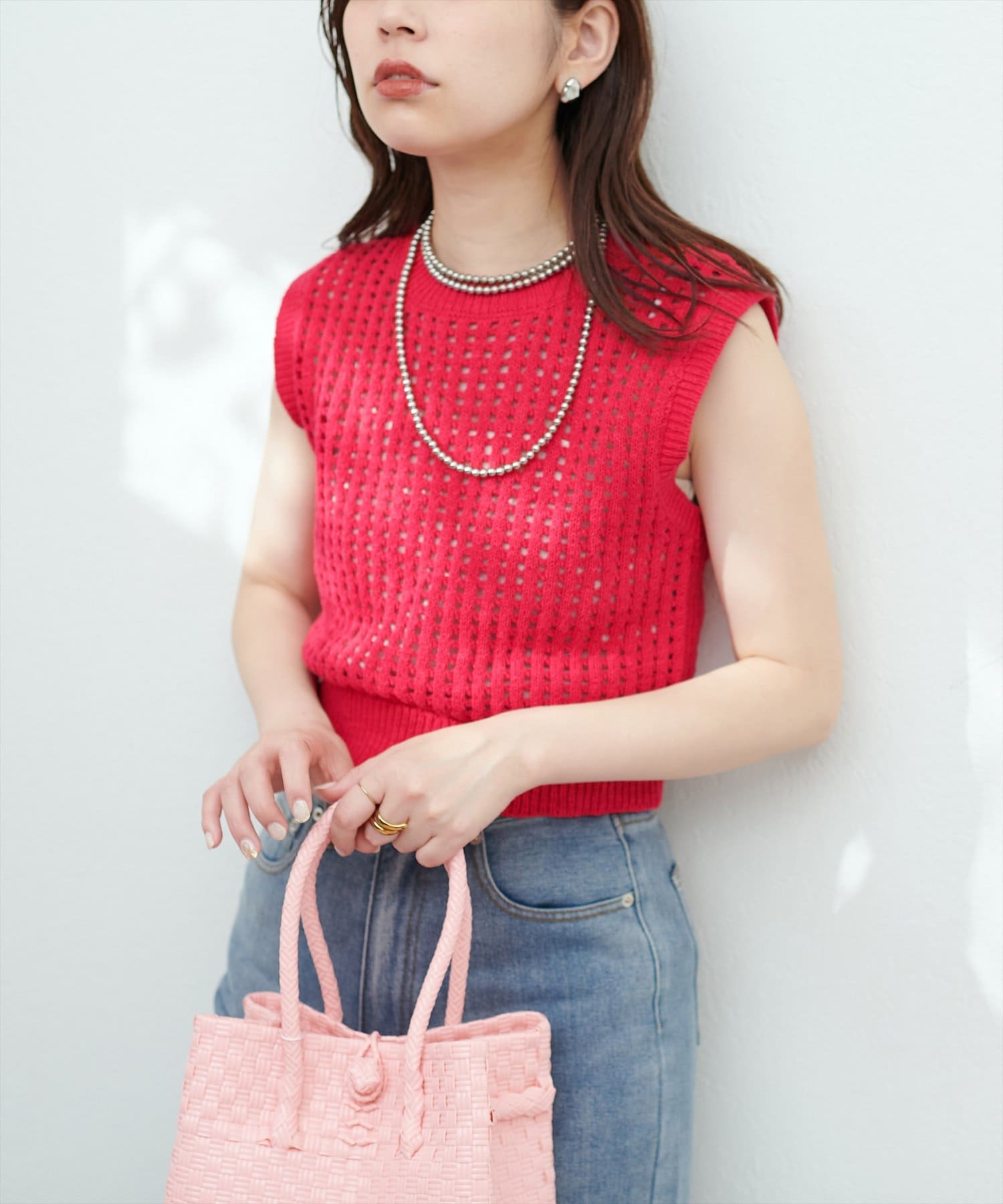 メッシュの編地がトレンド感のあるノースリーブプルオーバー
