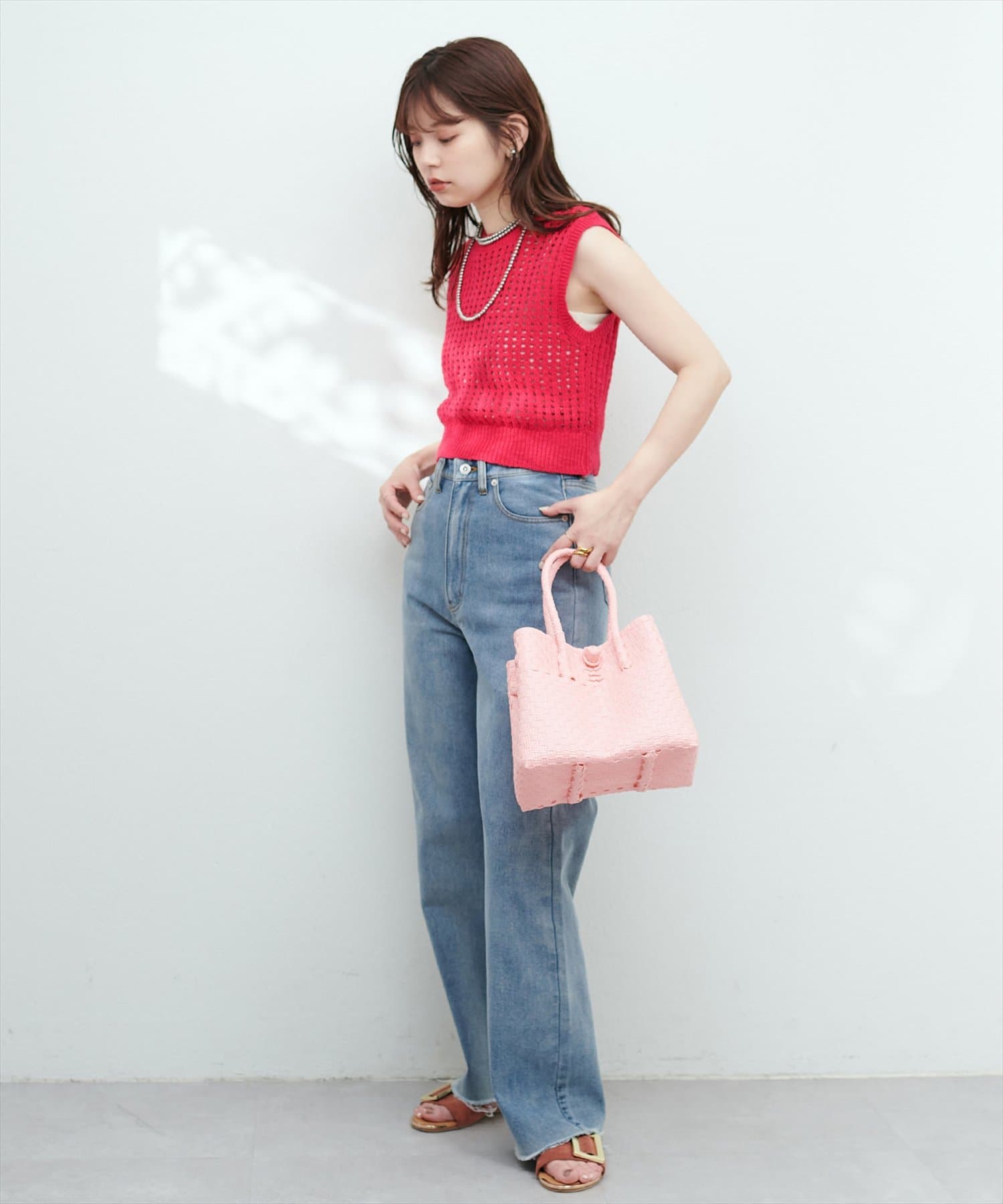 真夏はインナーをキャミソールやタンクトップにして涼しげで程よく抜け感のあるスタイリングにするのがおすすめ。