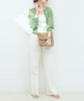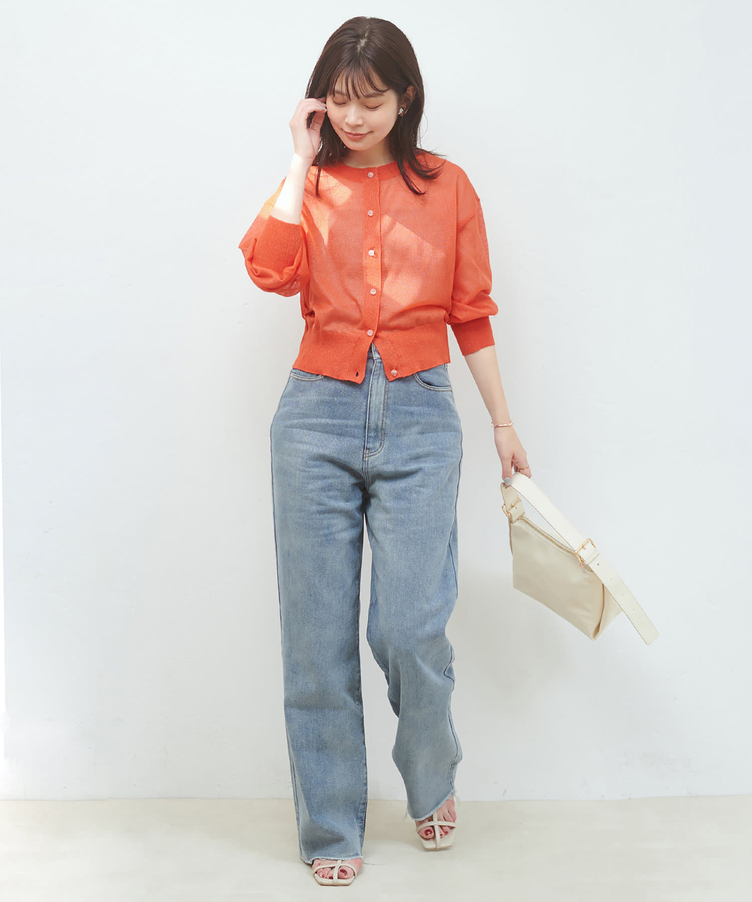 ベーシックなクルーネックカーディガンなので、ノースリーブや半袖の羽織にはもちろん、肩掛けなどでコーディネートにアクセントを加えるのもおすすめです。