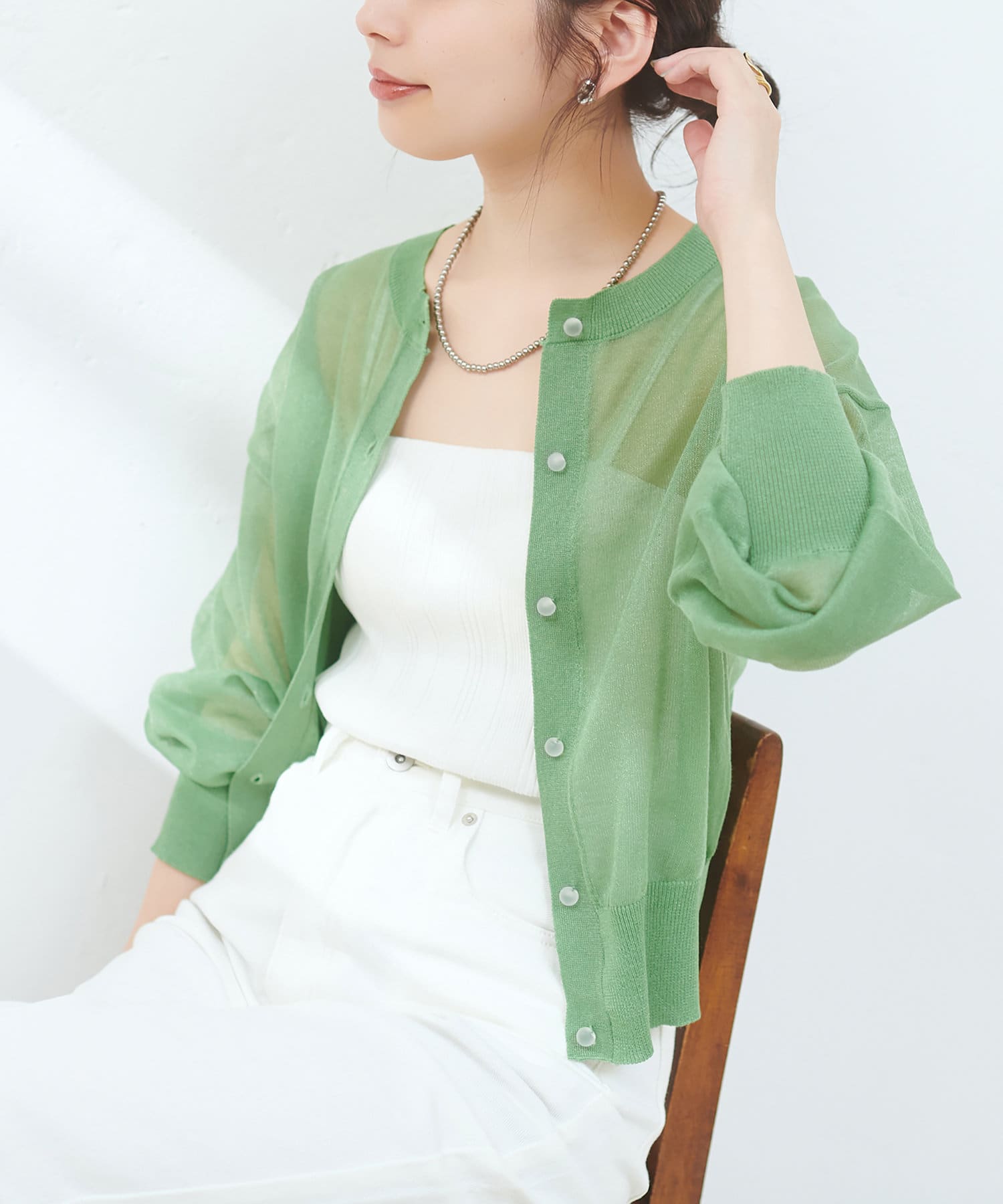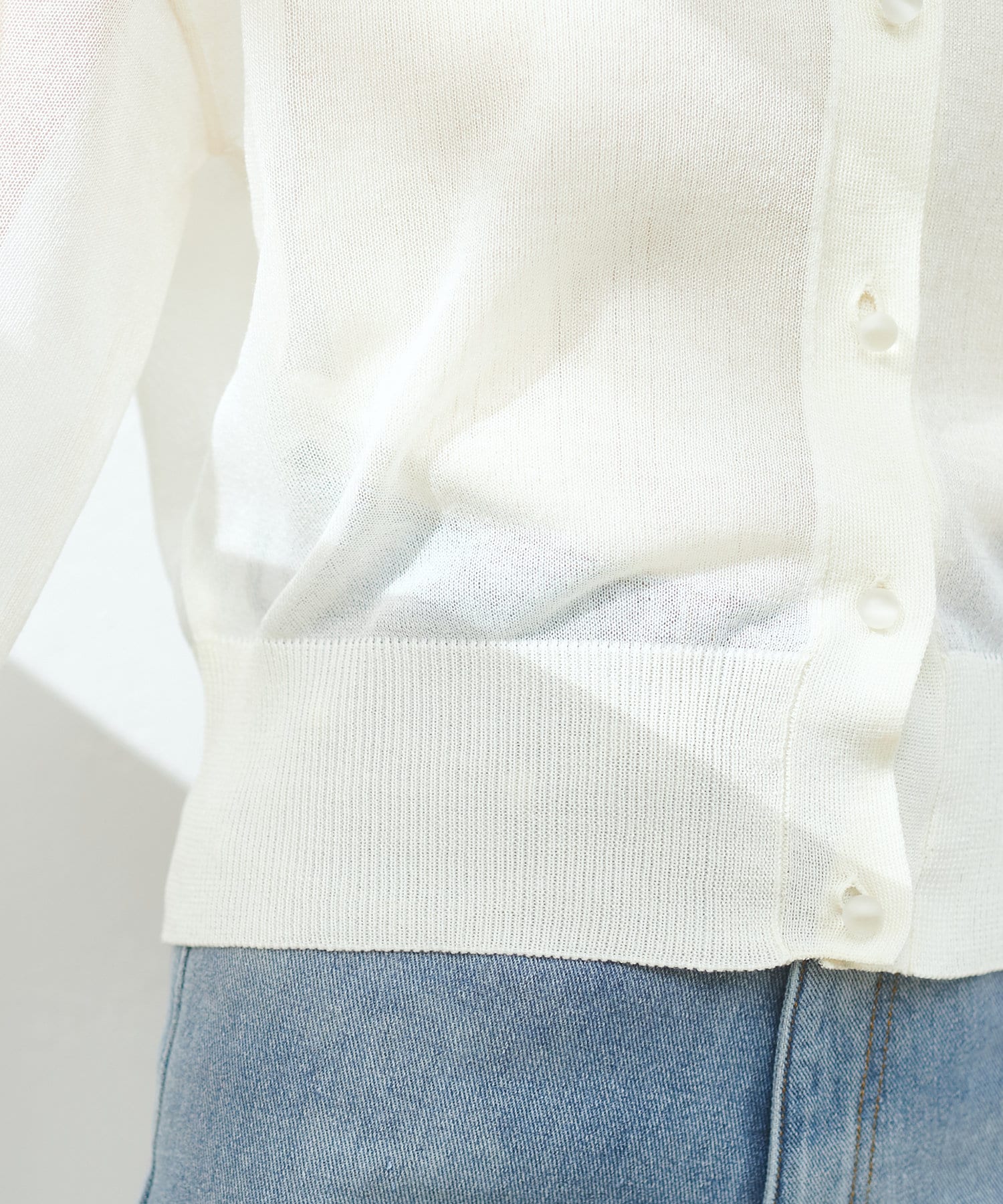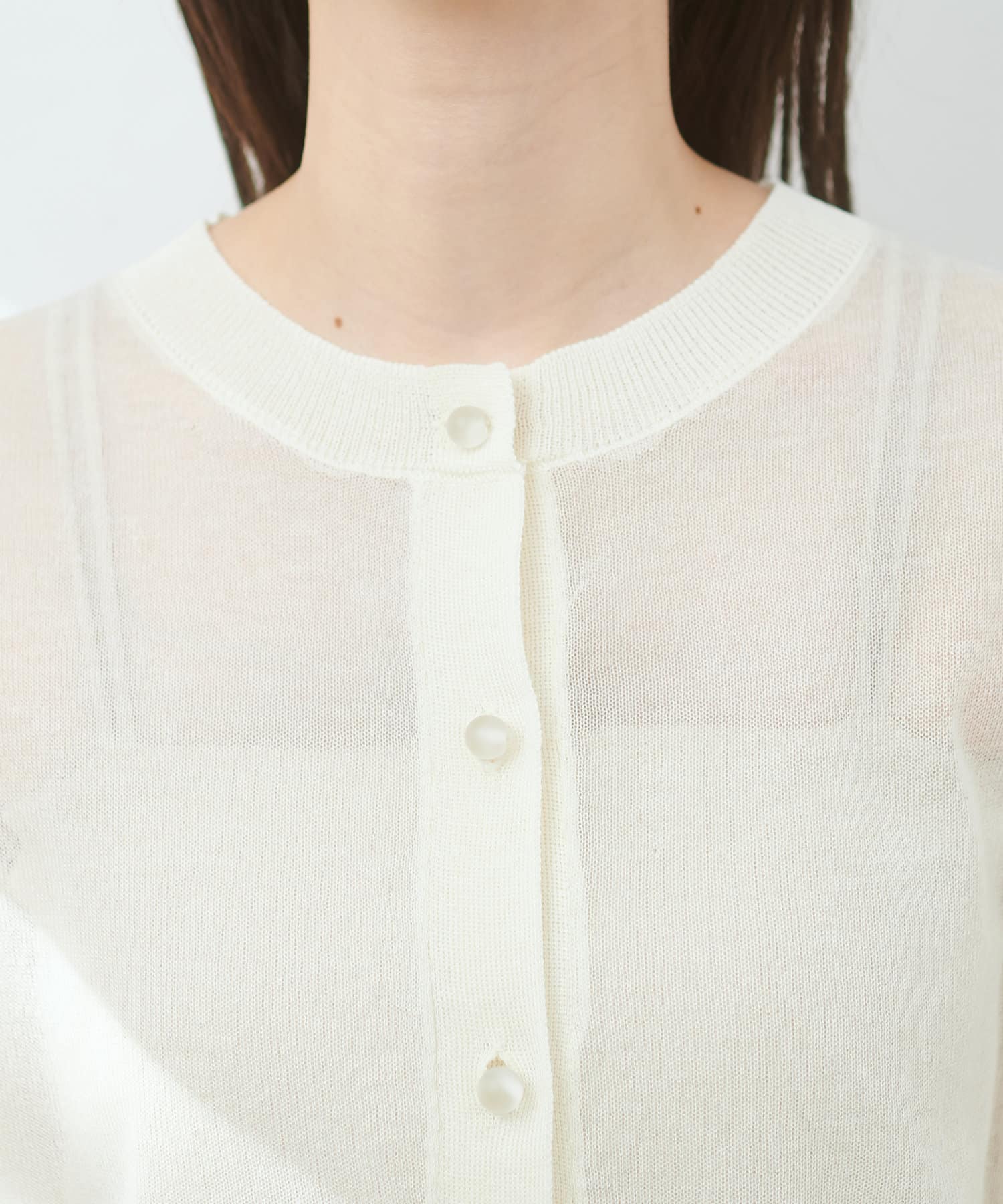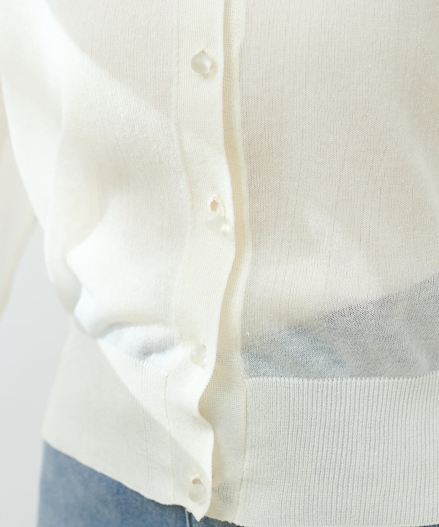 涼し気なシアー感とスモークガラス釦がポイントのカーディガン