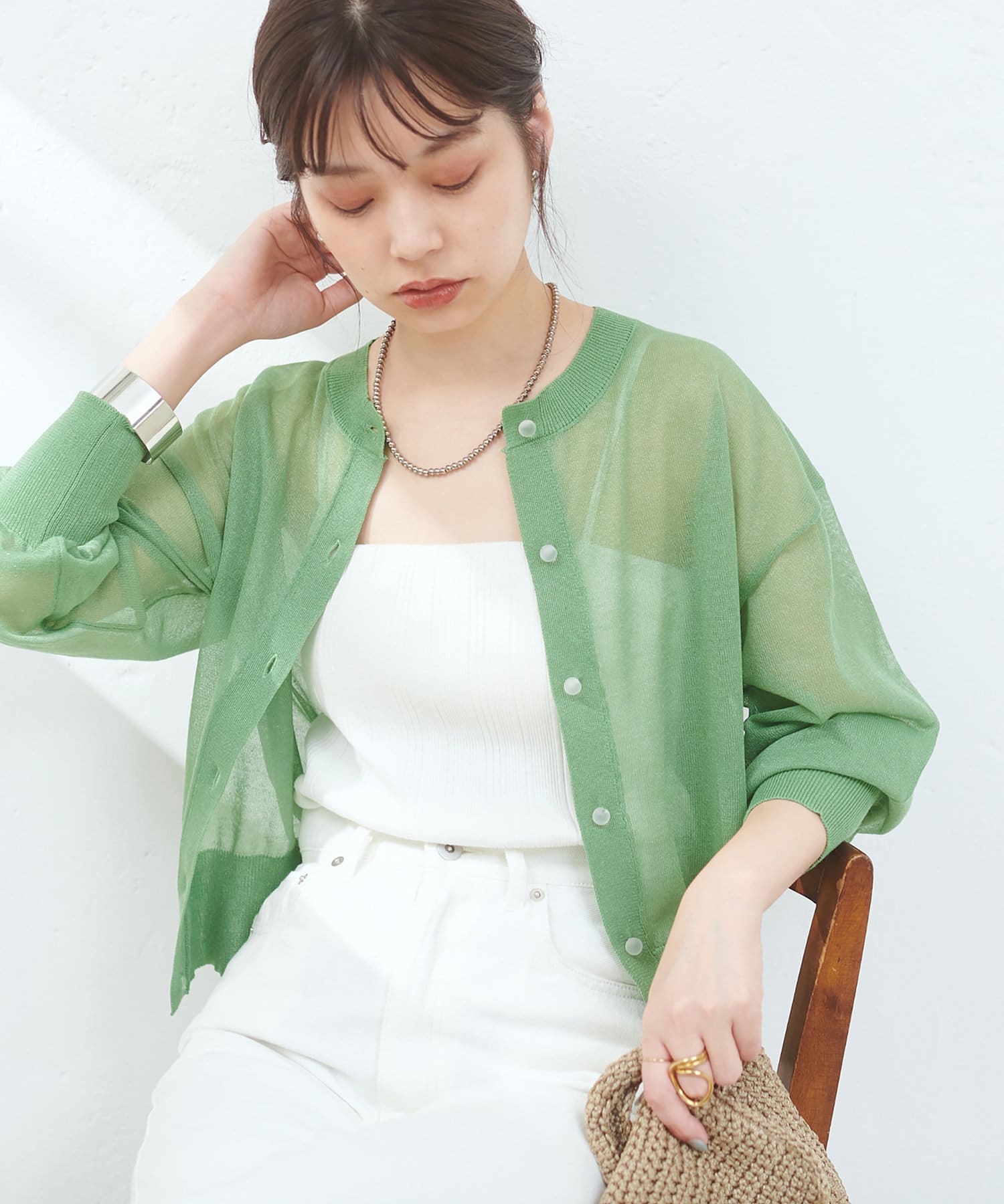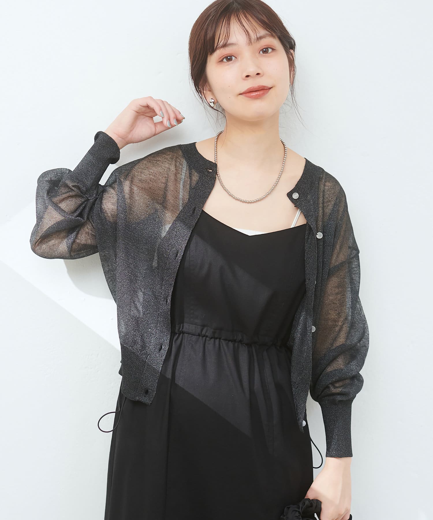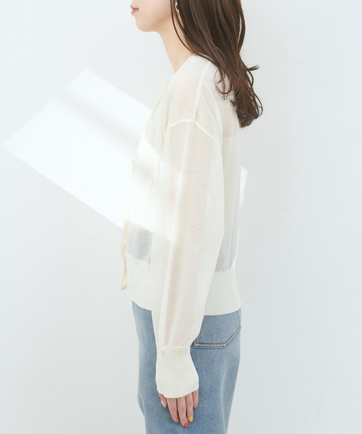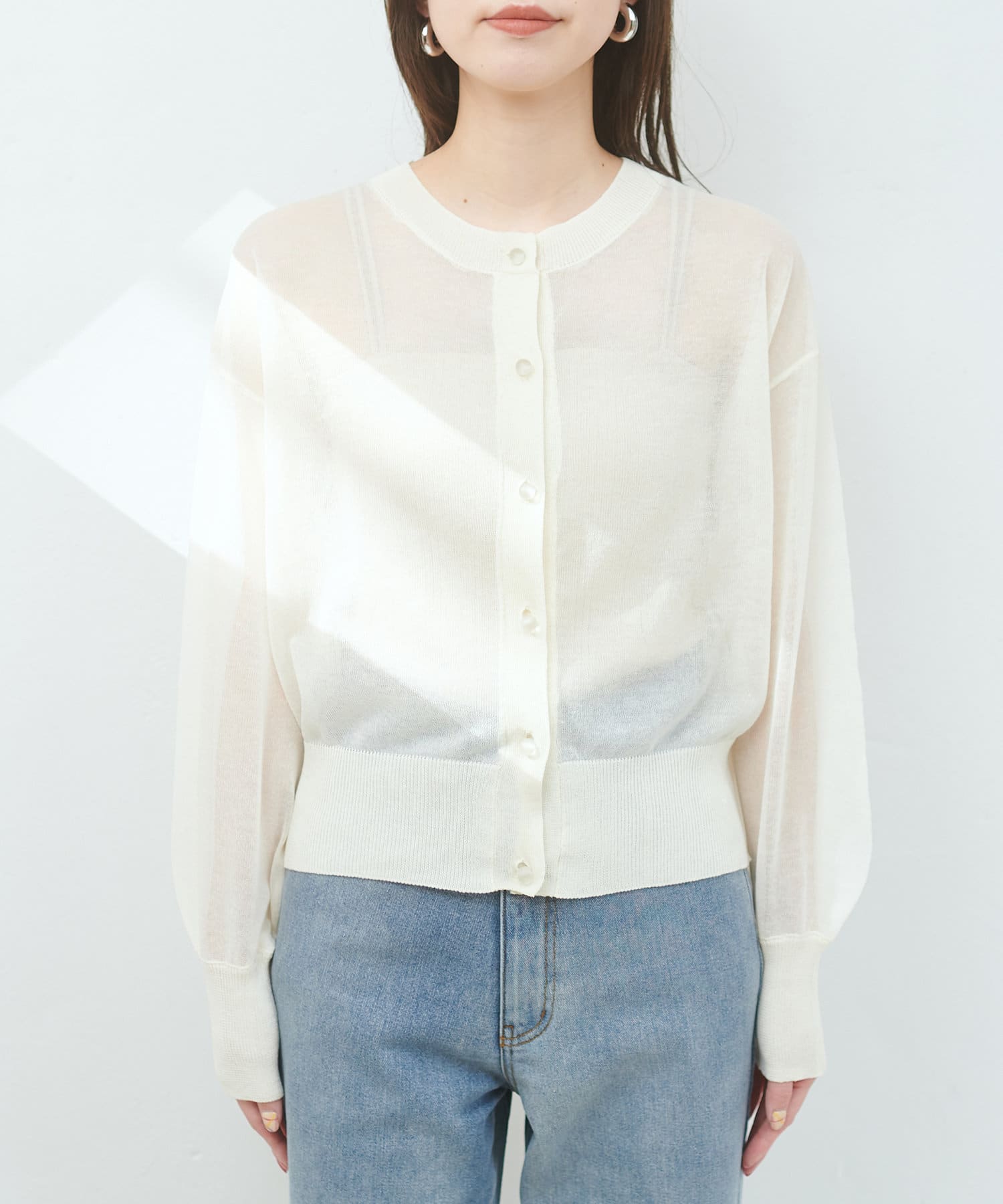 涼し気なシアー感とスモークガラス釦がポイントのカーディガン