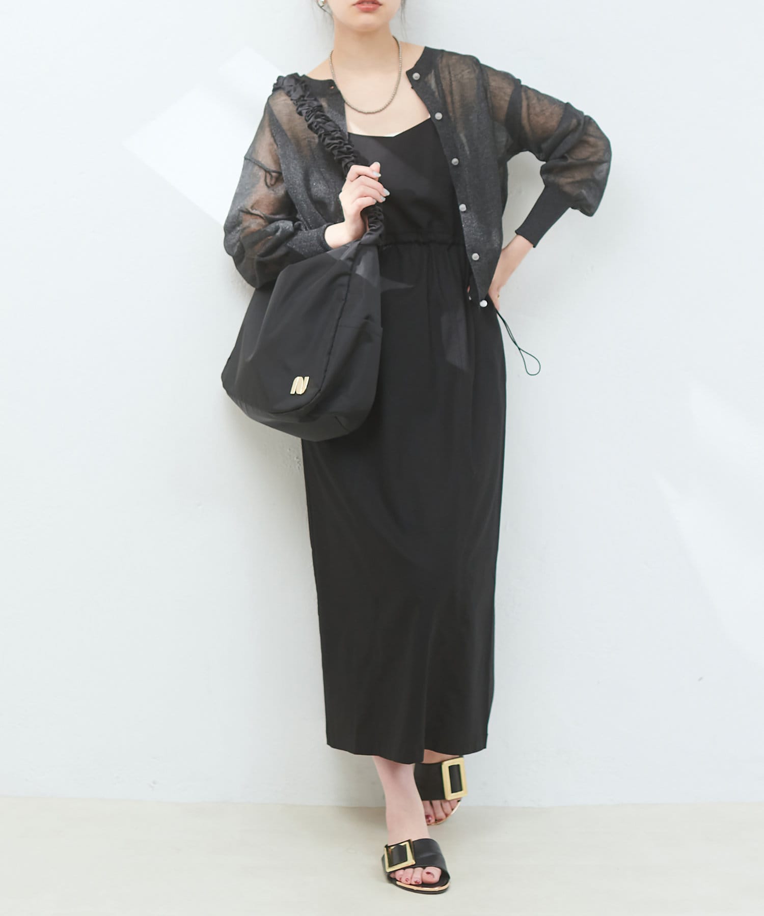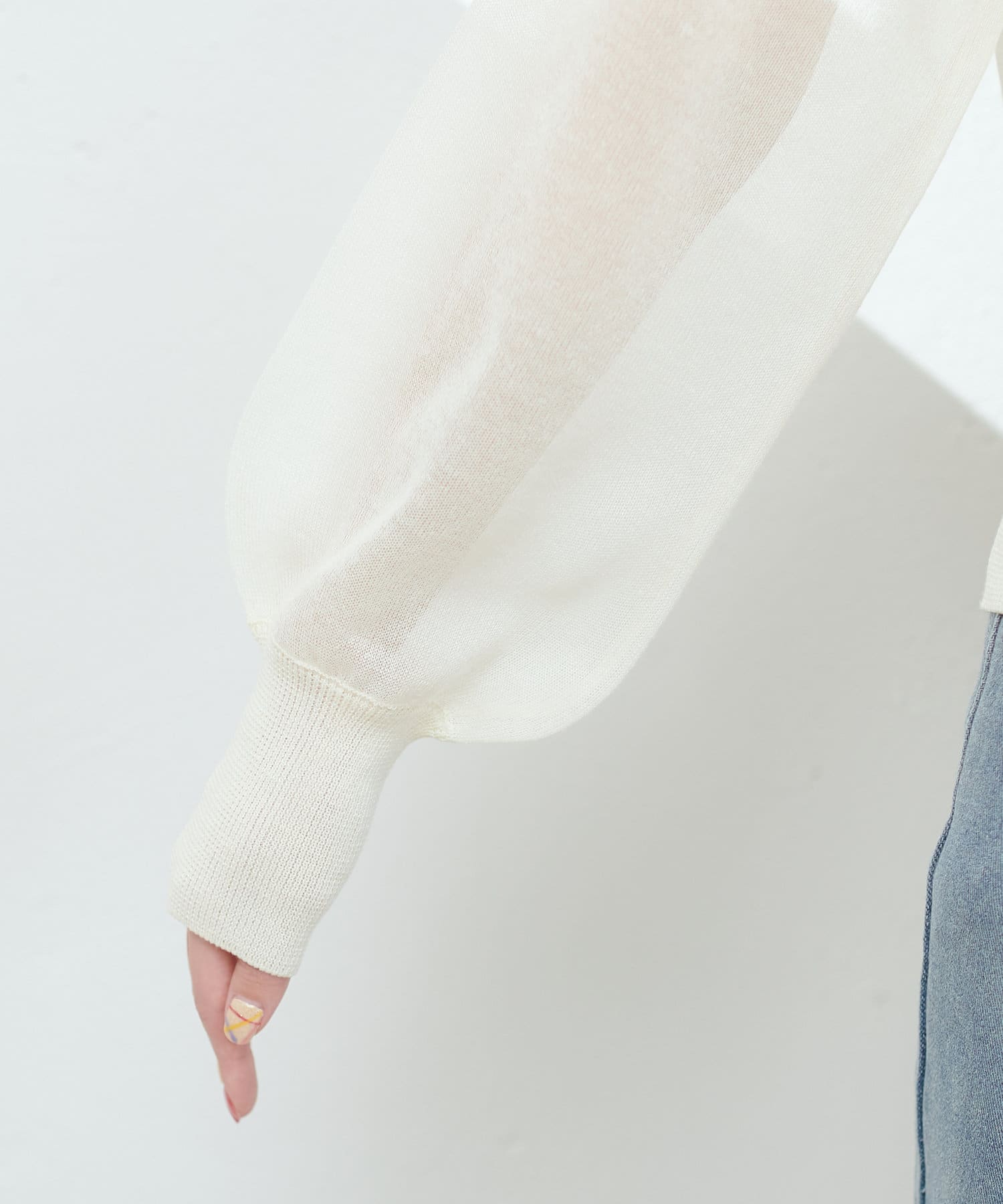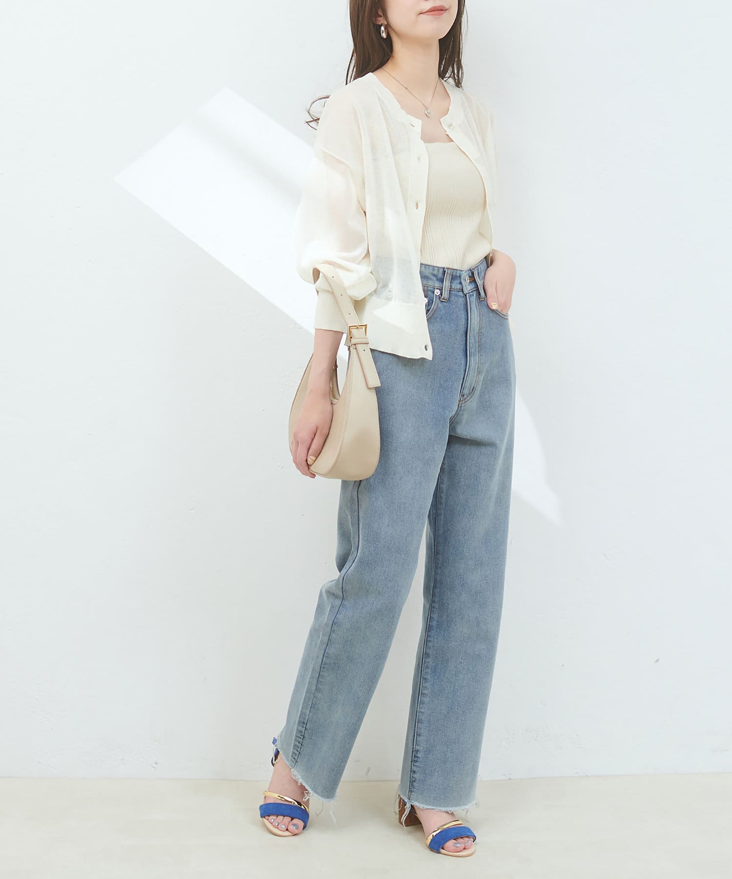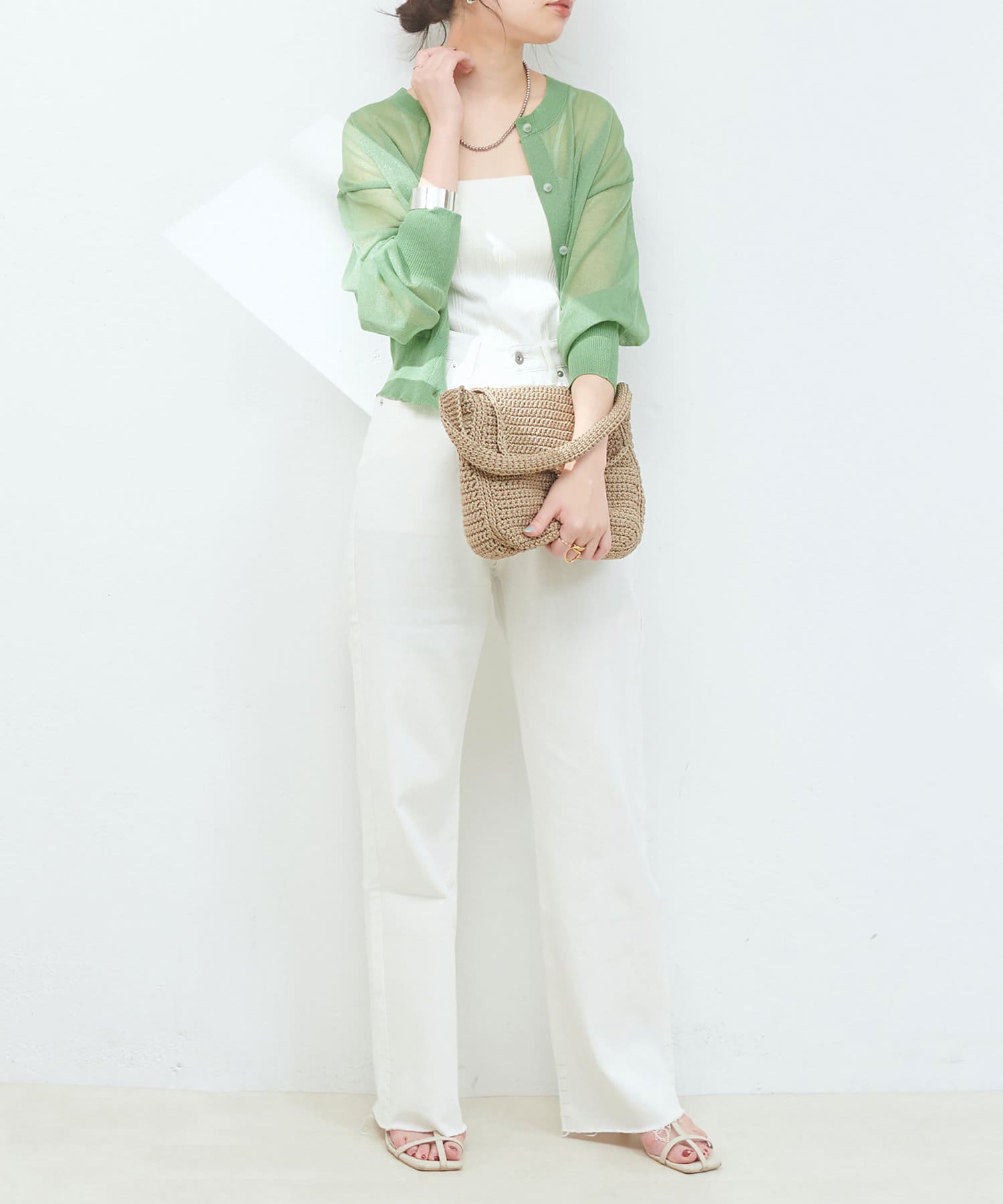 涼し気なシアー感とスモークガラス釦がポイントのカーディガン