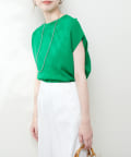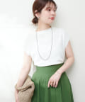 横に少し広がったボートネックでお顔周りがすっきり見えます。