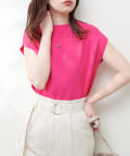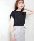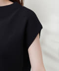 肩先をやや覆うノースリーブは露出控えめで、1枚でも着やすいデザイン。