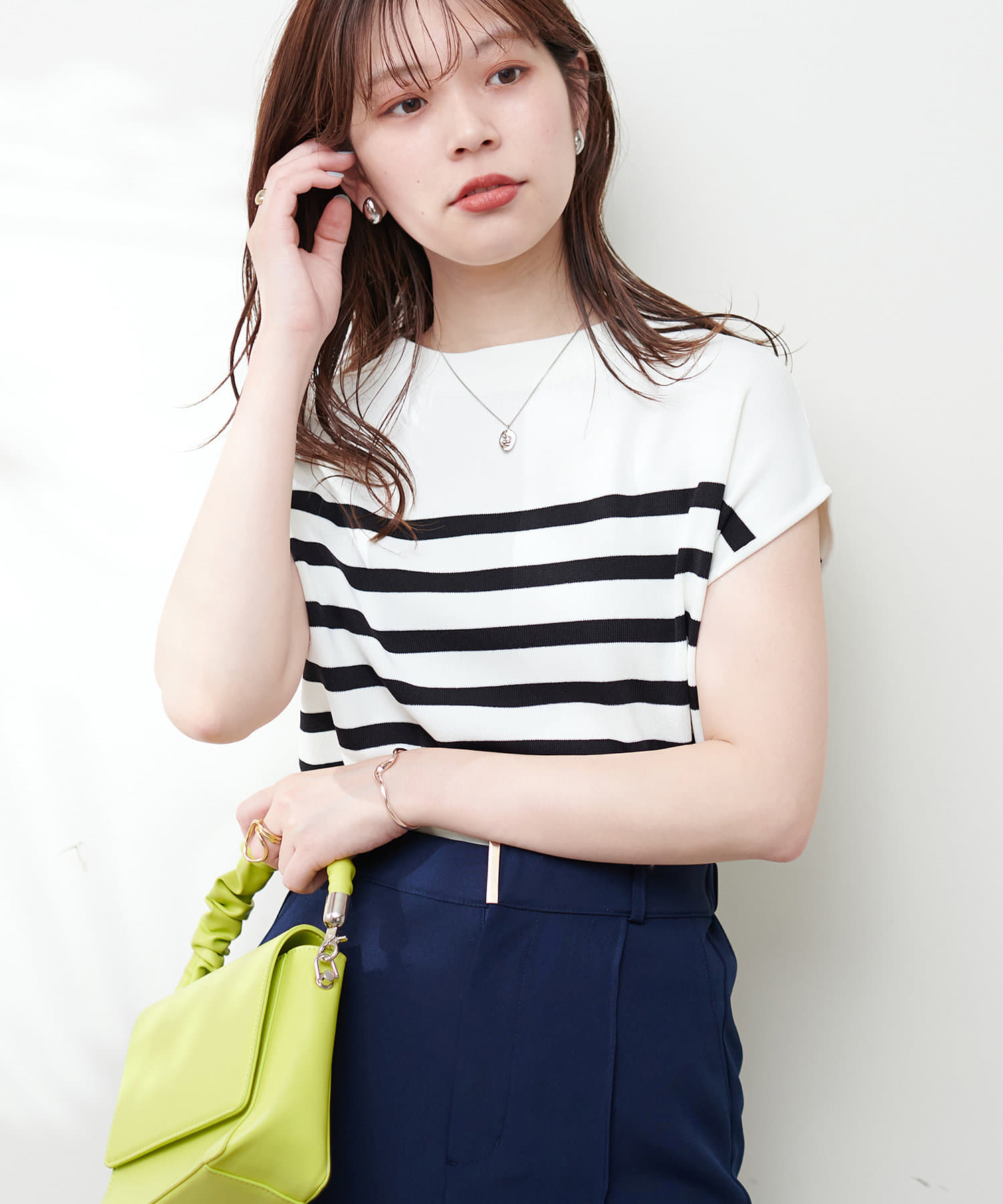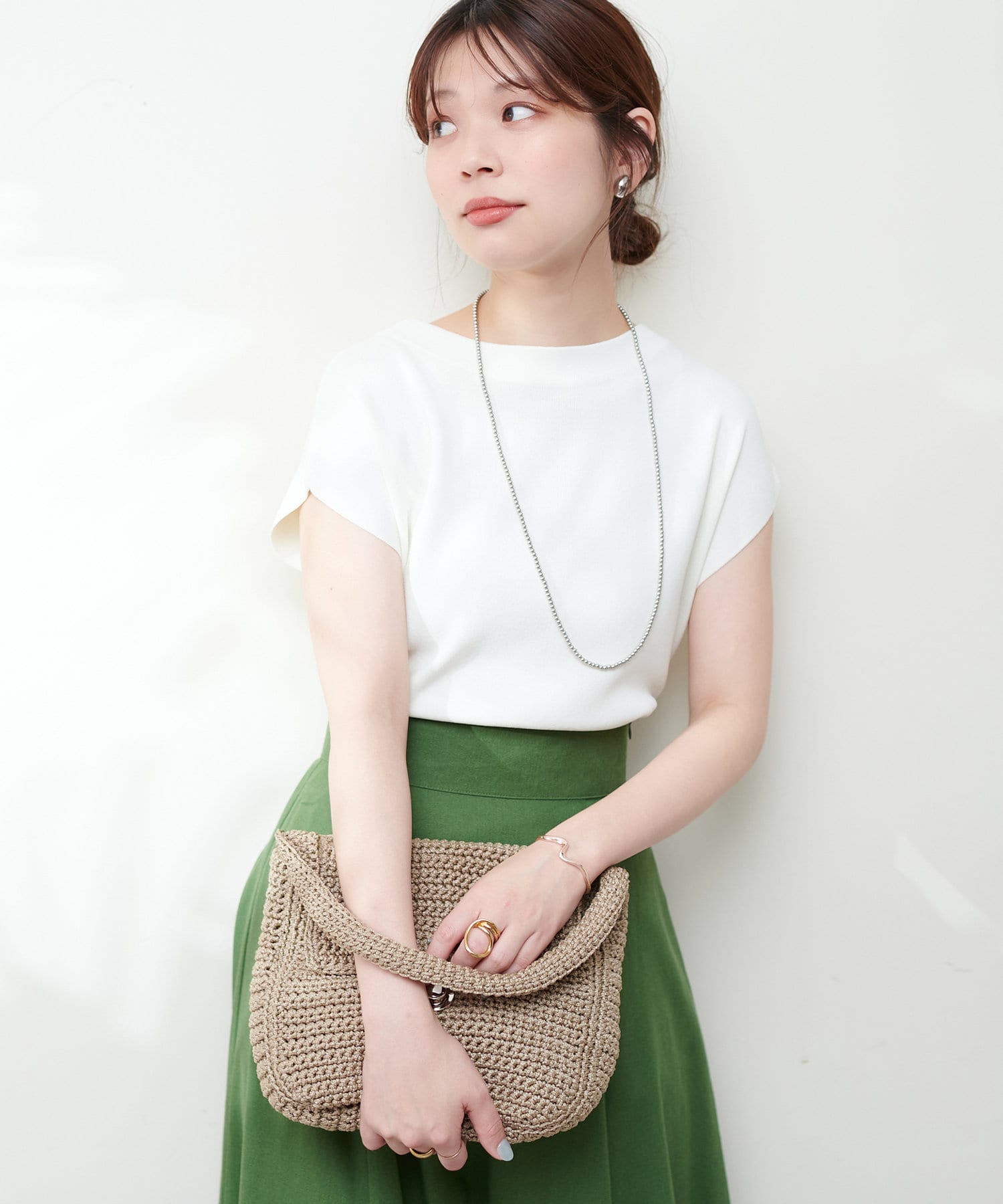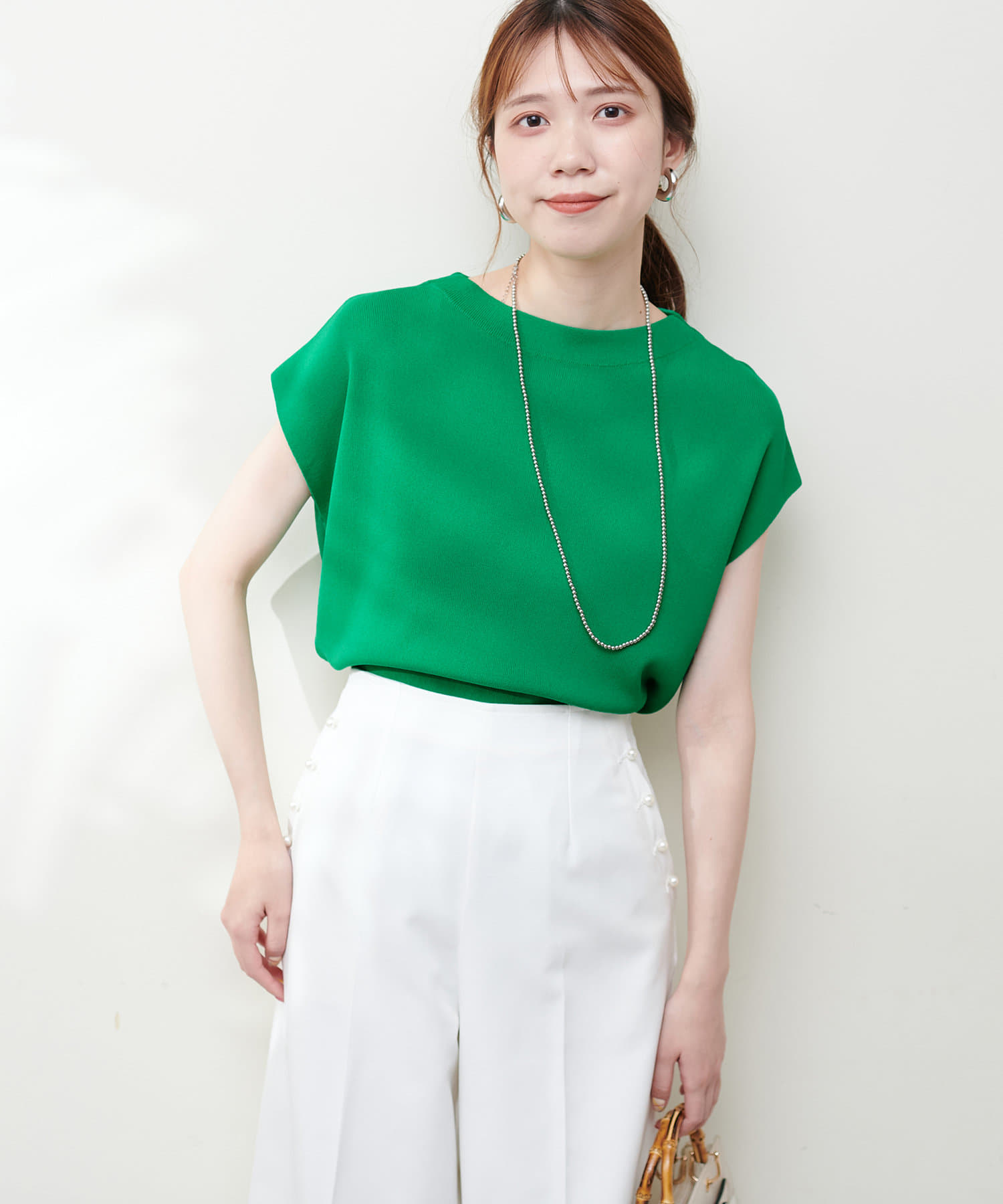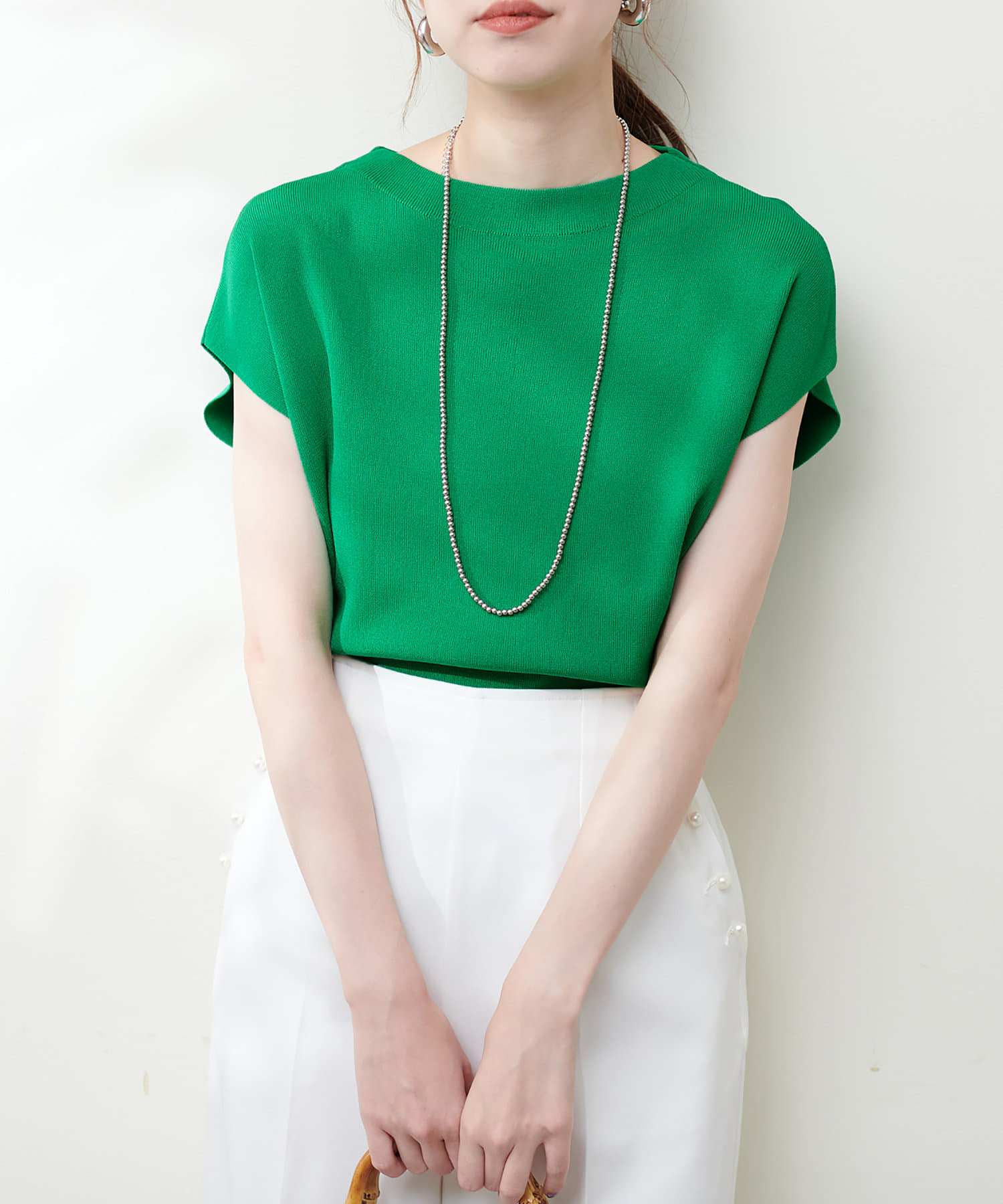 横に少し広がったボートネックでお顔周りがすっきり見えます。