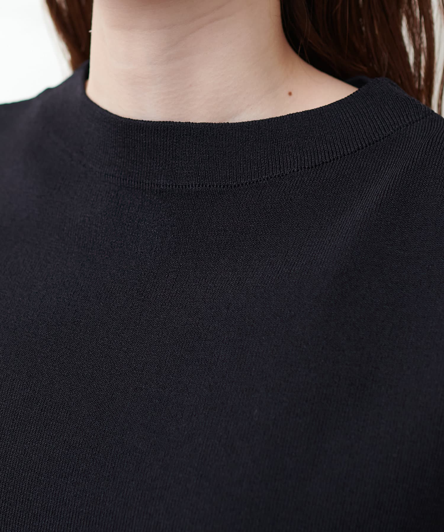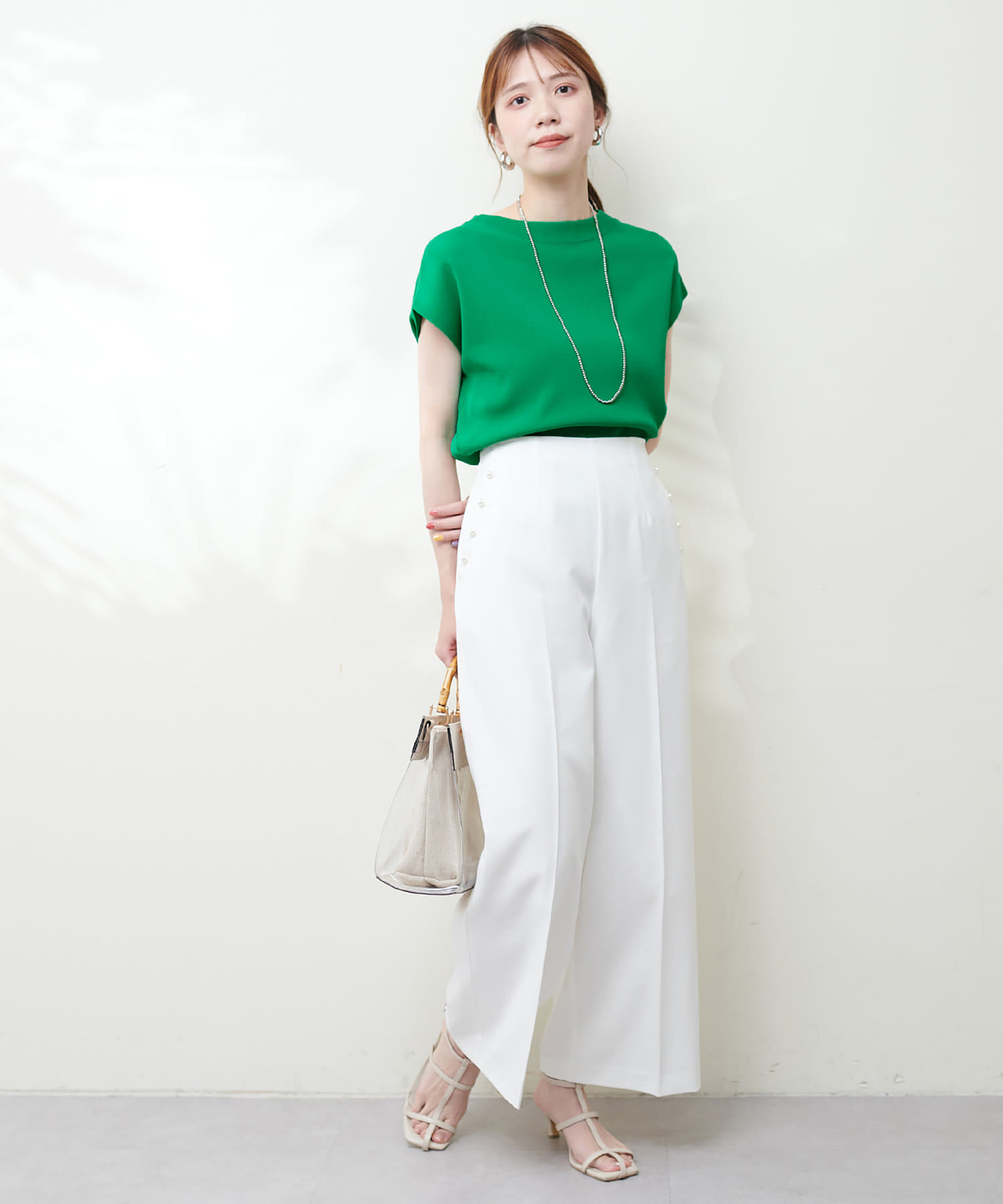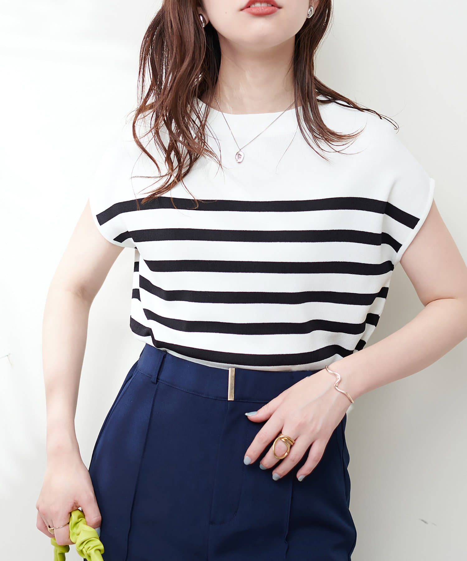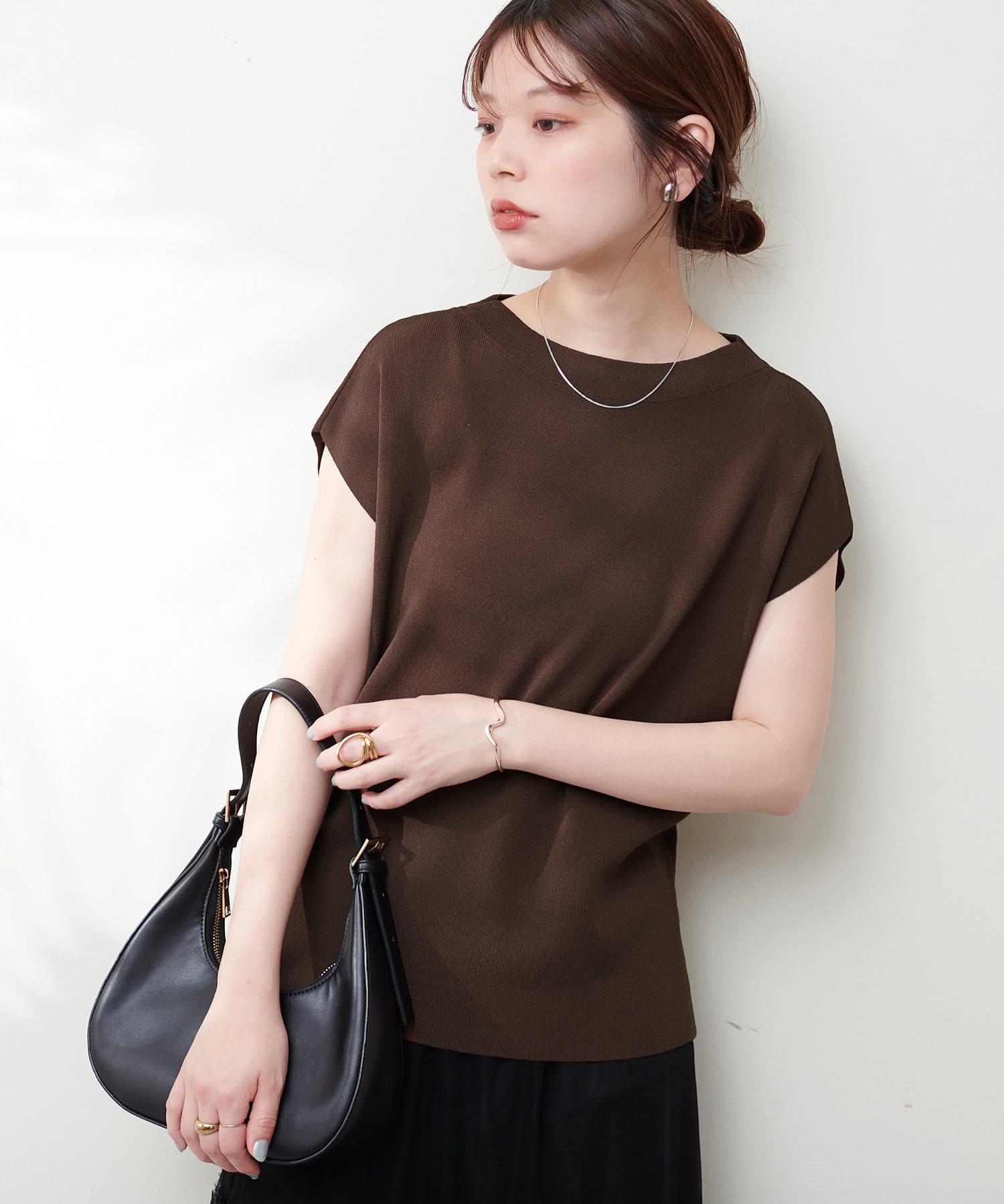 横に少し広がったボートネックでお顔周りがすっきり見えます。