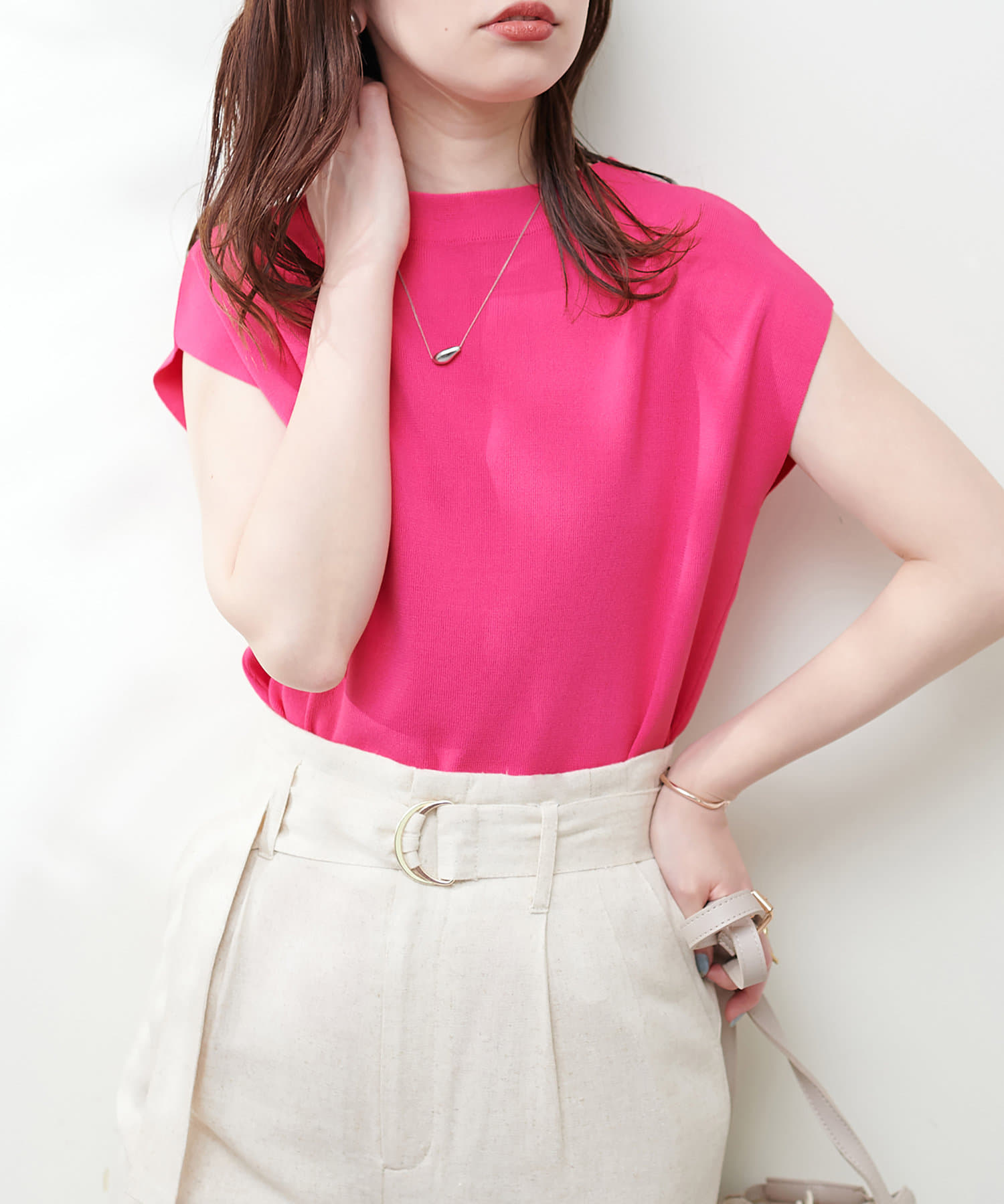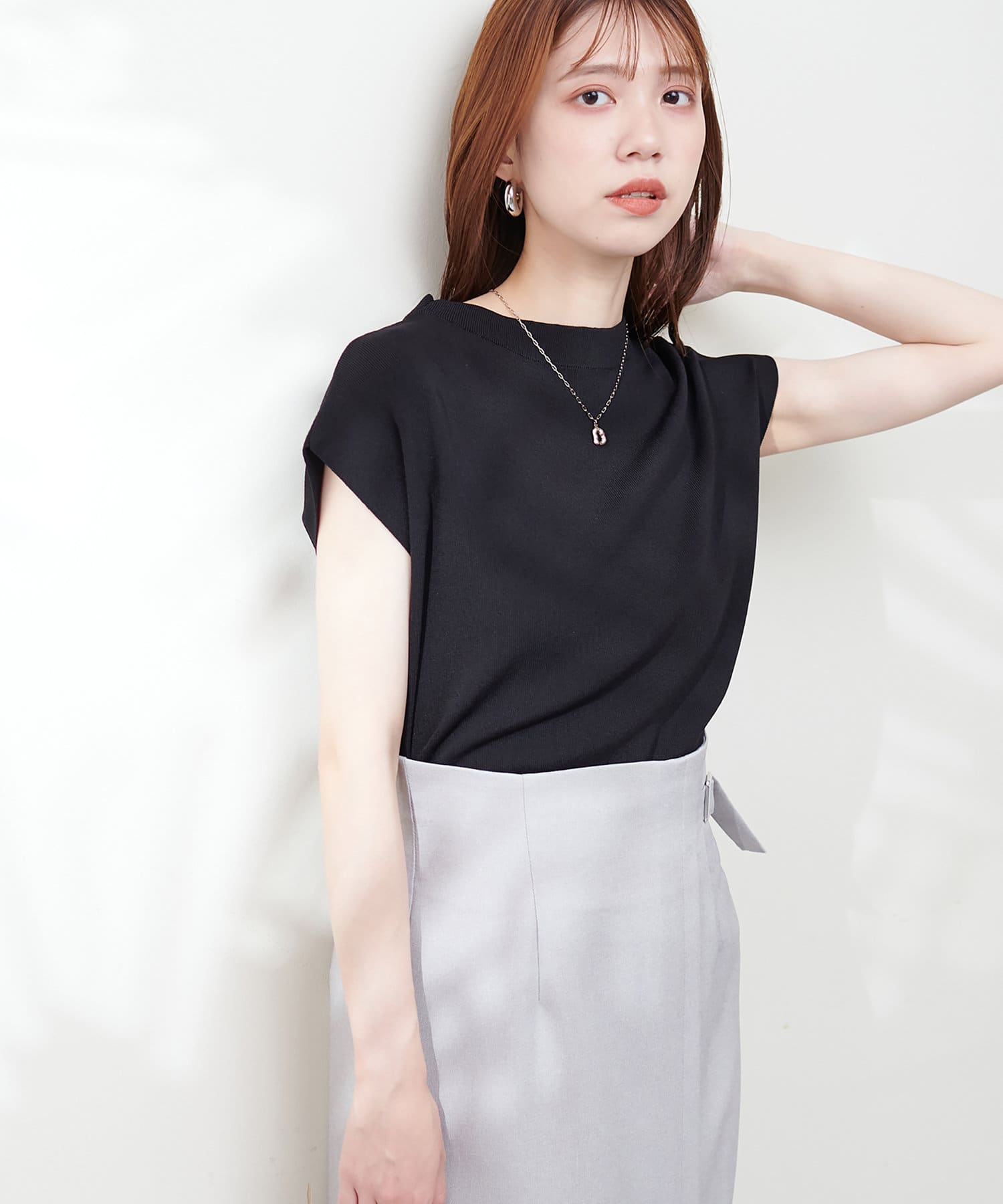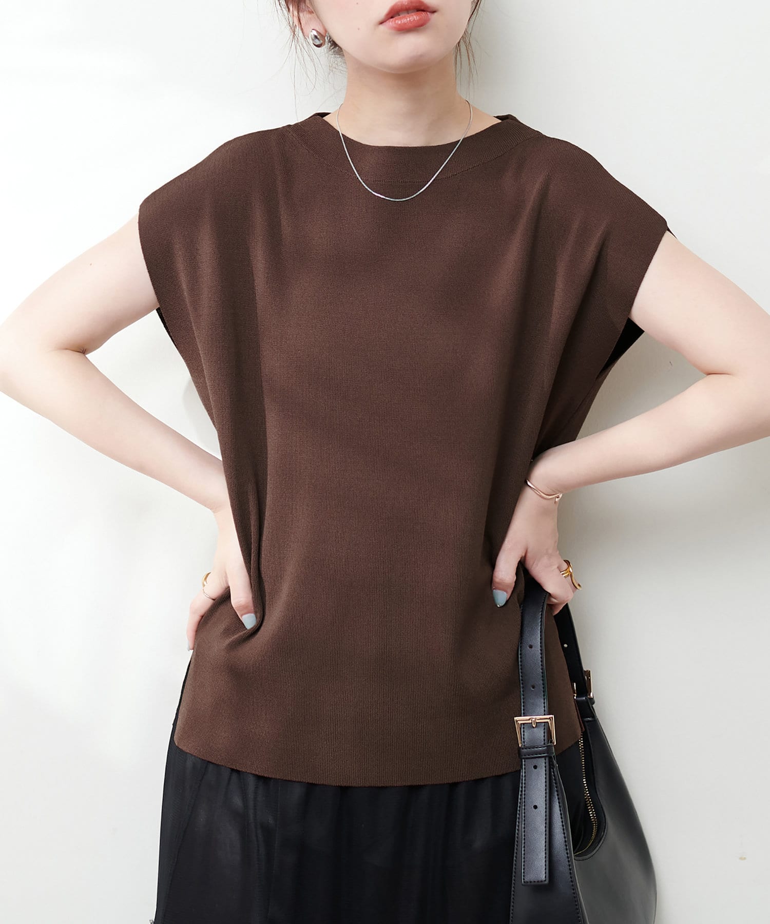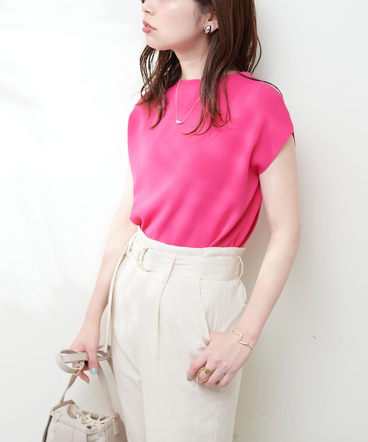涼しげでゆったりとした落ち感のあるノースリーブニット。