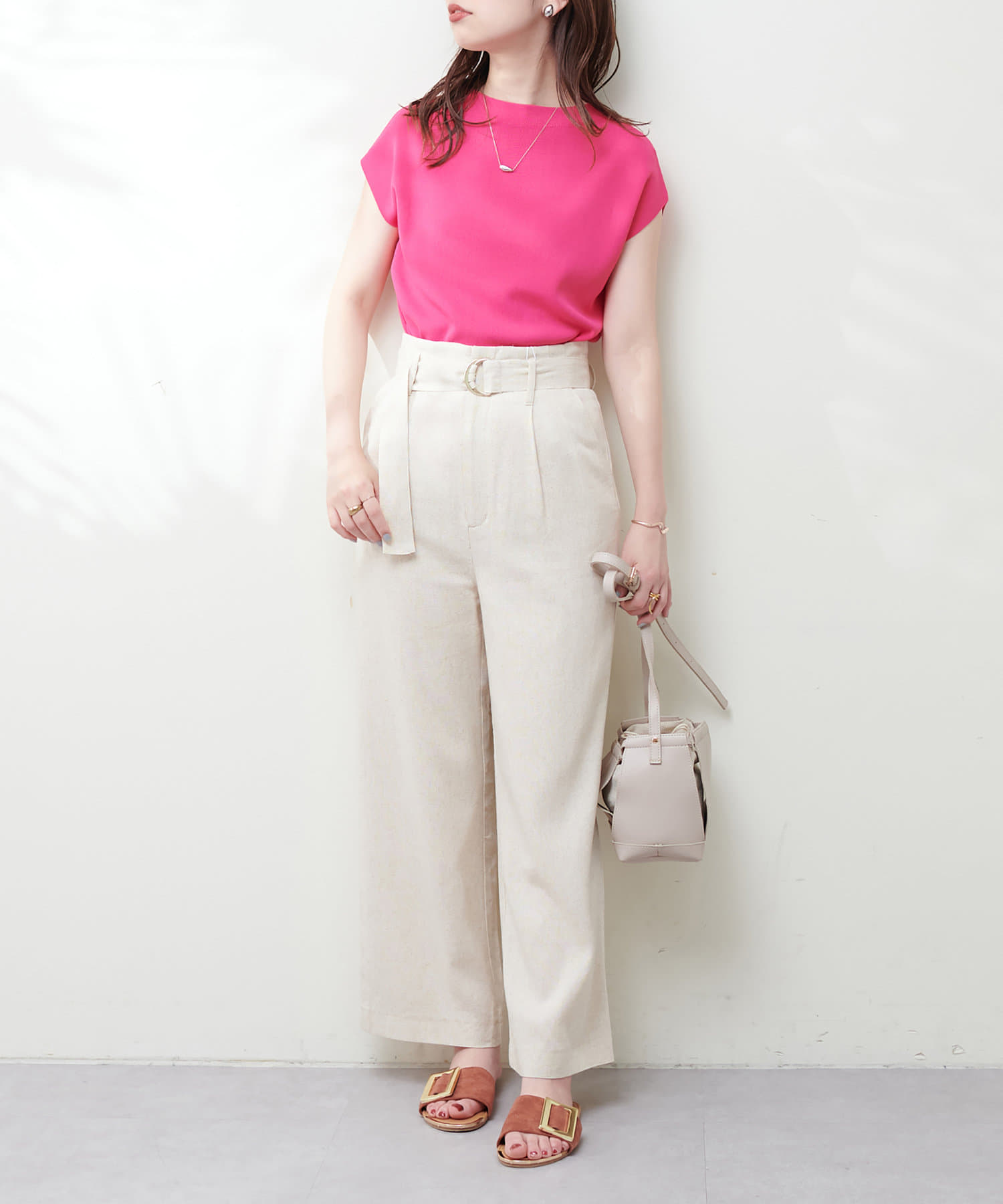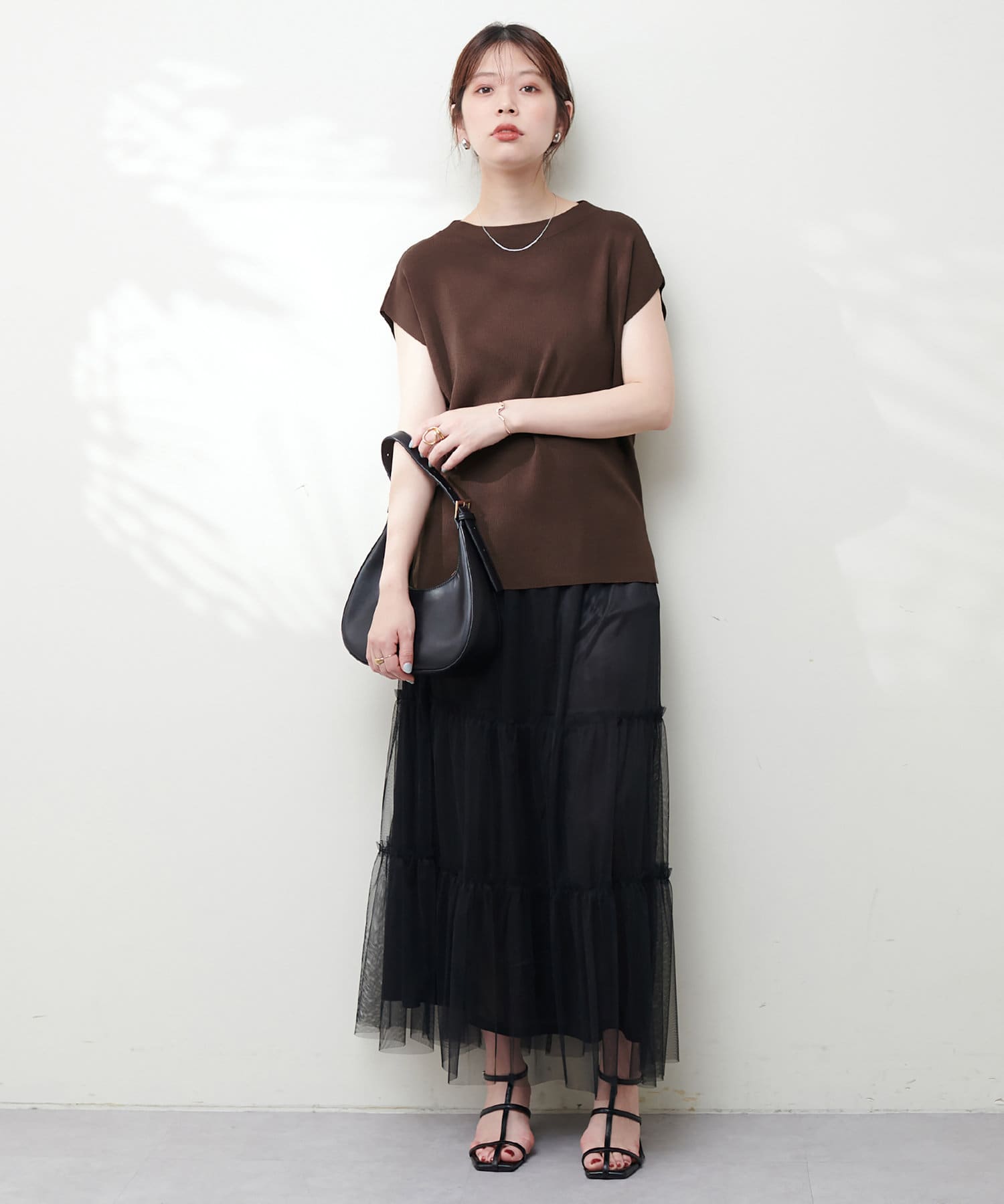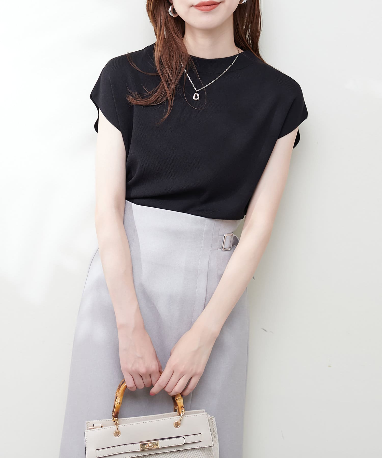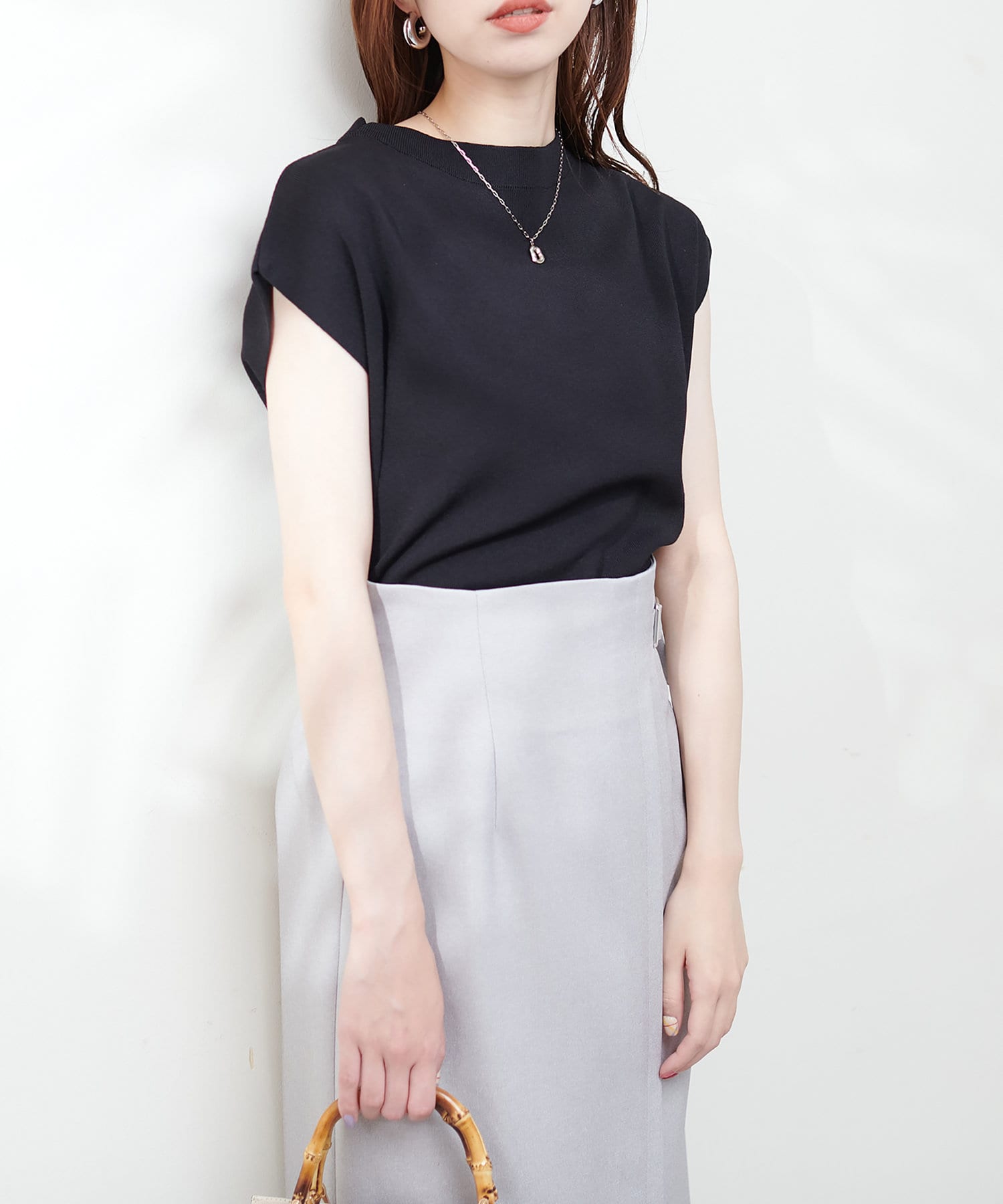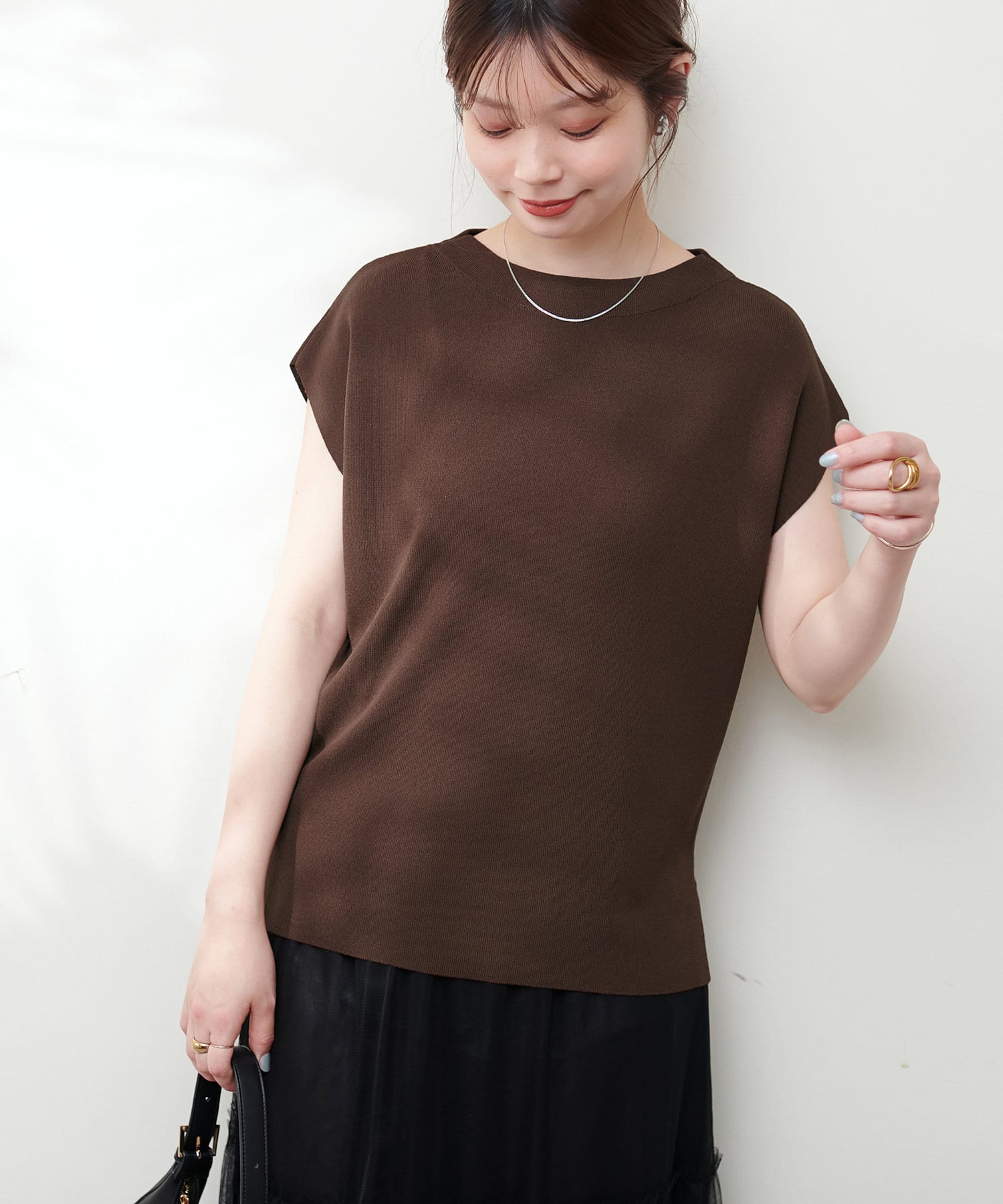 涼しげでゆったりとした落ち感のあるノースリーブニット。