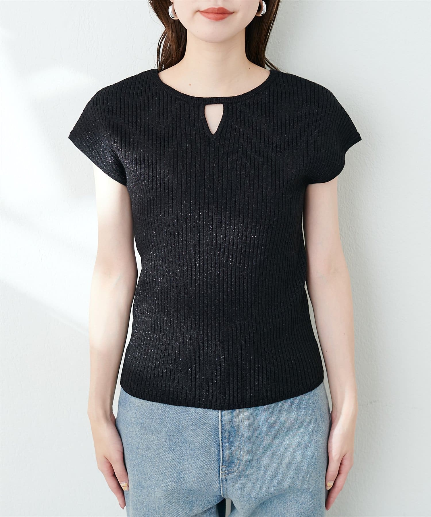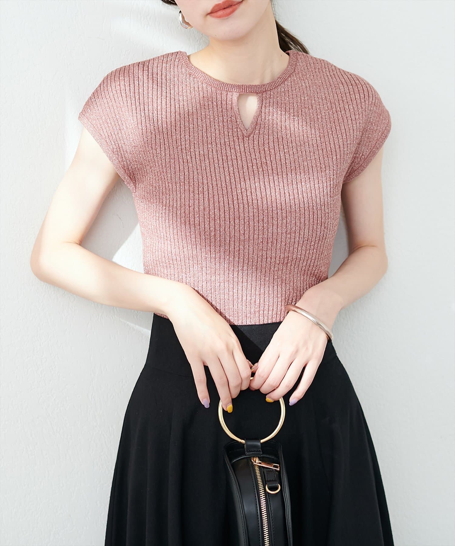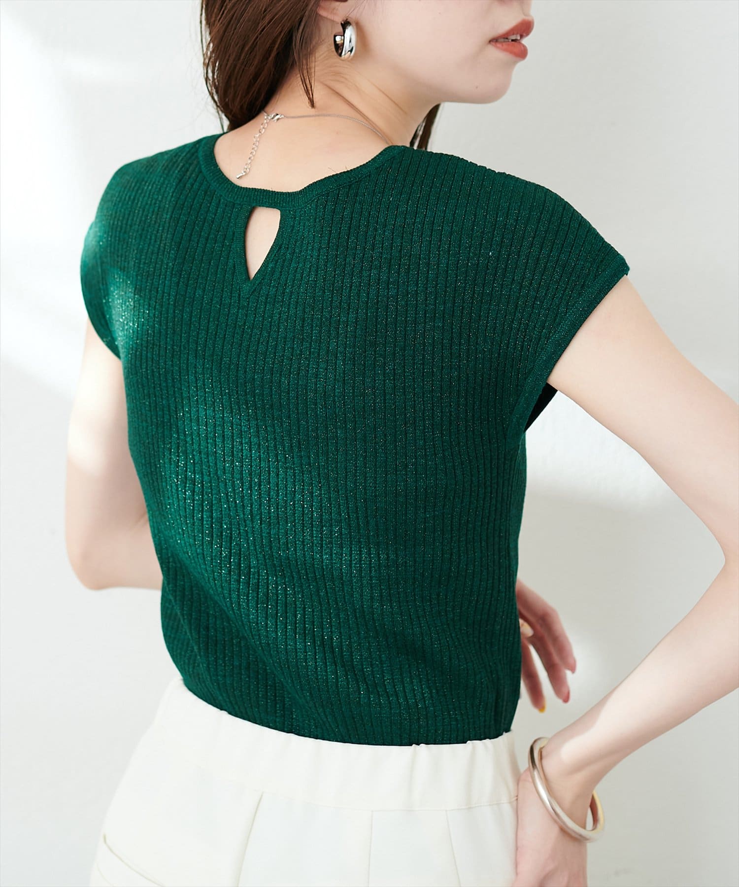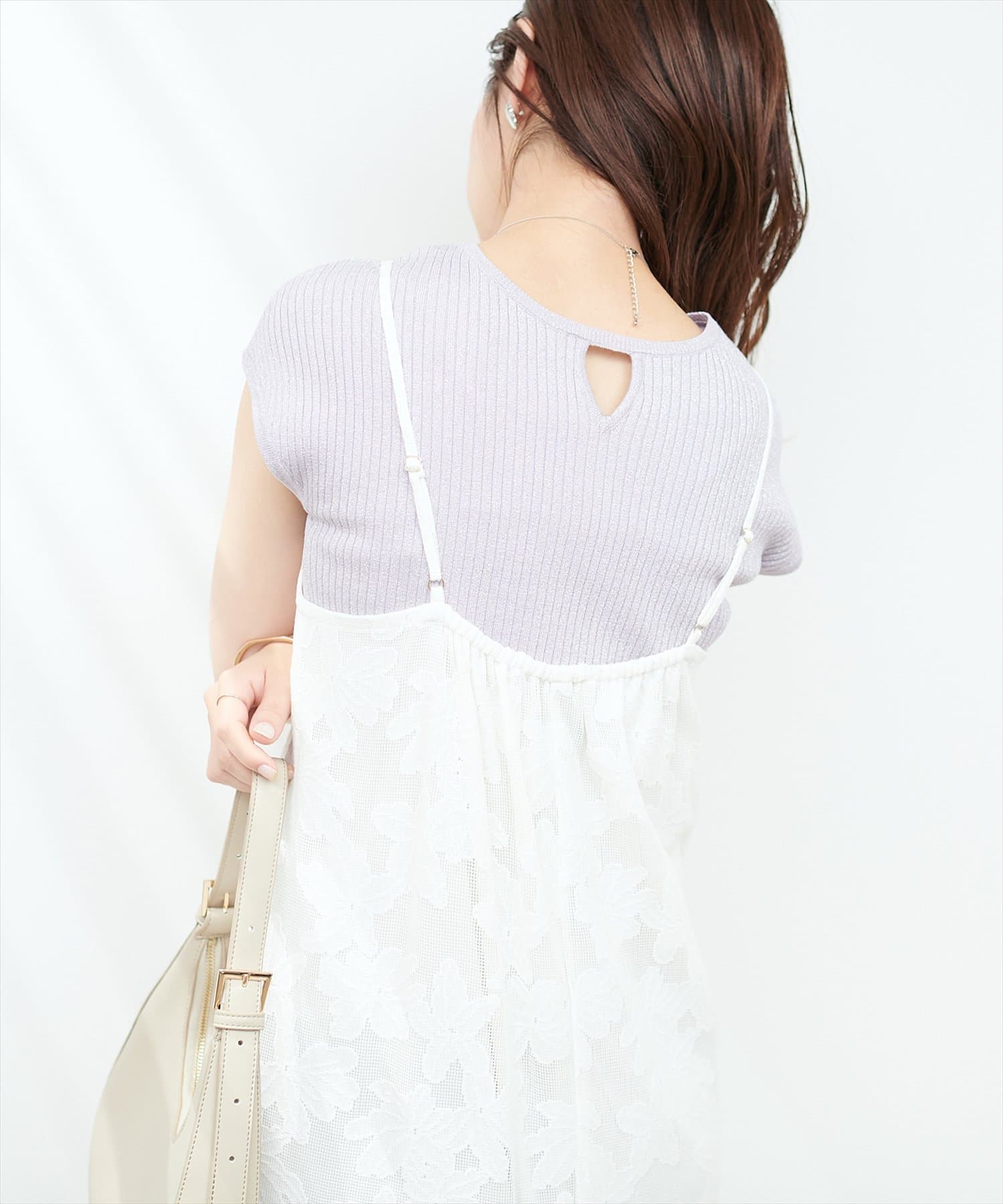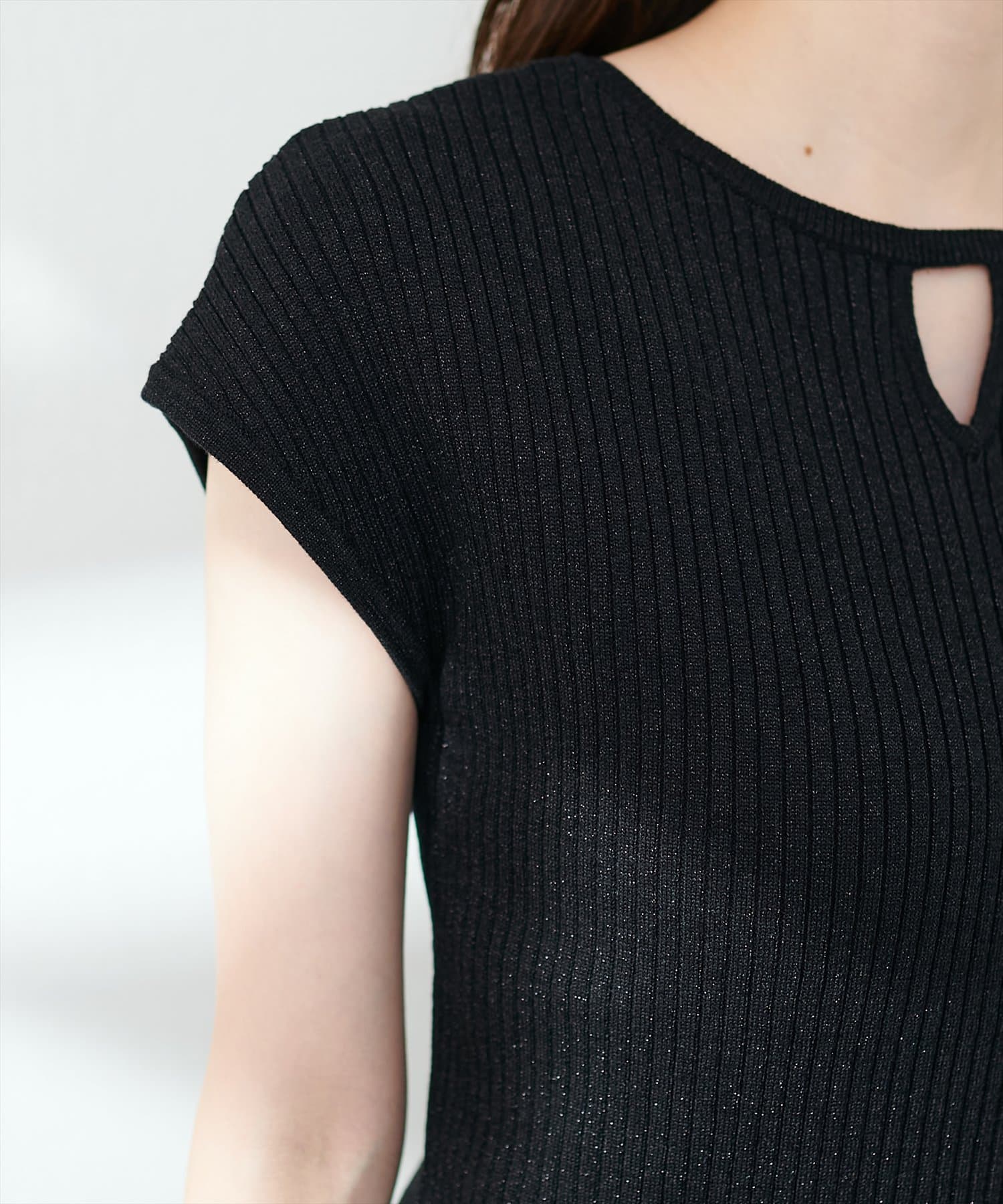 三角あき2WAYノースリラメニット