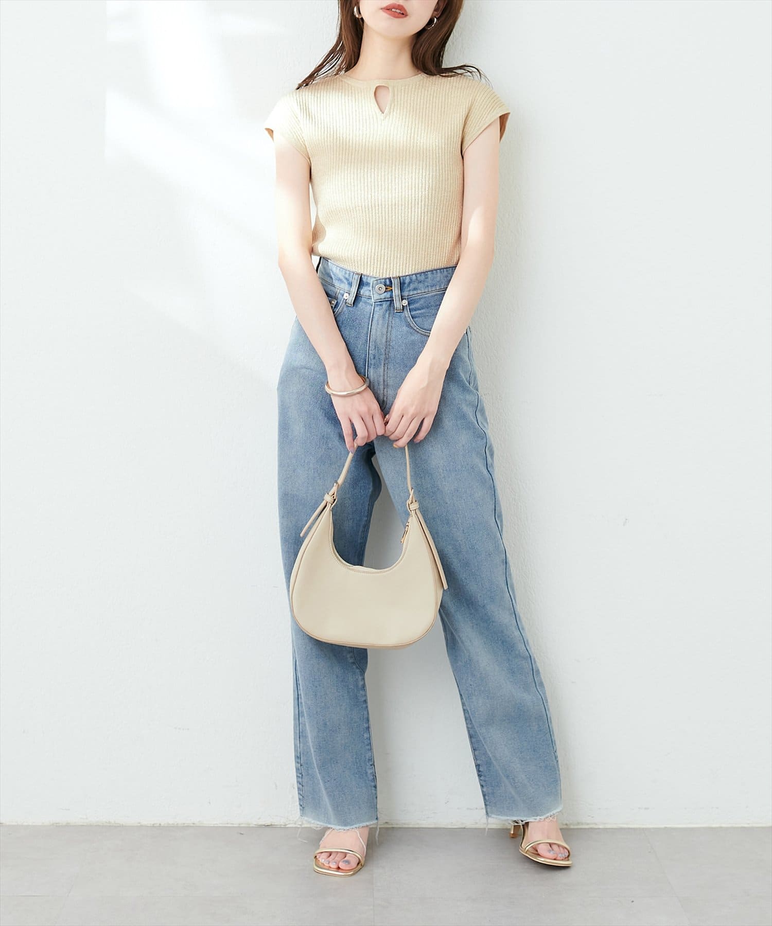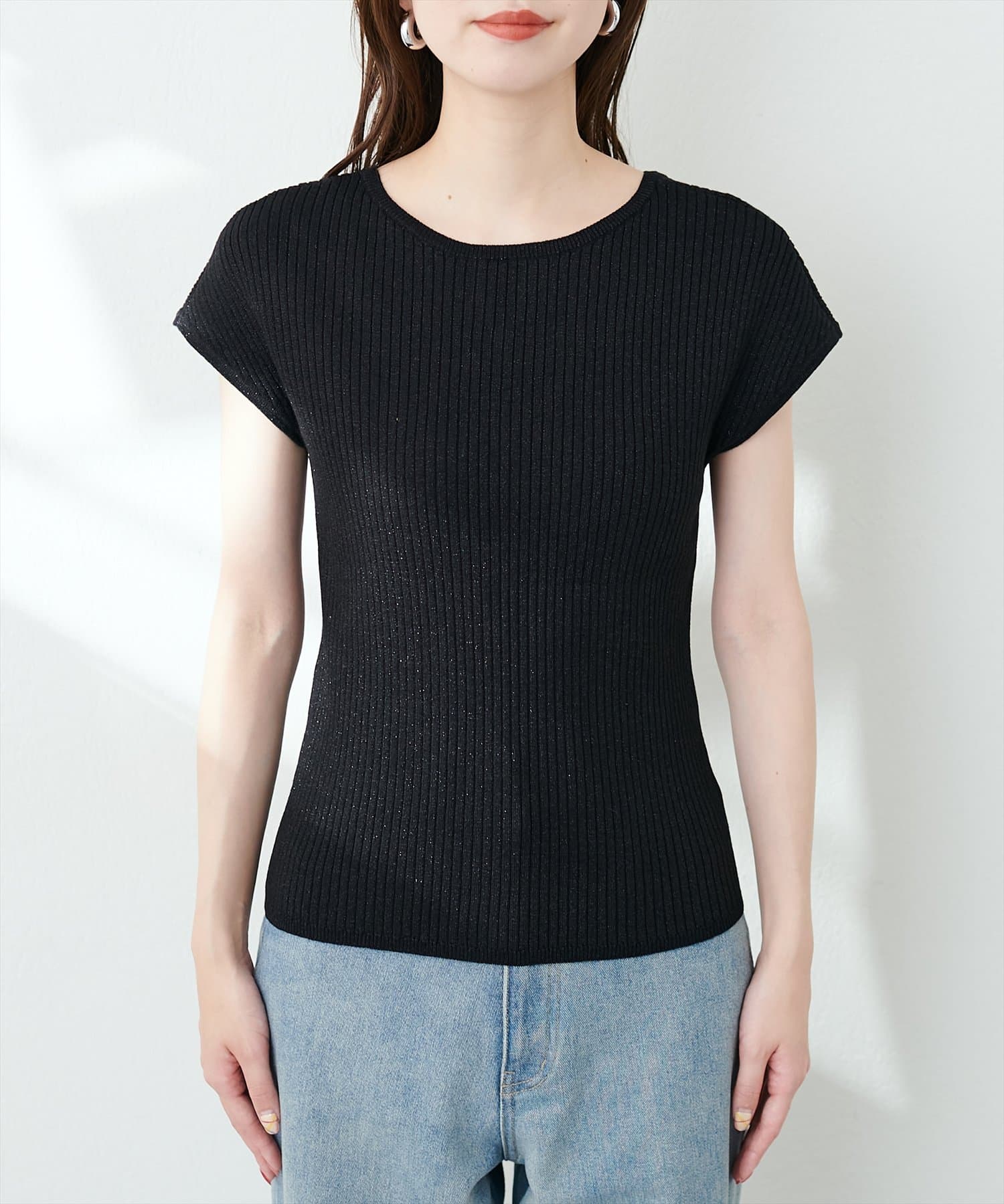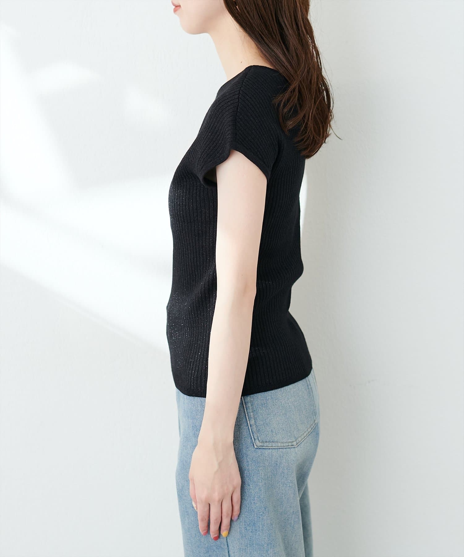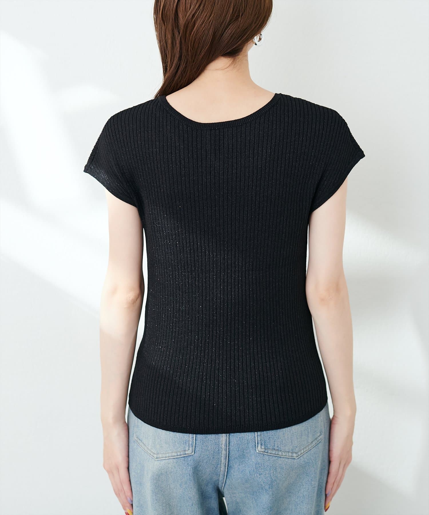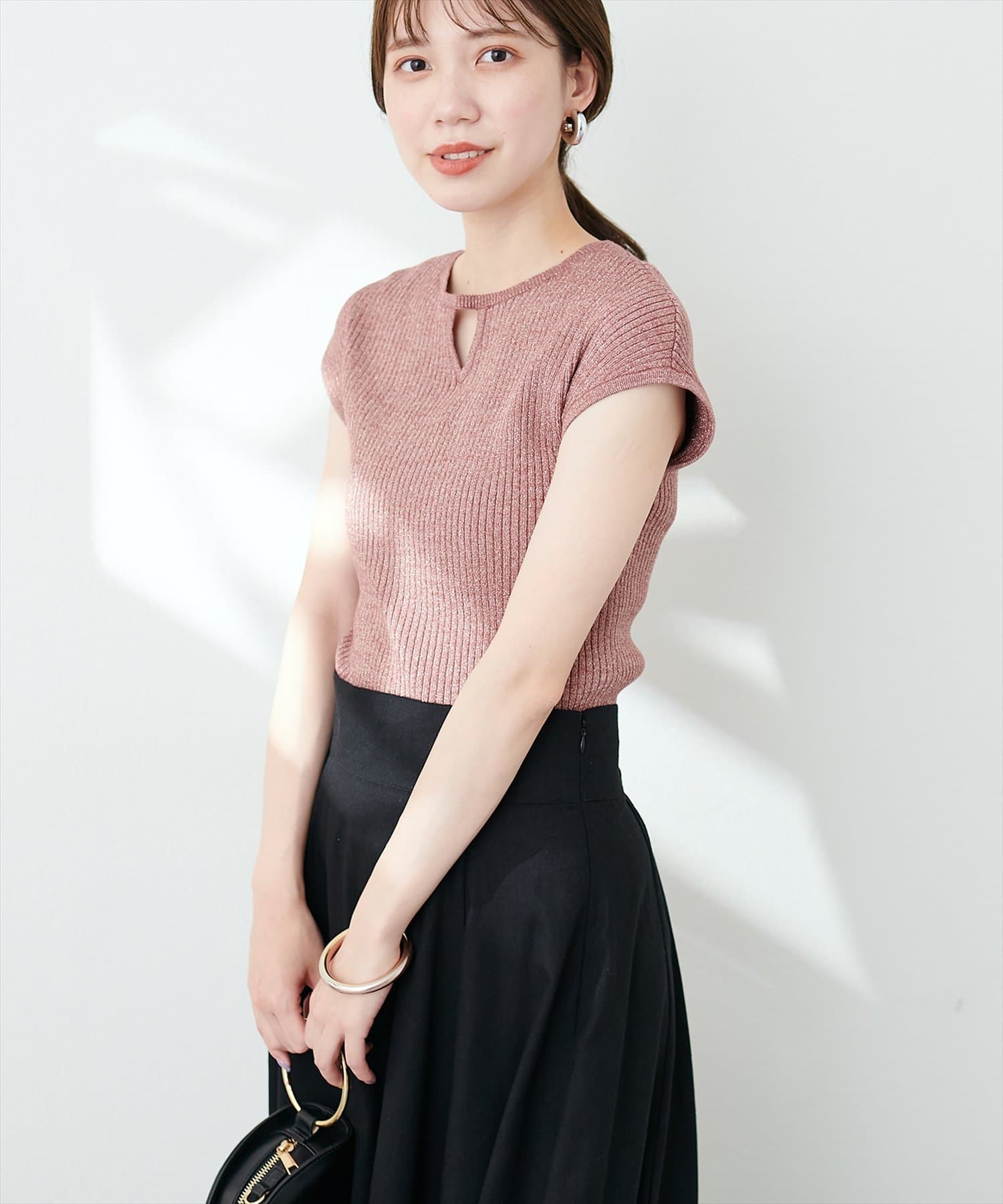 三角あき2WAYノースリラメニット