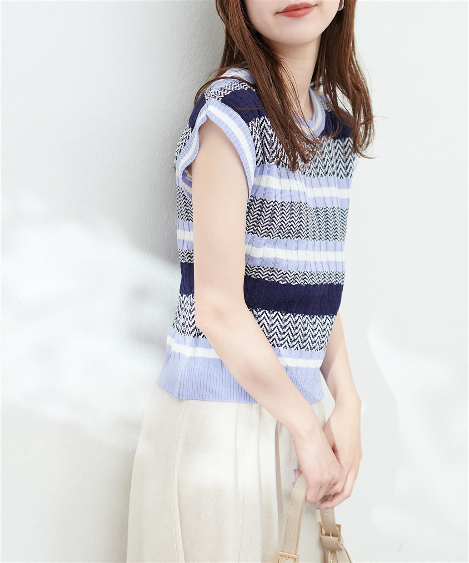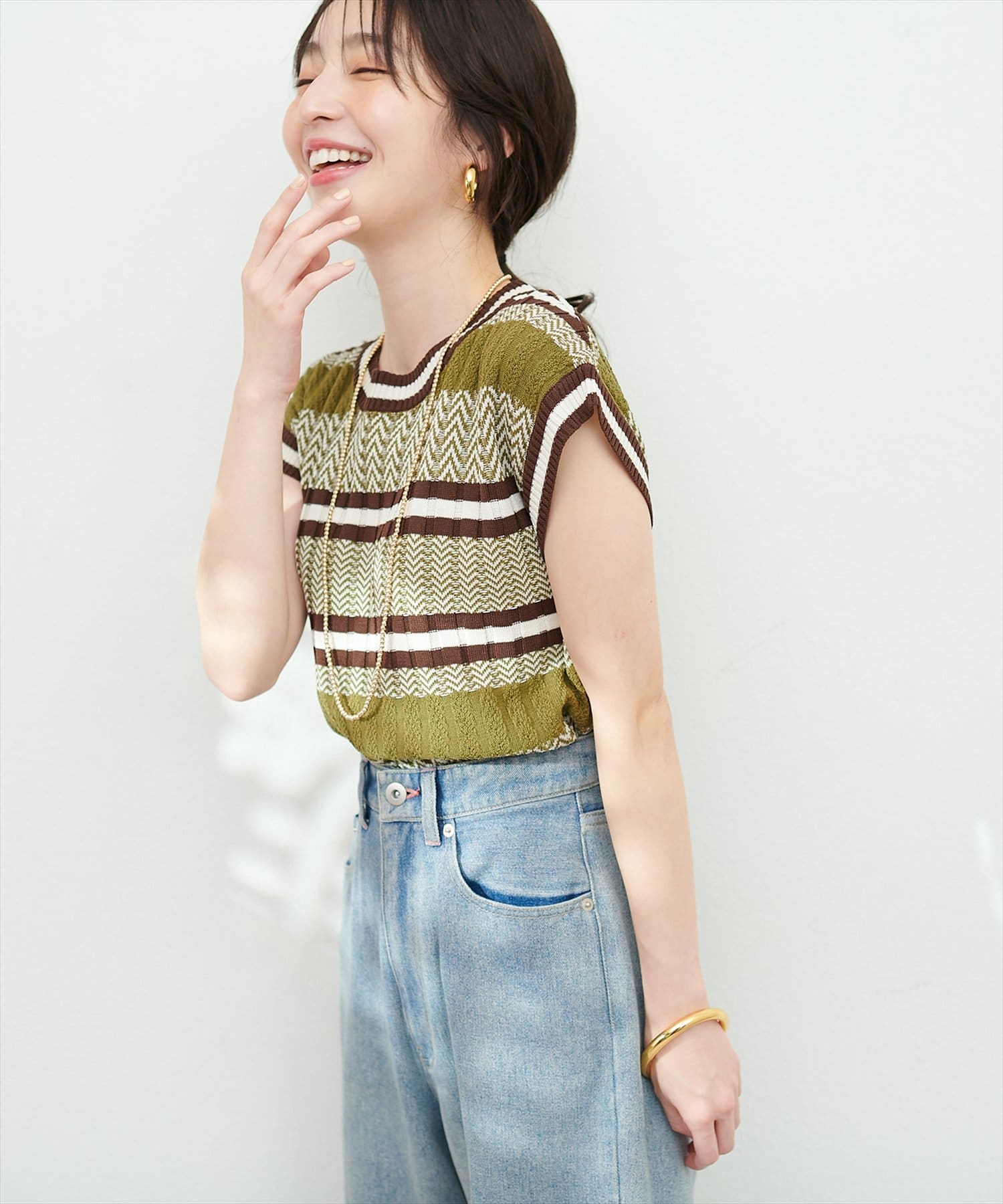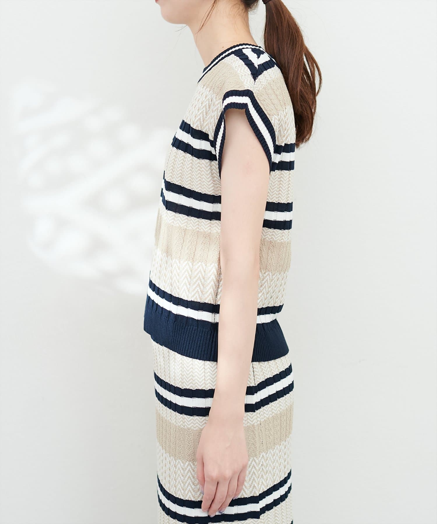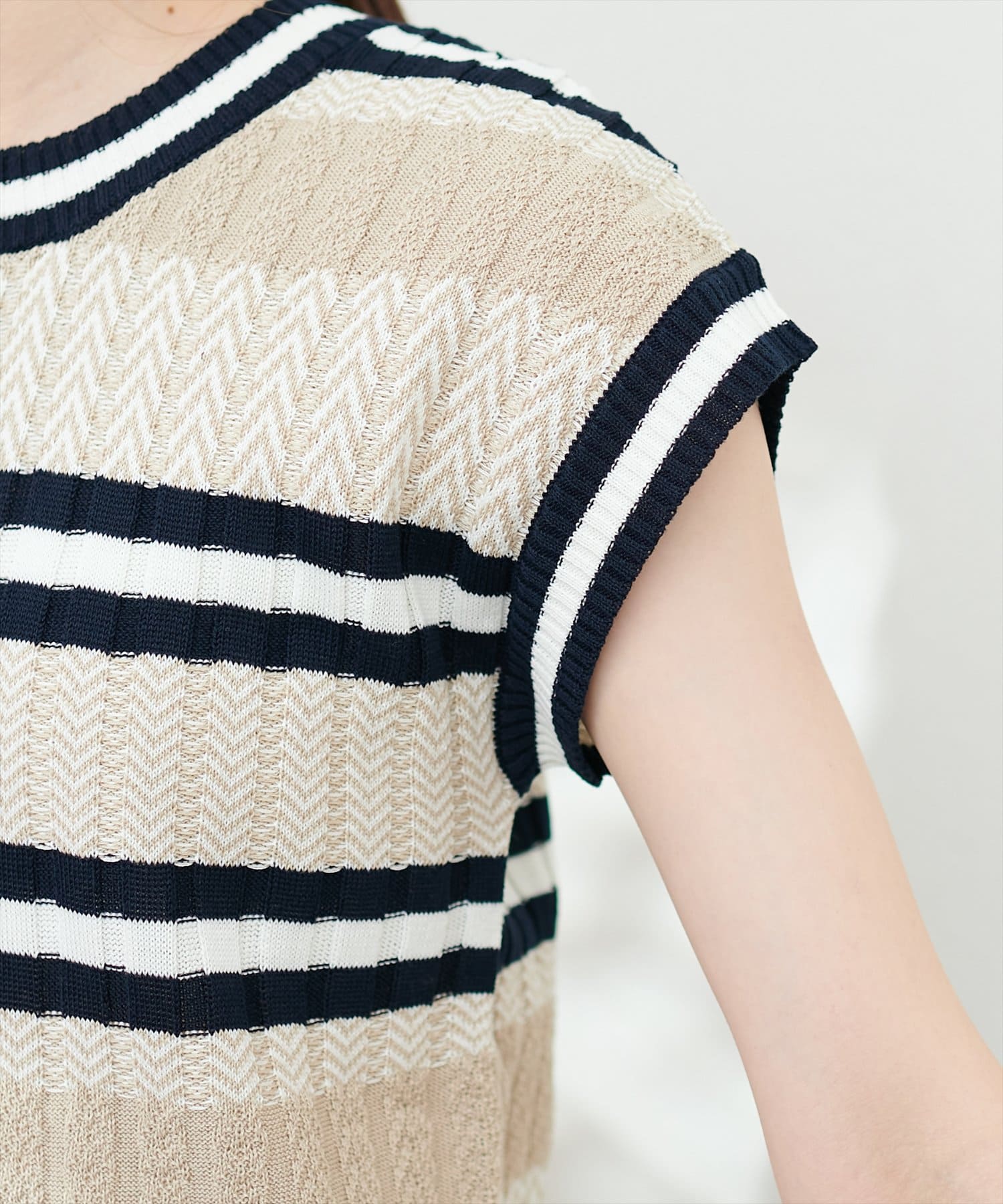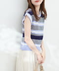 気分が上がるカラフルボーダーが可愛いノースリーブニット。