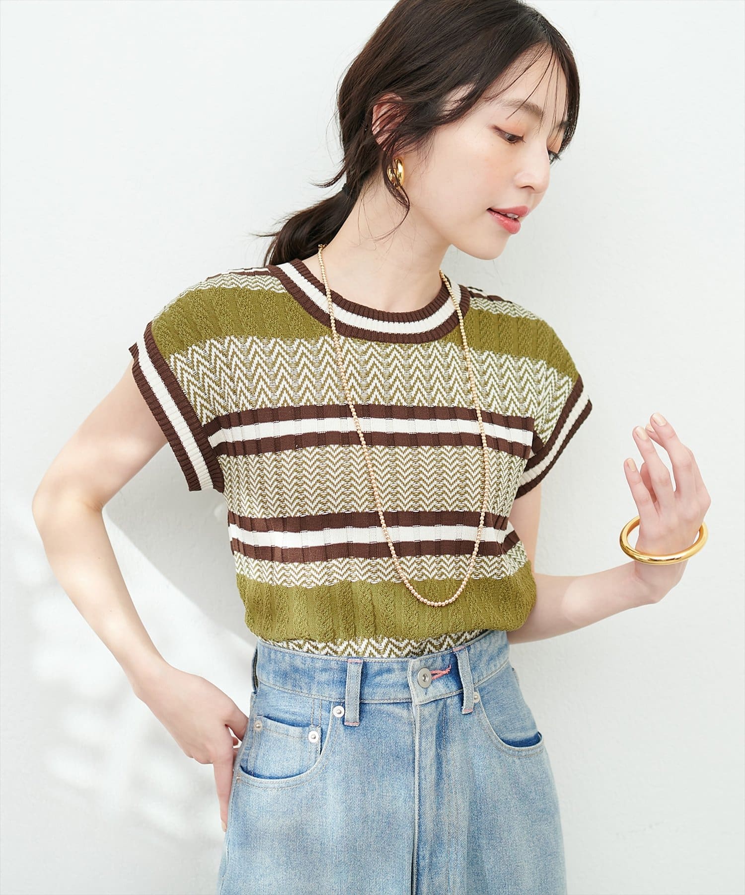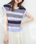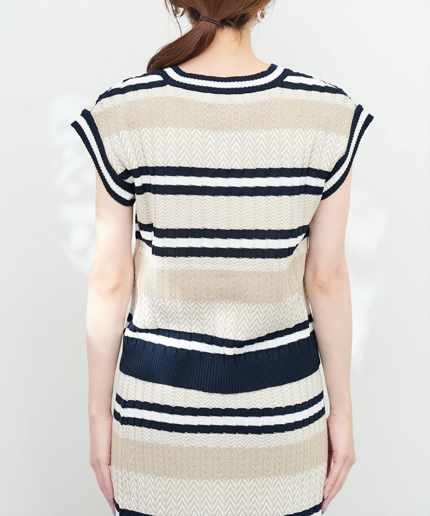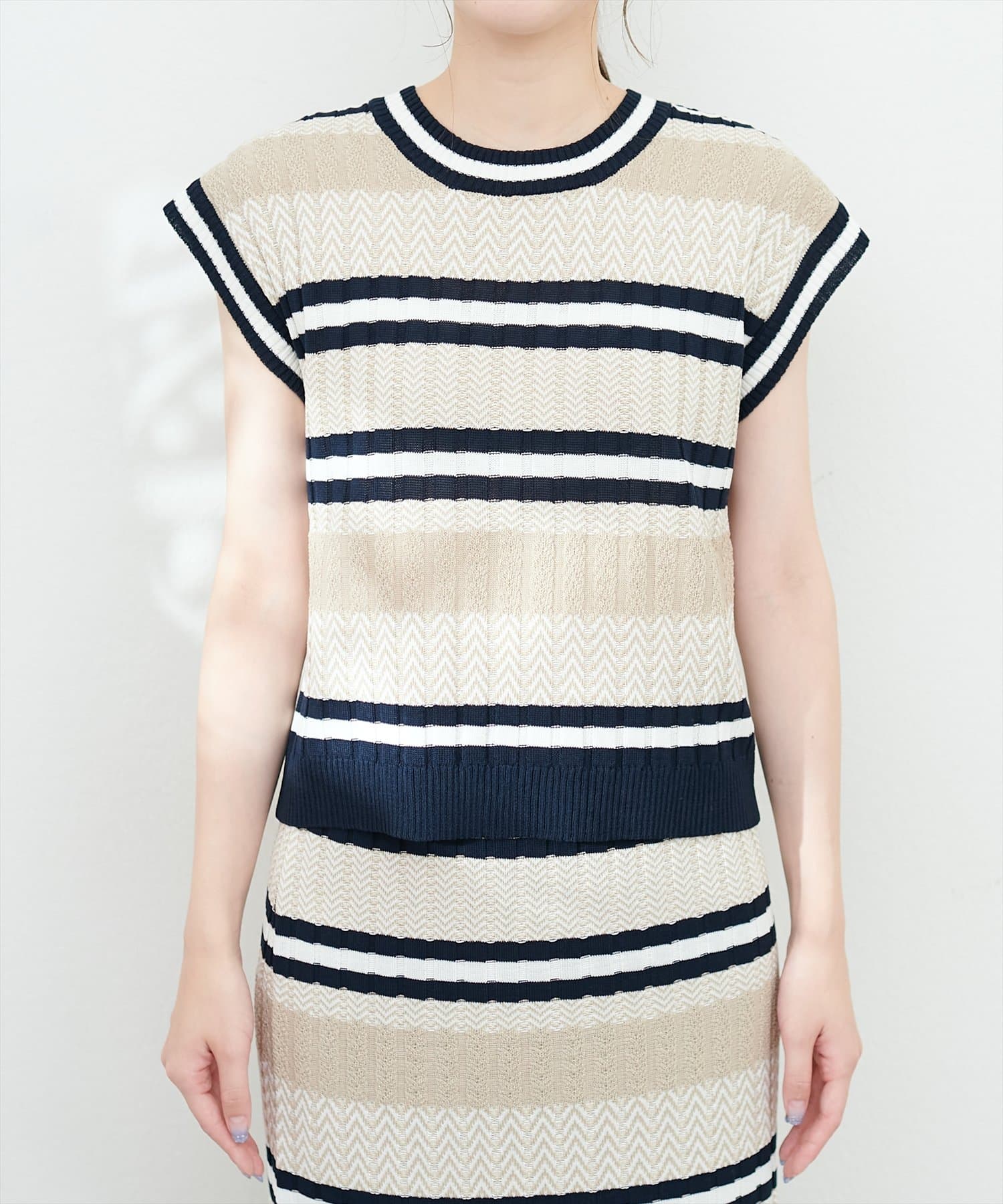 気分が上がるカラフルボーダーが可愛いノースリーブニット。