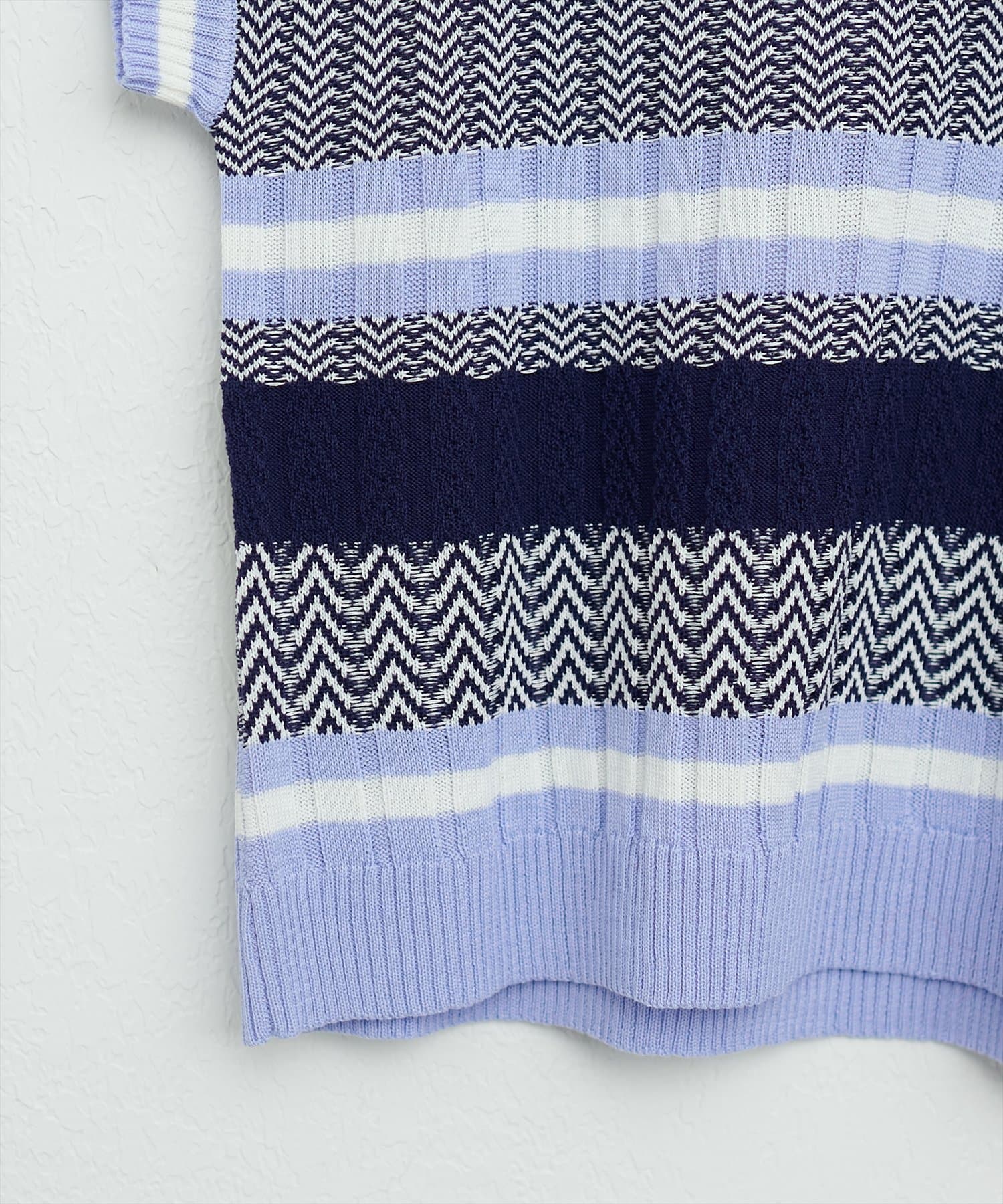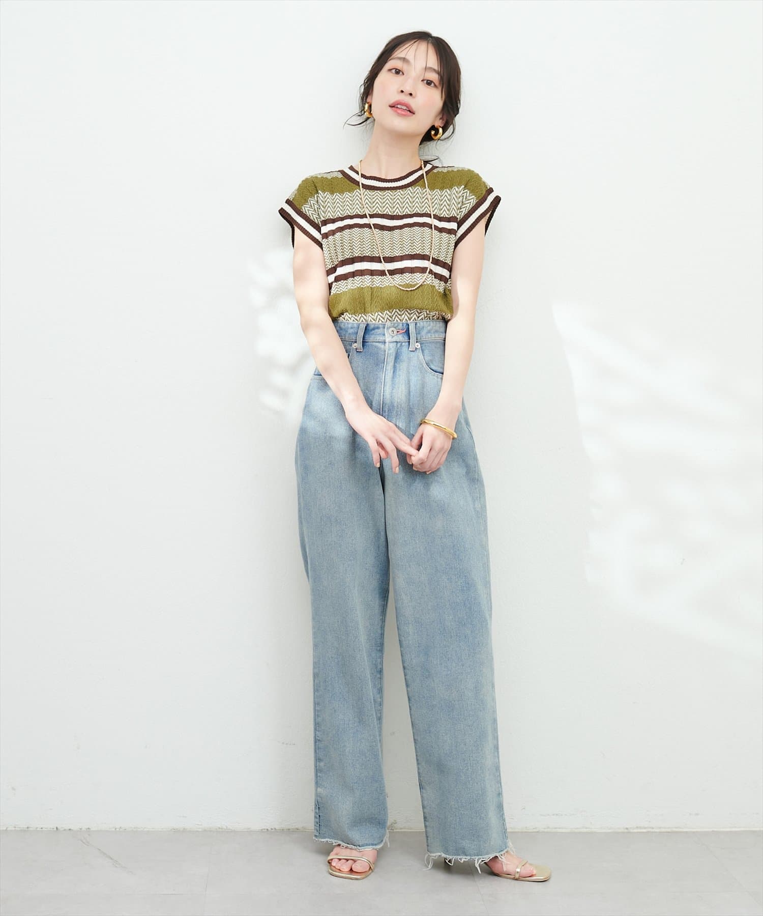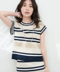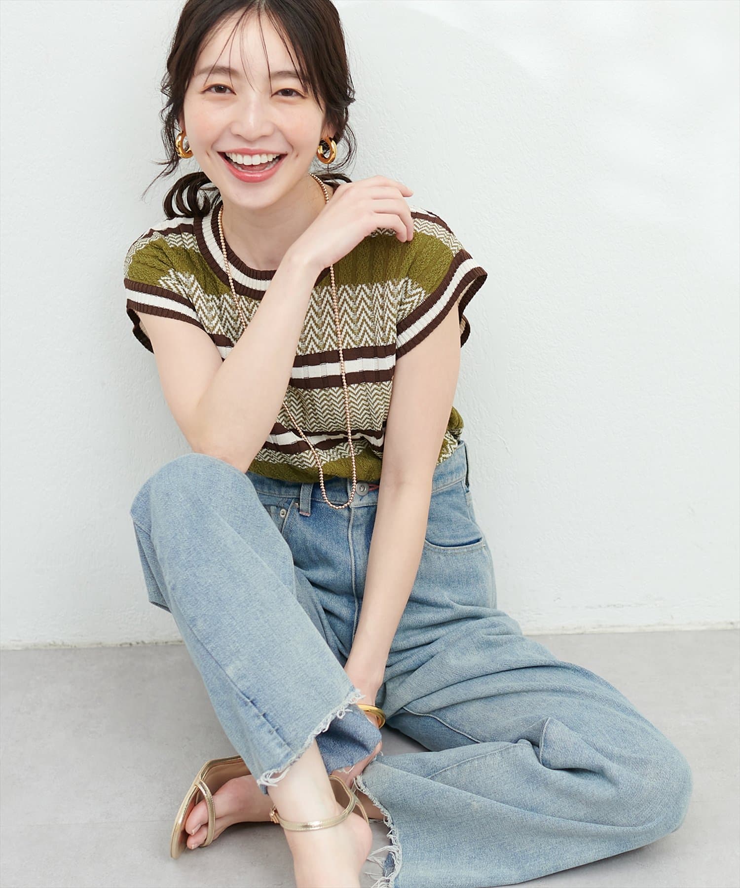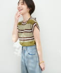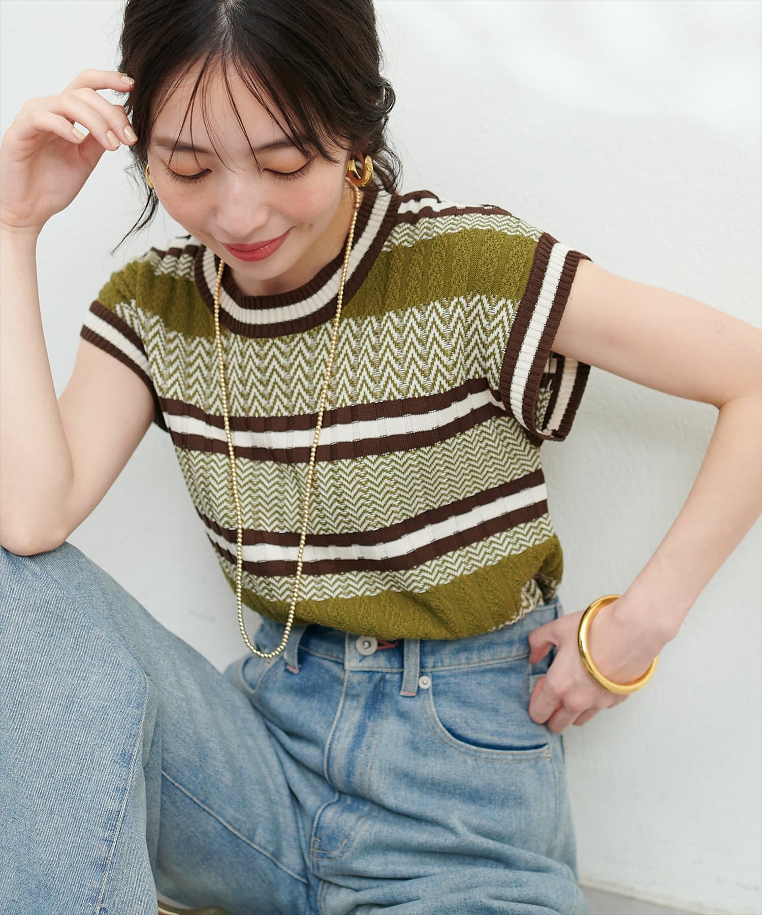 気分が上がるカラフルボーダーが可愛いノースリーブニット。