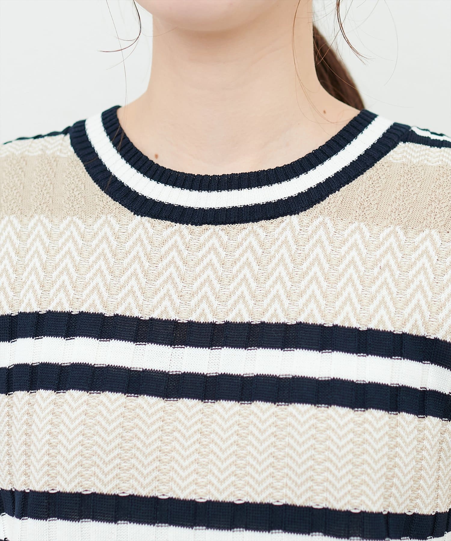 凹凸感のあるリブ編みで縦ラインが協調され、スタイルアップ効果が期待できます。