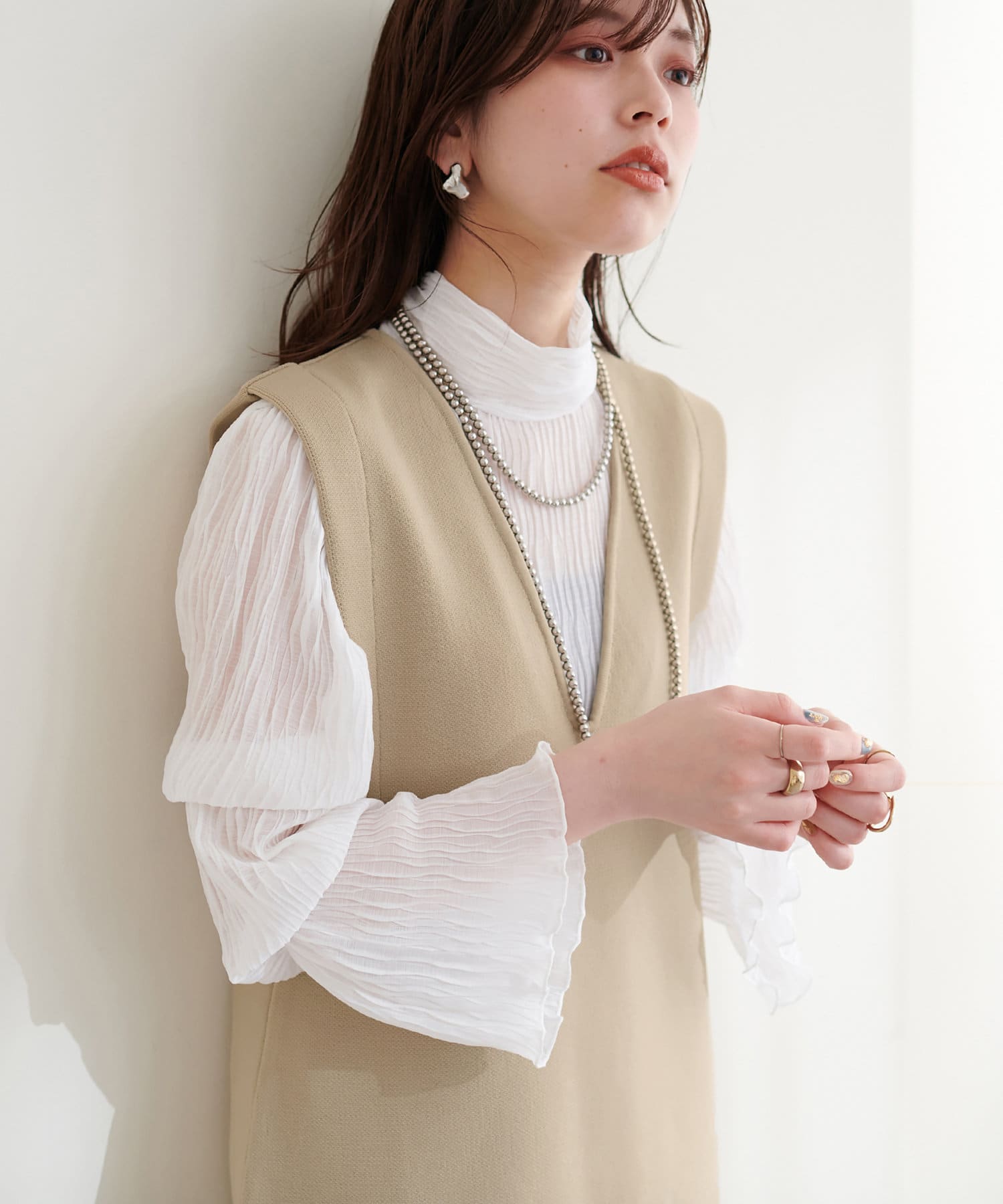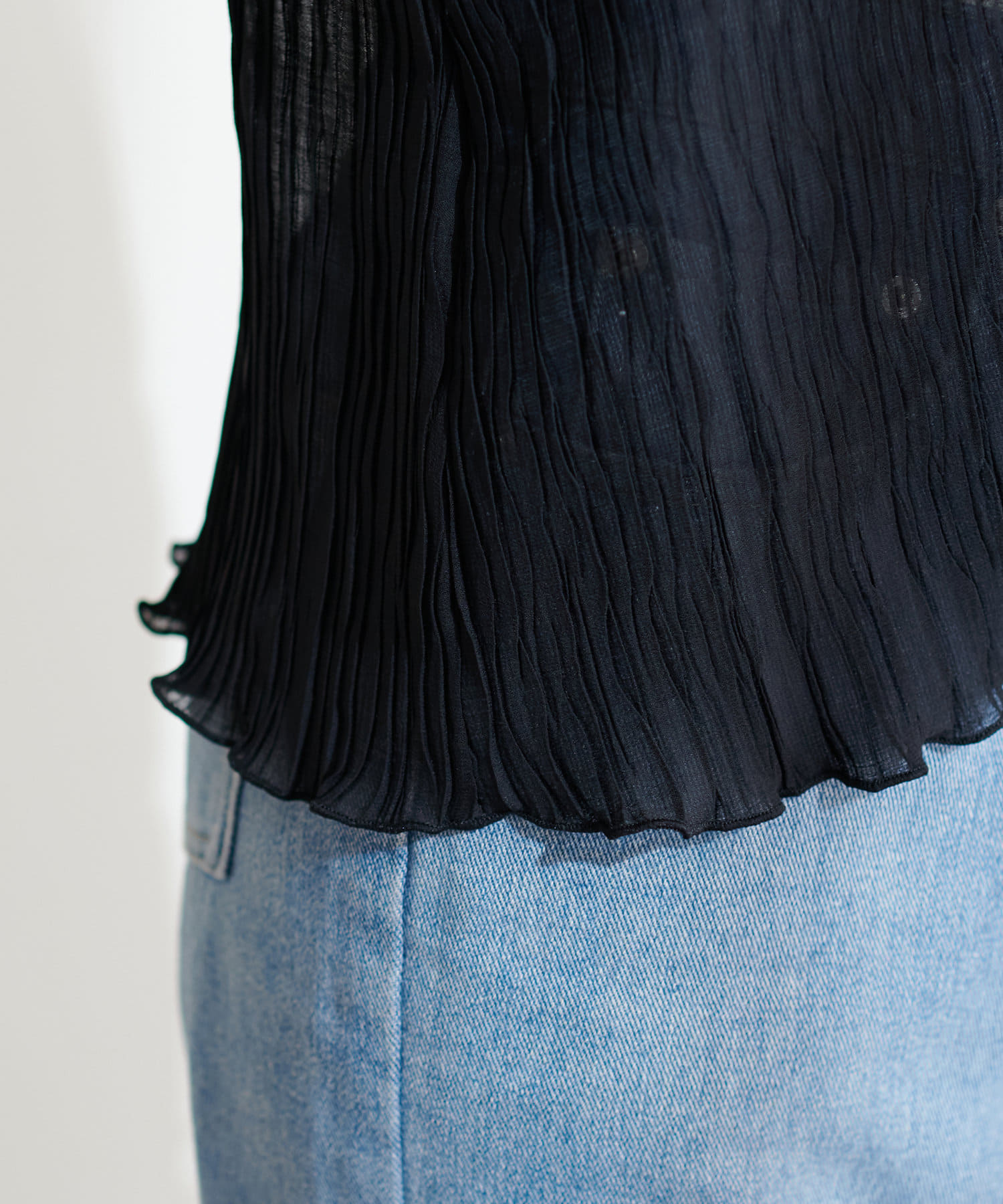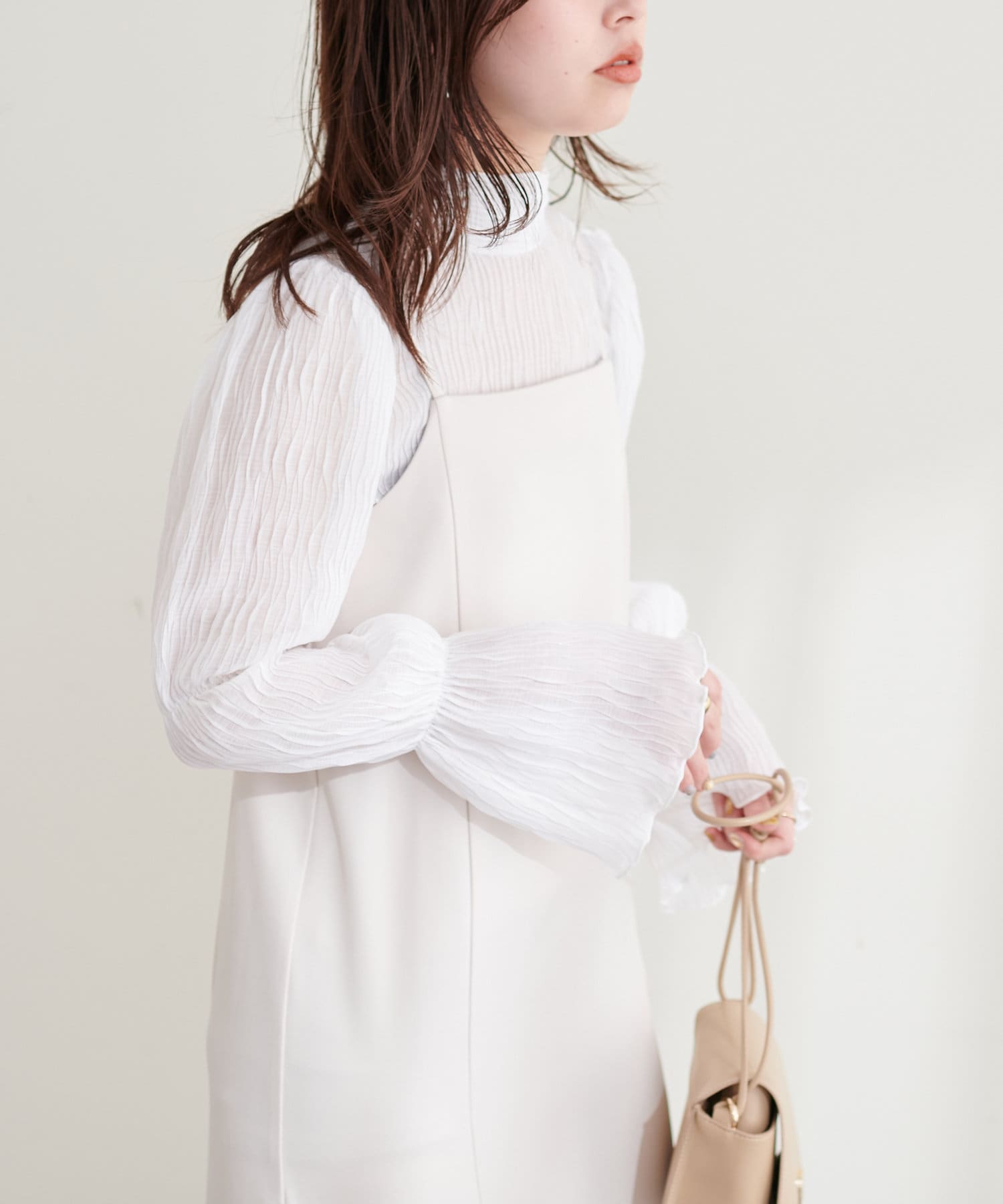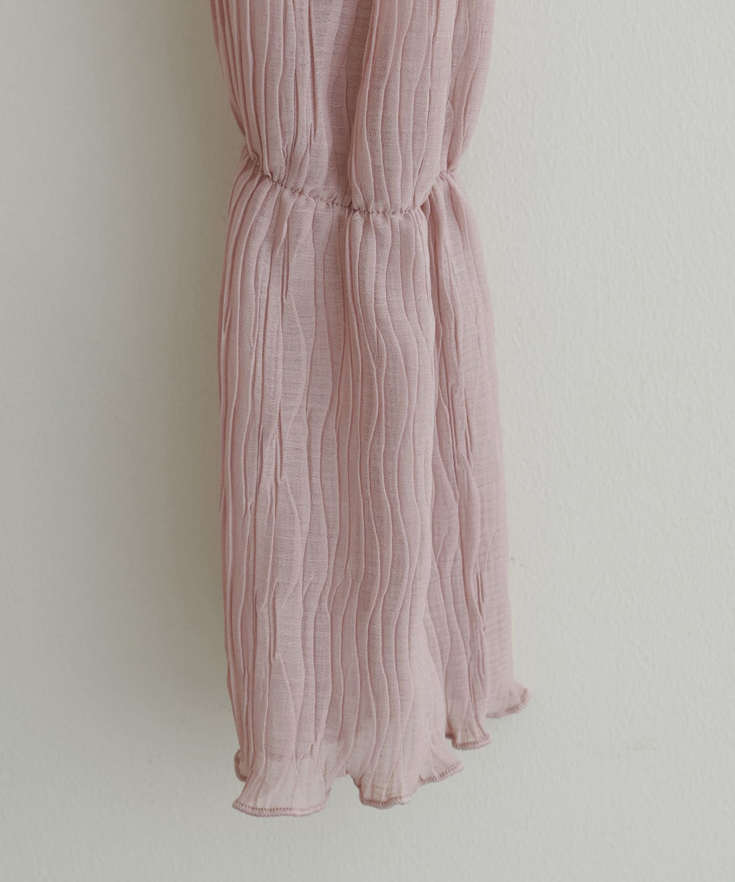 クシュっとしたプリーツとシアーの組み合わせがシンプルながら上品な印象に。