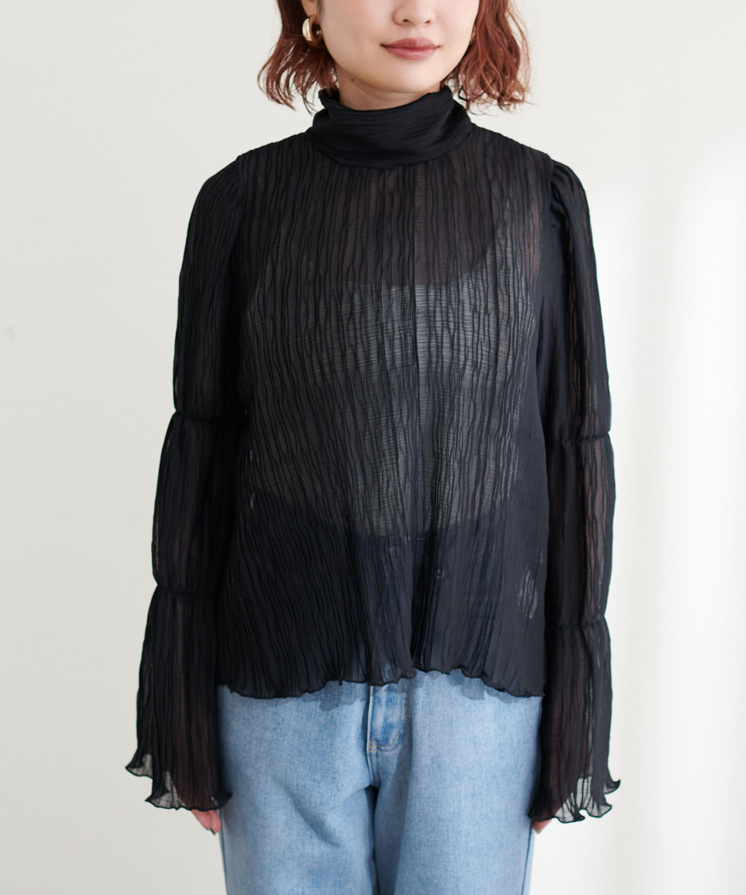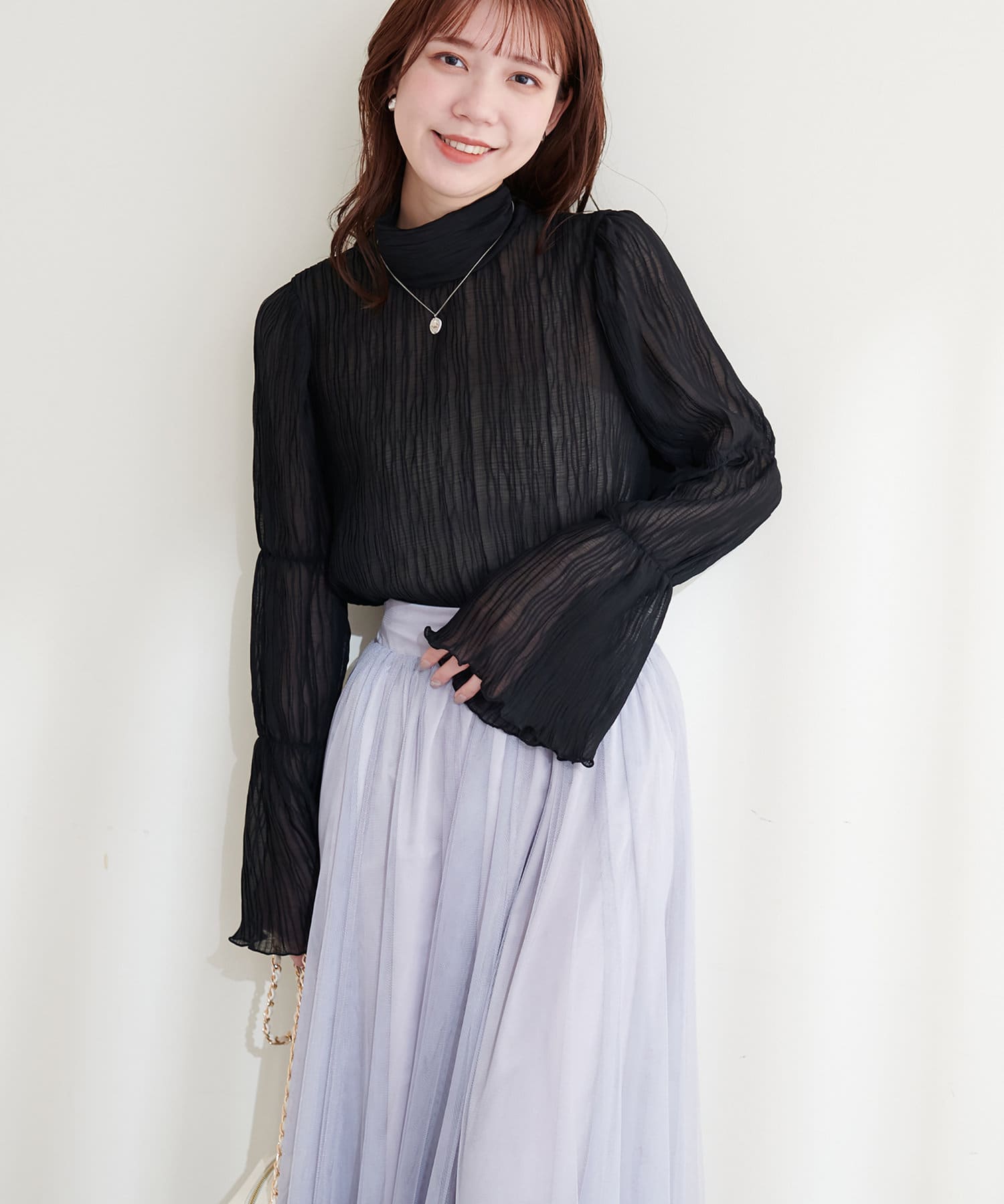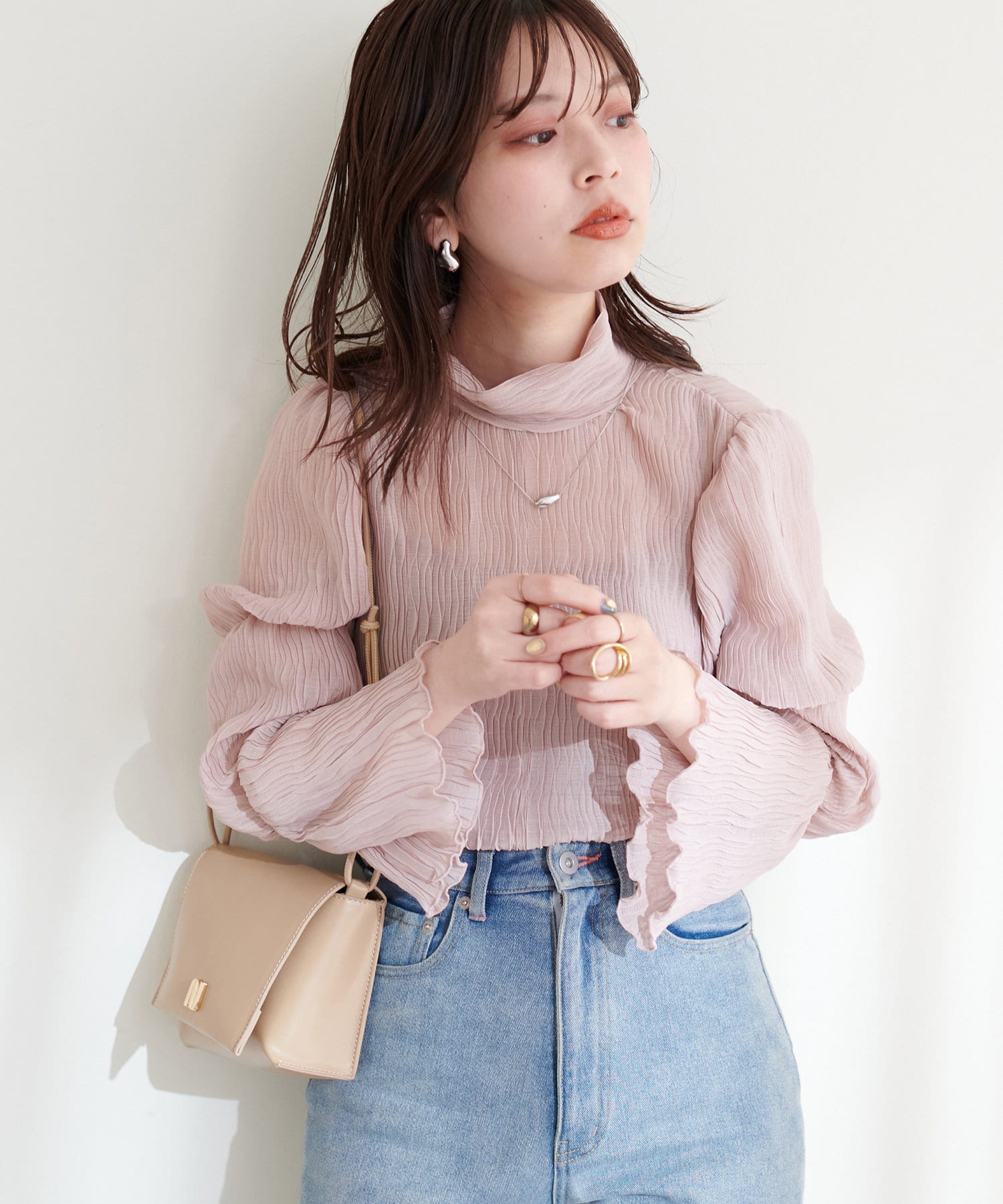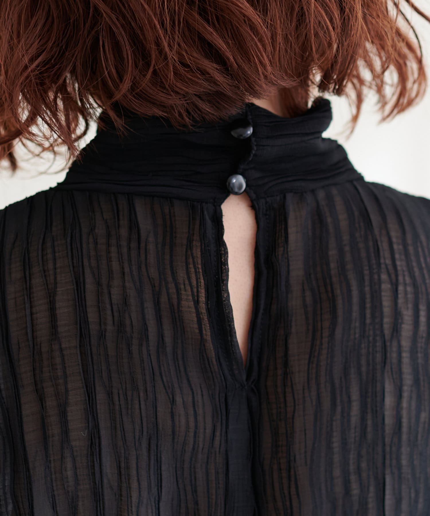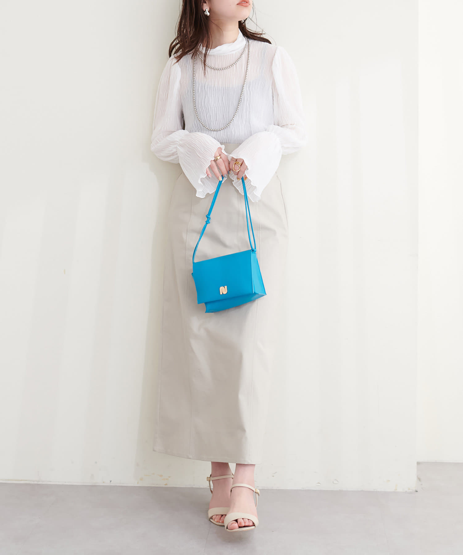クシュっとしたプリーツとシアーの組み合わせがシンプルながら上品な印象に。