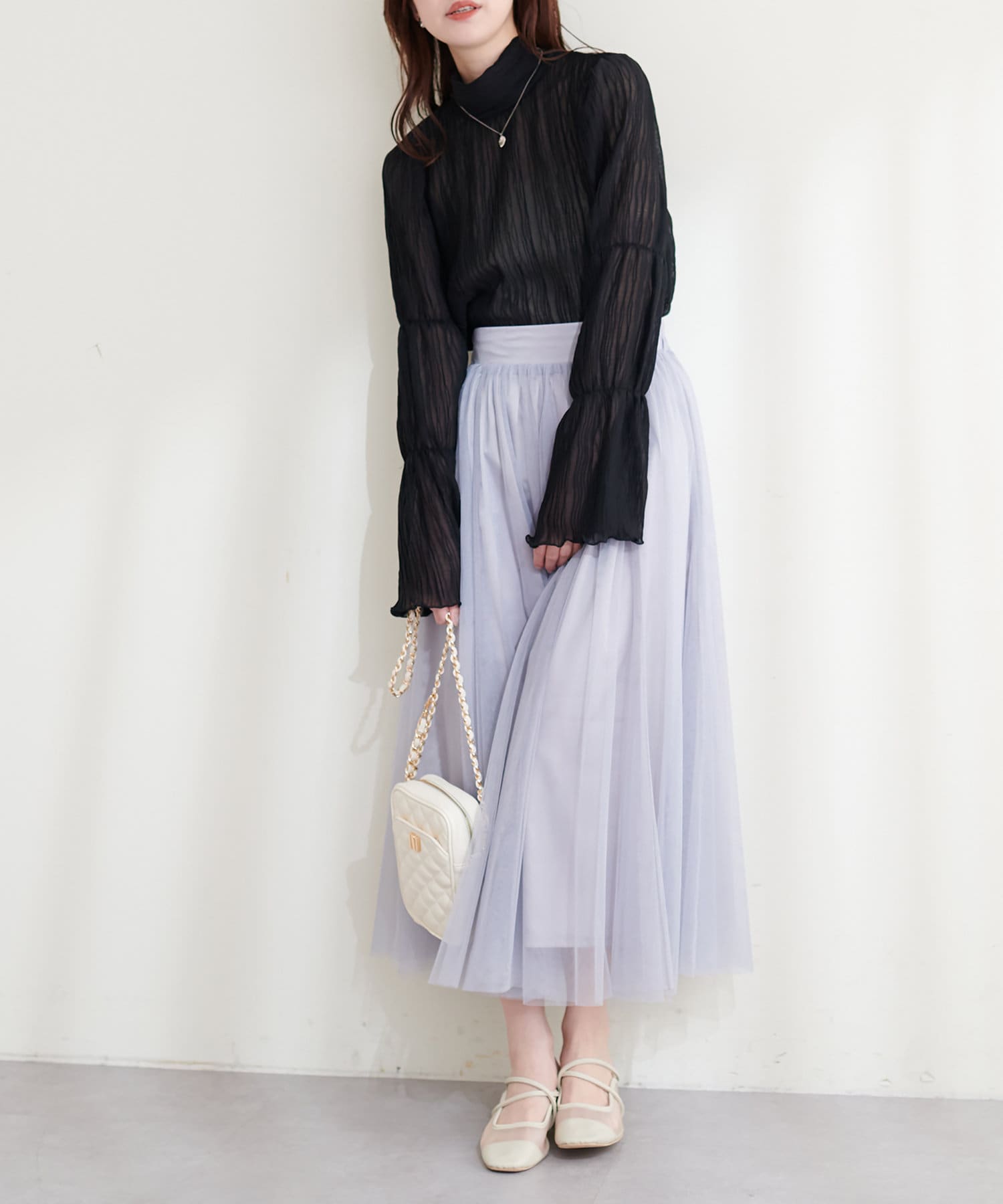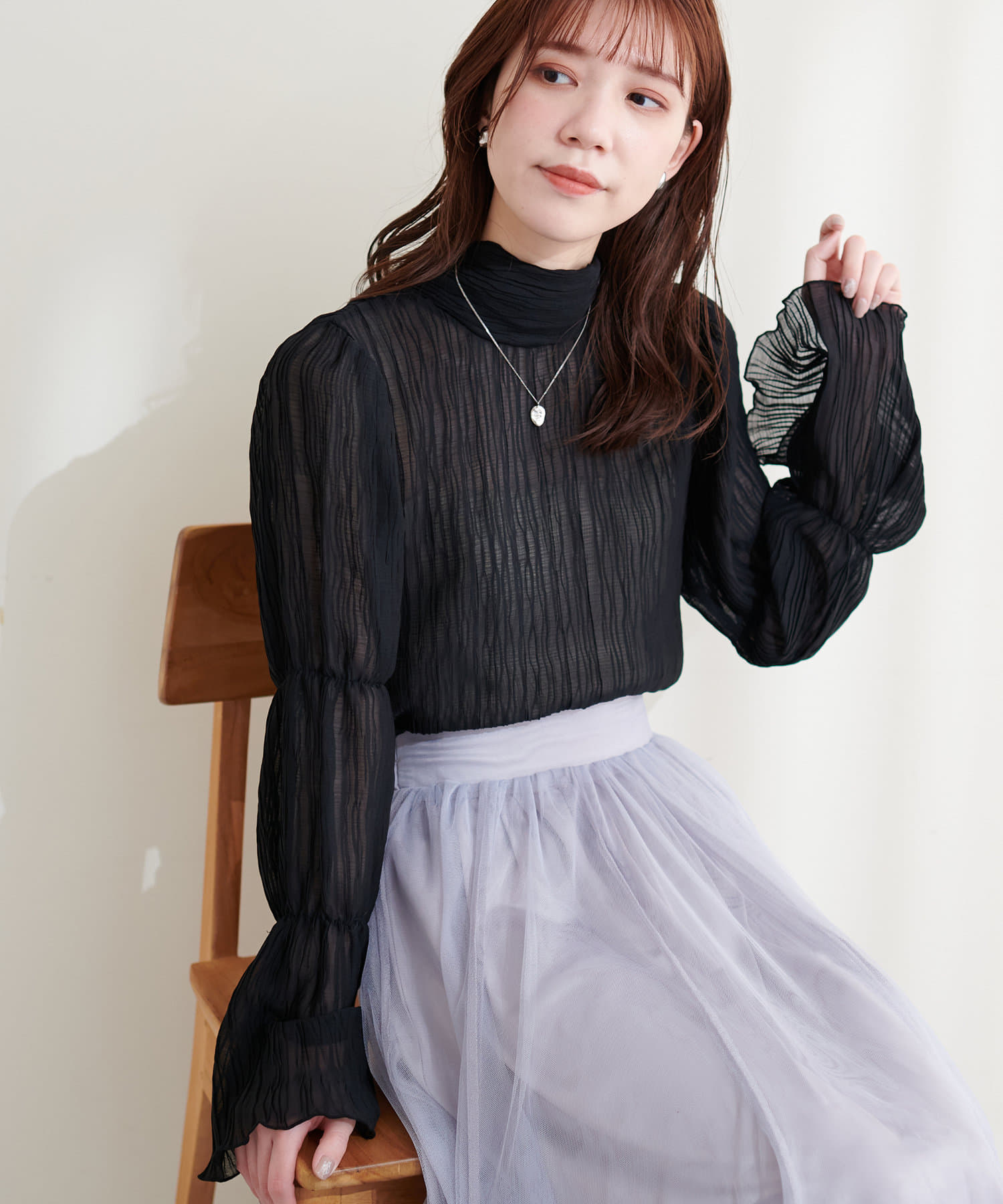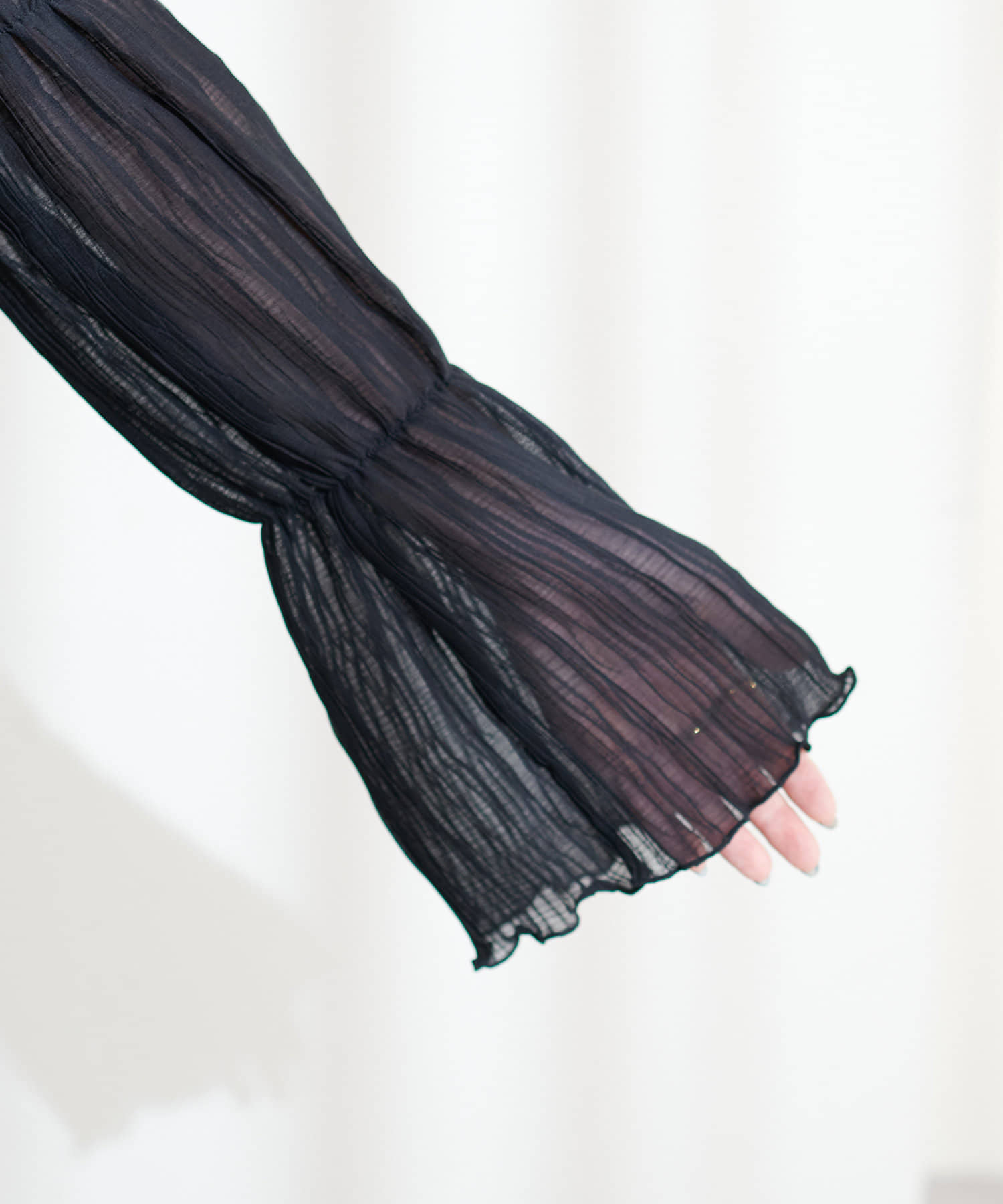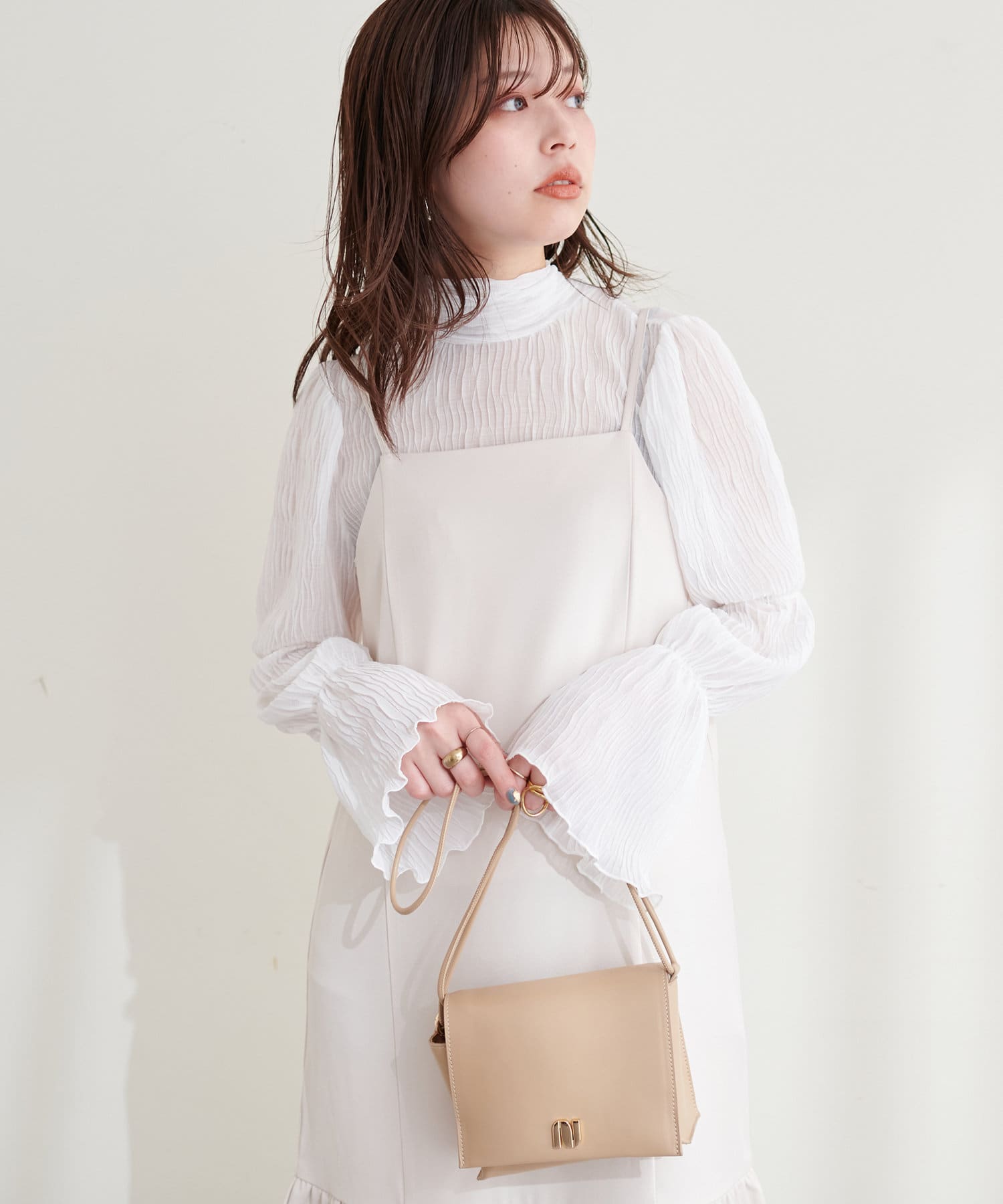 クシュっとしたプリーツとシアーの組み合わせがシンプルながら上品な印象に。