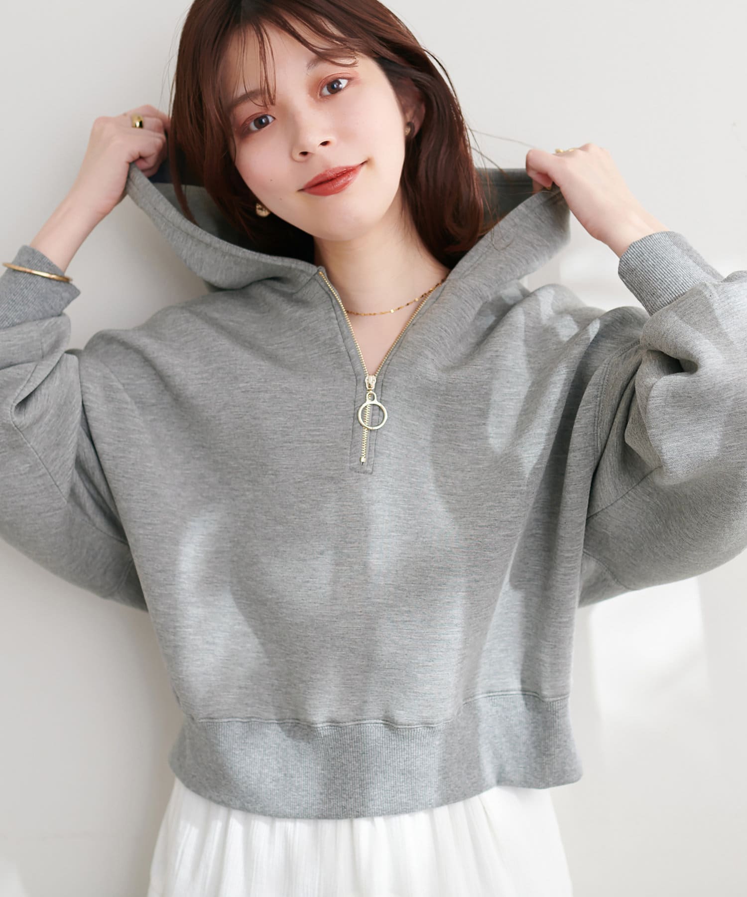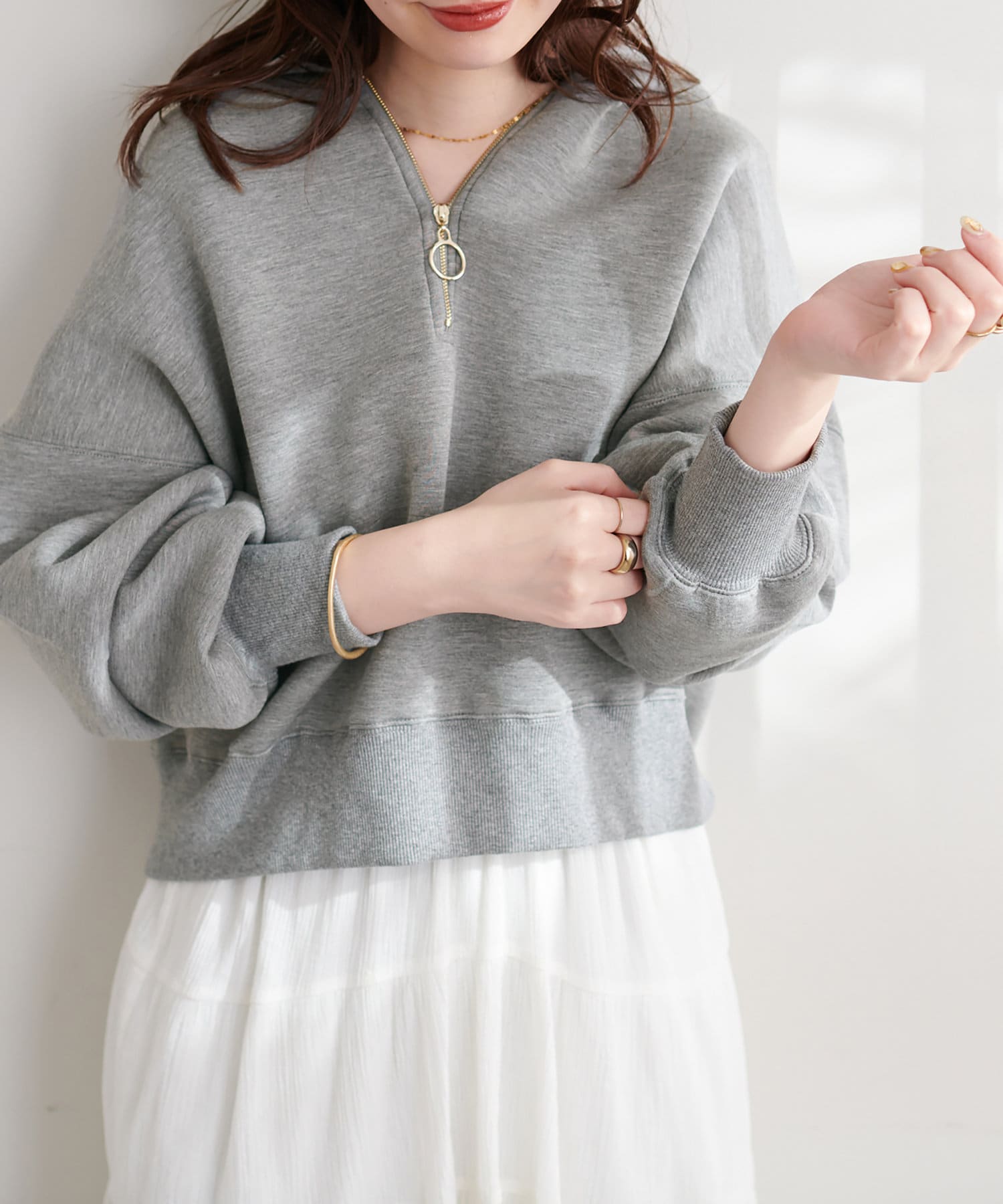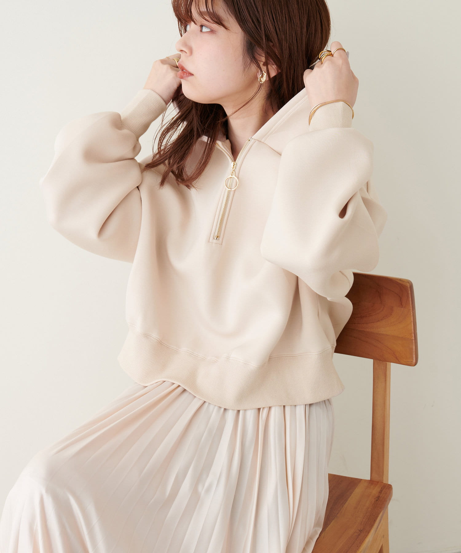 ハーフジップなので、インナーにはハイネックを仕込んでレイヤードを楽しむのがおすすめです。