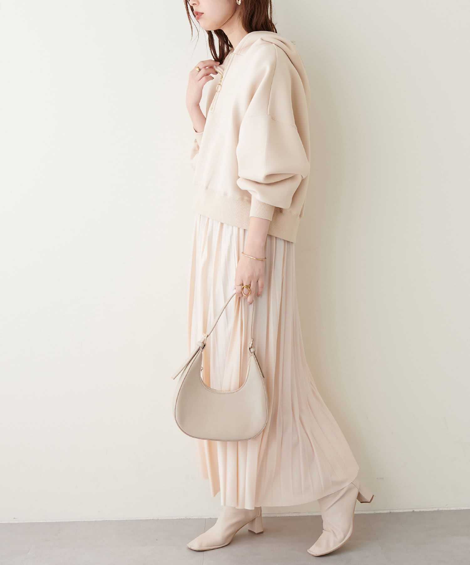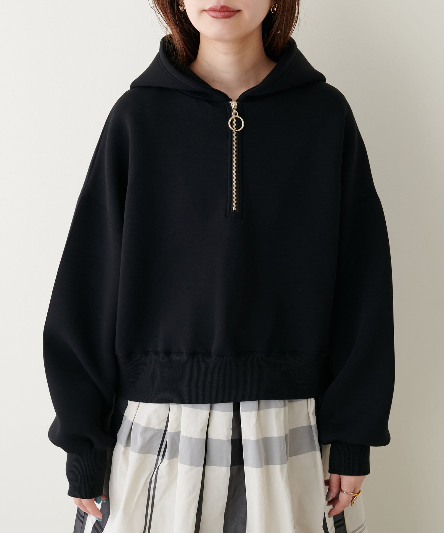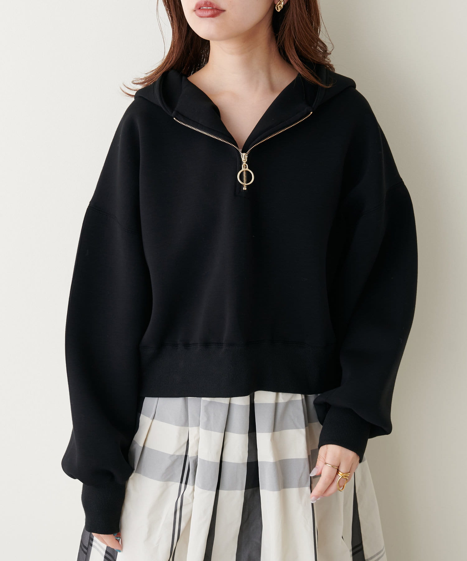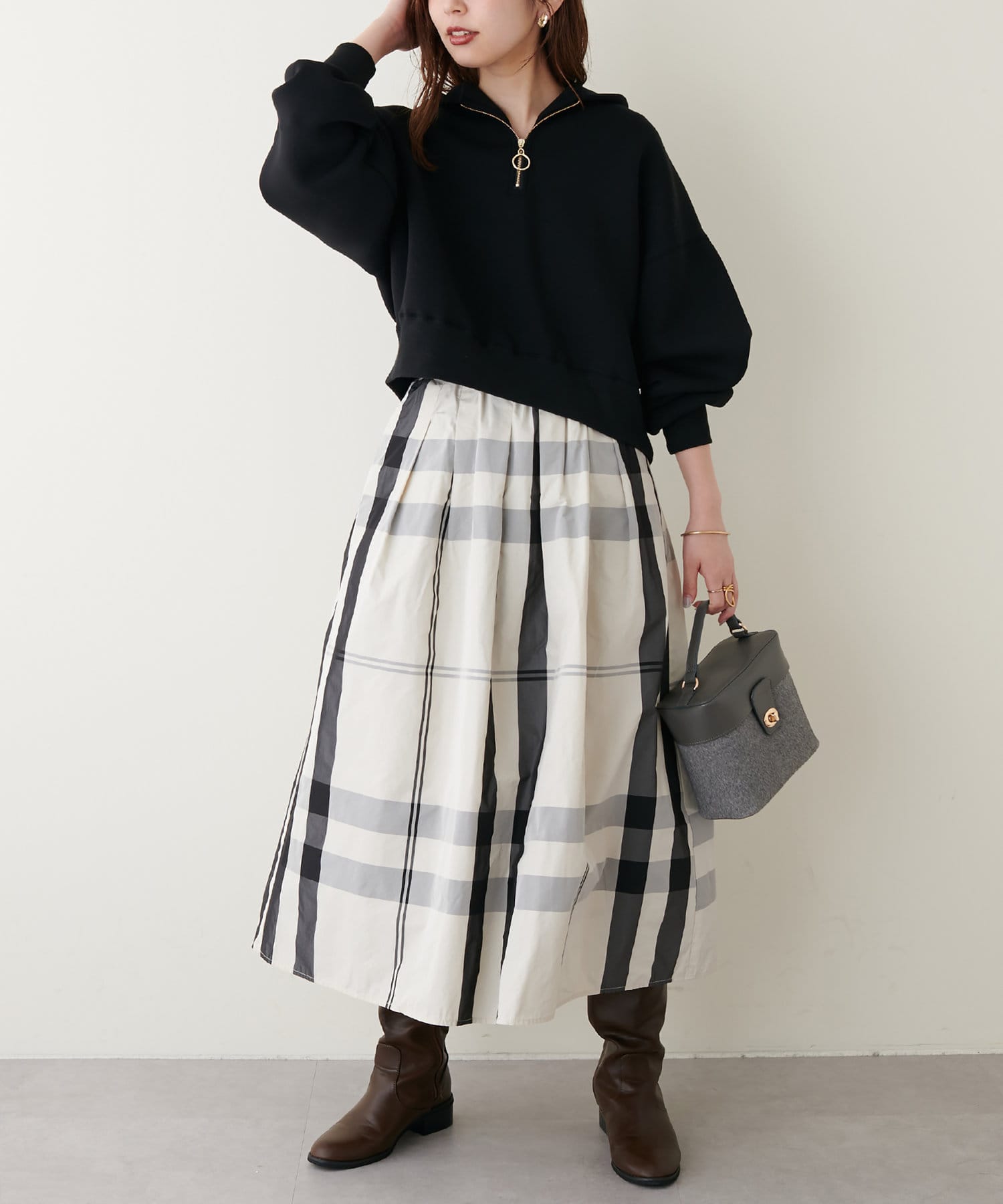 ハーフジップなので、インナーにはハイネックを仕込んでレイヤードを楽しむのがおすすめです。