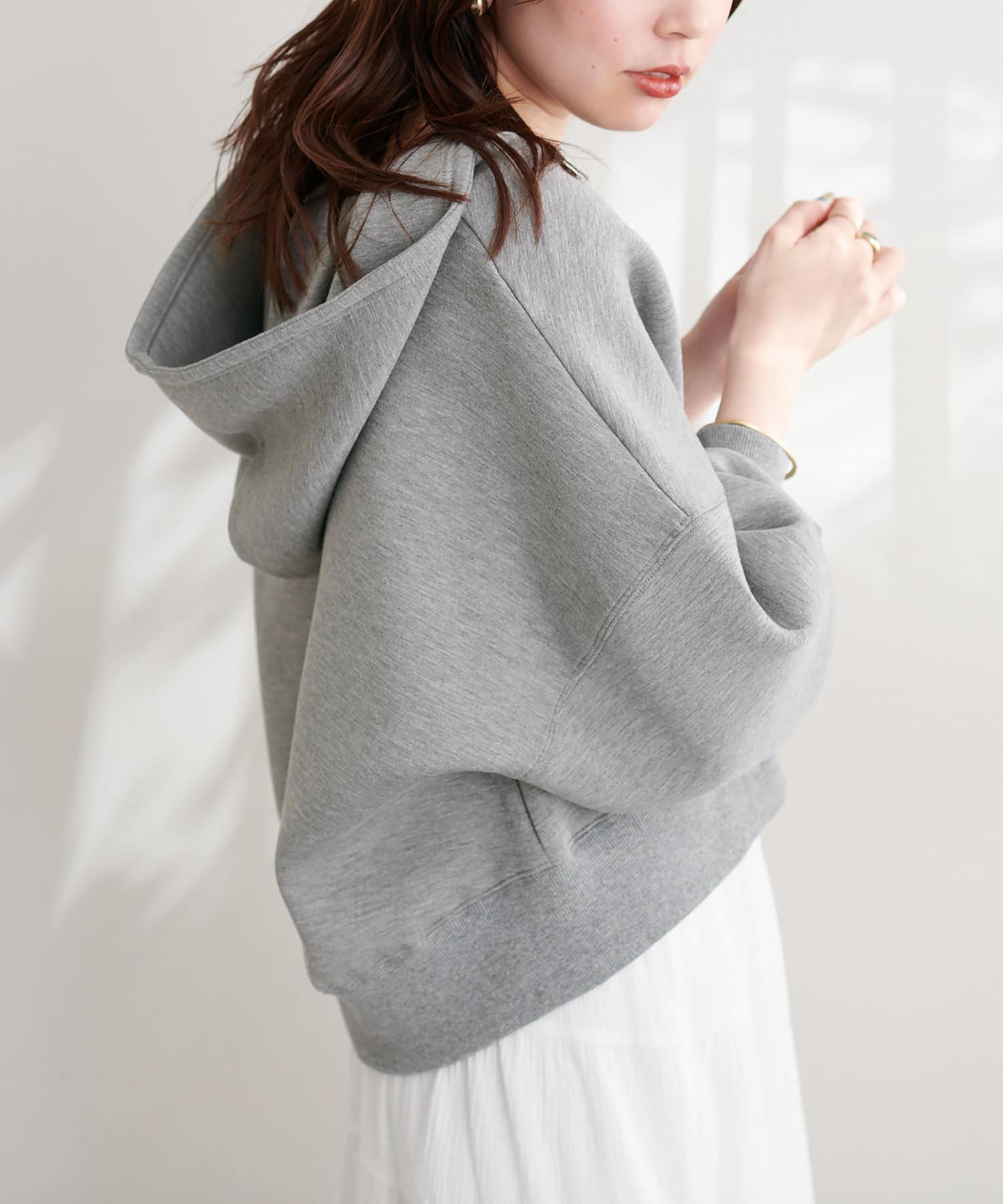 滑らかで程よいハリ感があり、さらっと心地よい風合いが魅力のダンボール素材を使用したフーディー。
