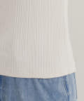 縦に凸凹の筋が入ったストライプ模様のリブカットソー。