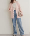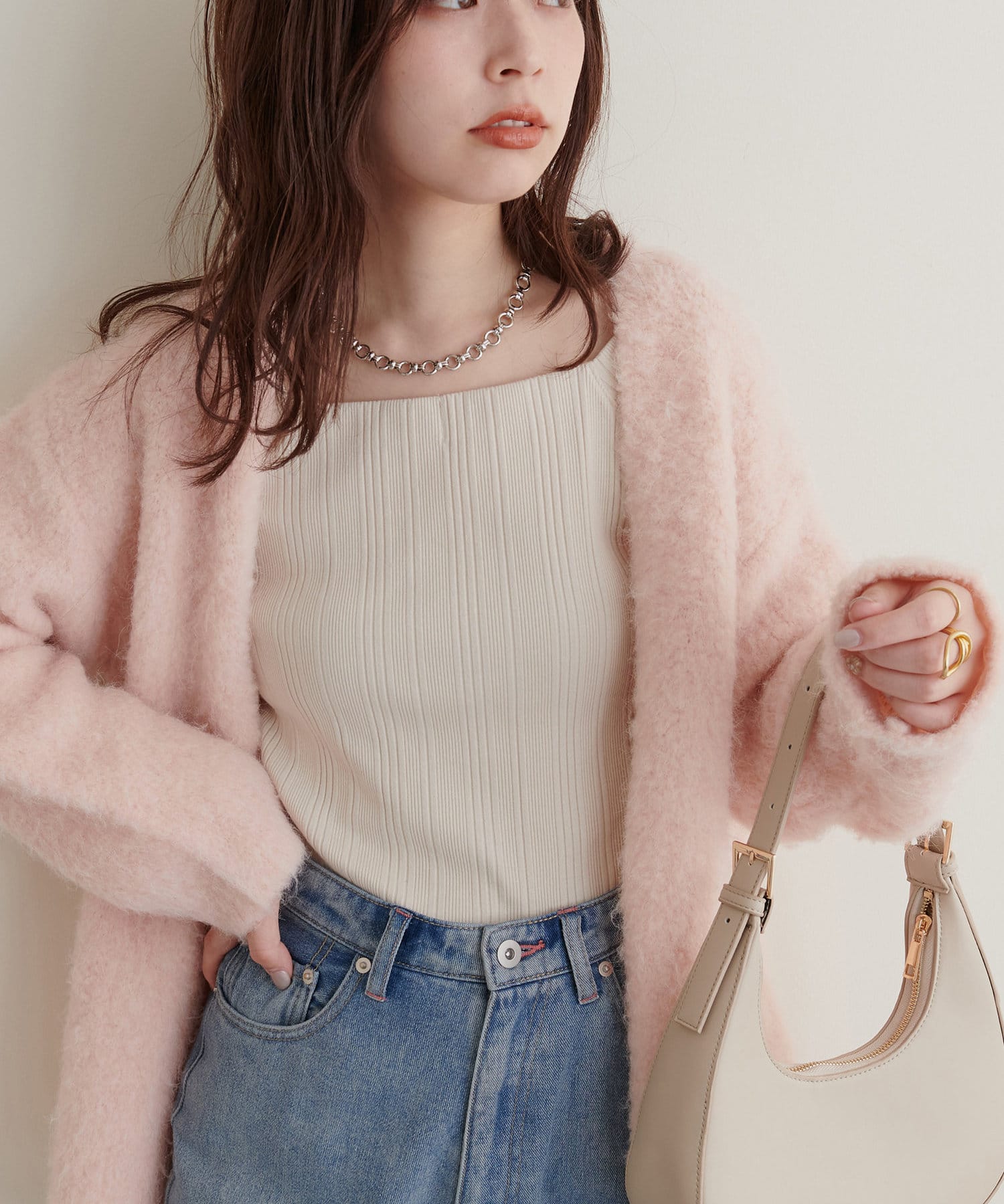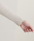単色ですが模様のようにランダムな太さのリブが入っているので、ボシンプルなボトムでも決まります。