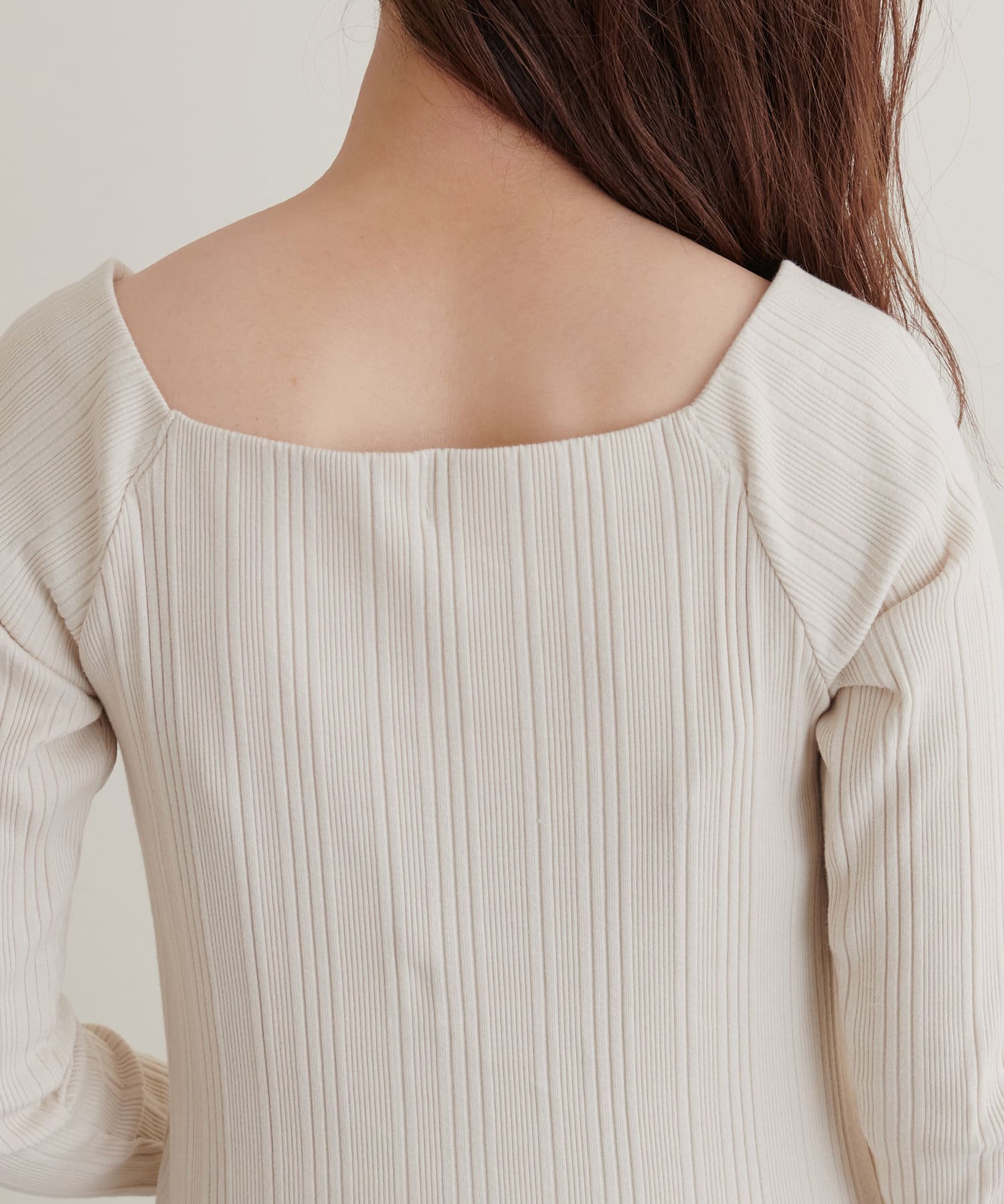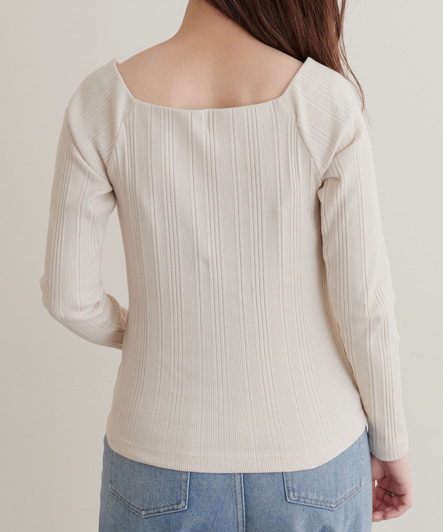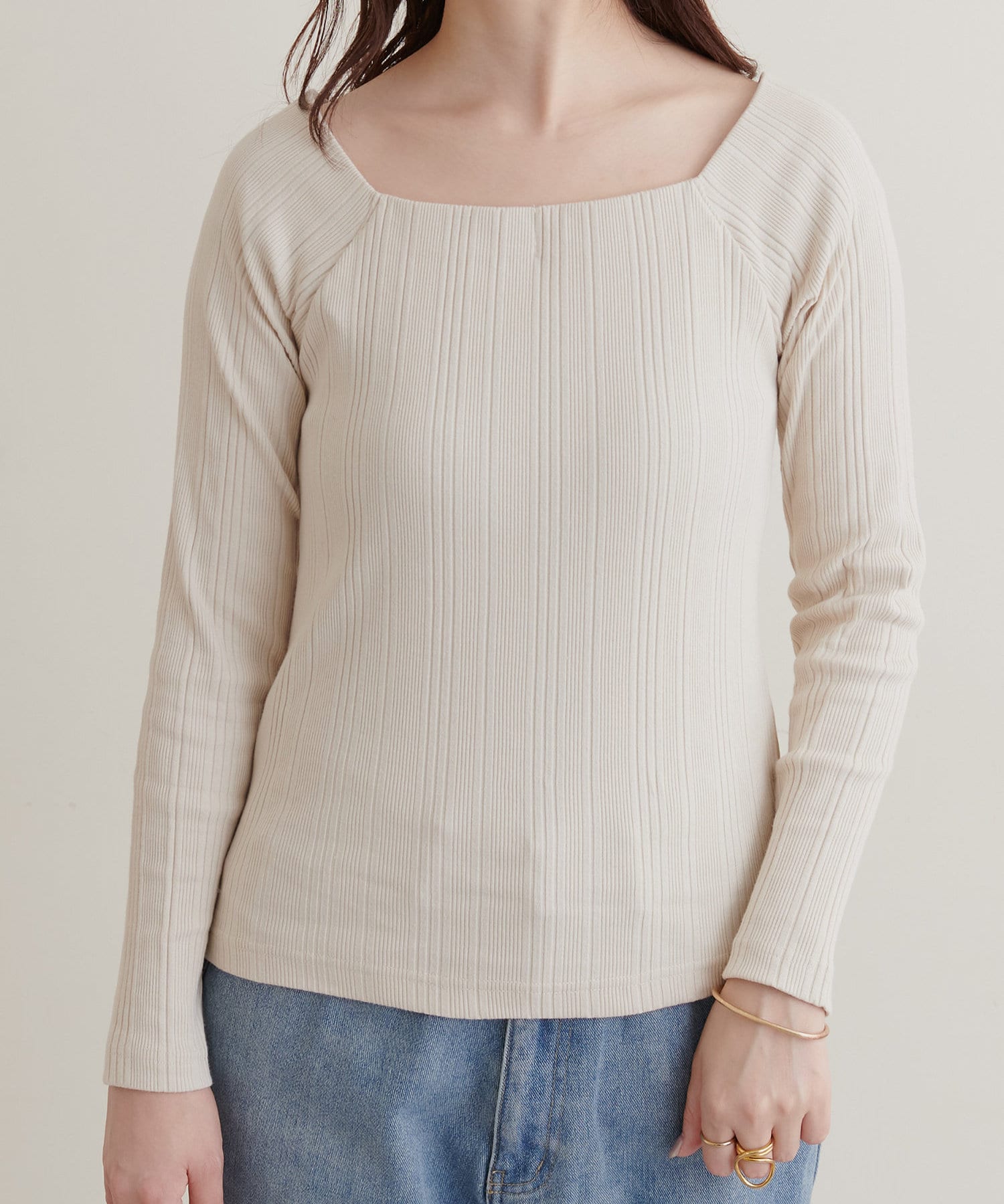 • natural couture(ナチュラルクチュール) 再販/スクエアネックランダムテレコT