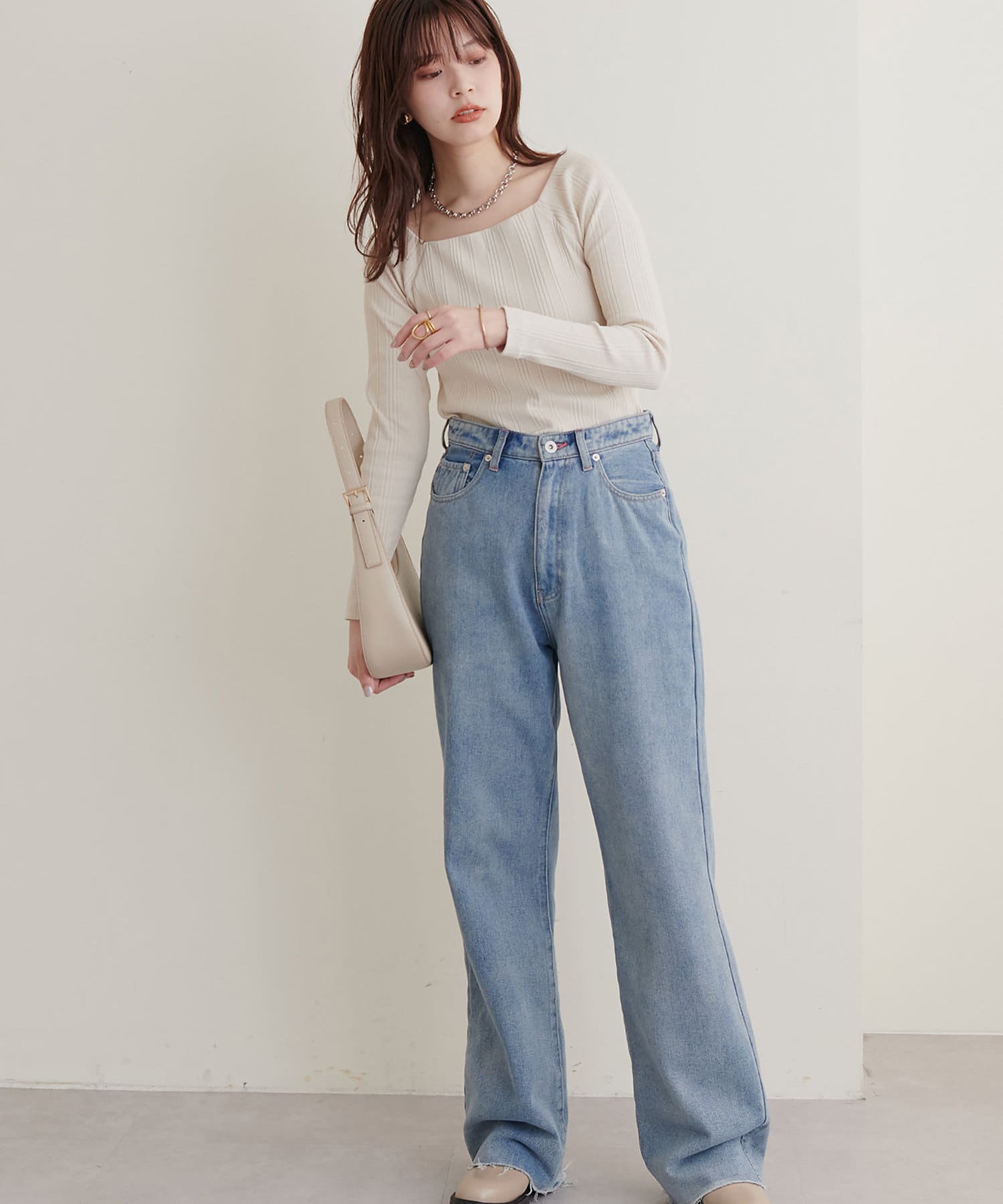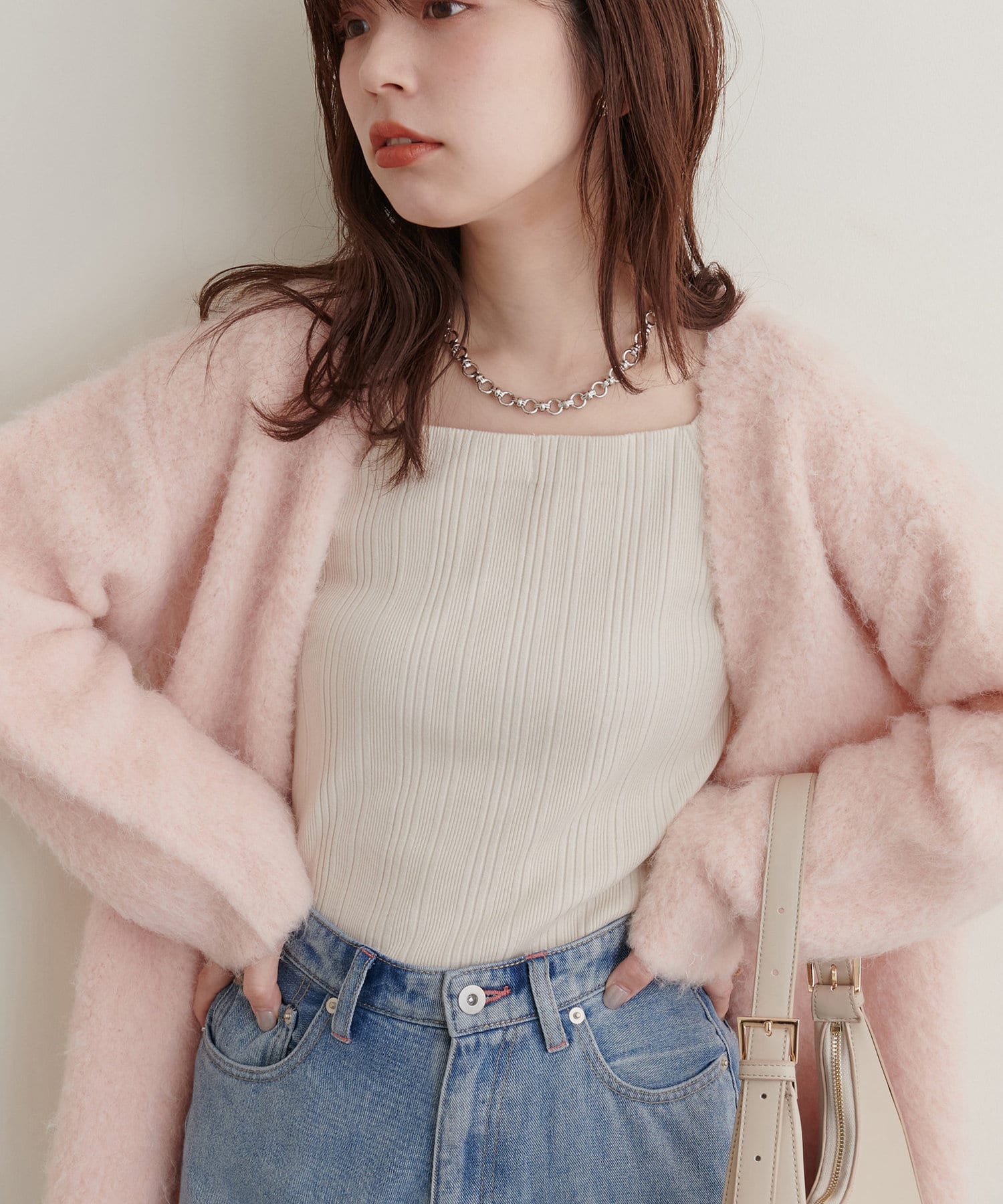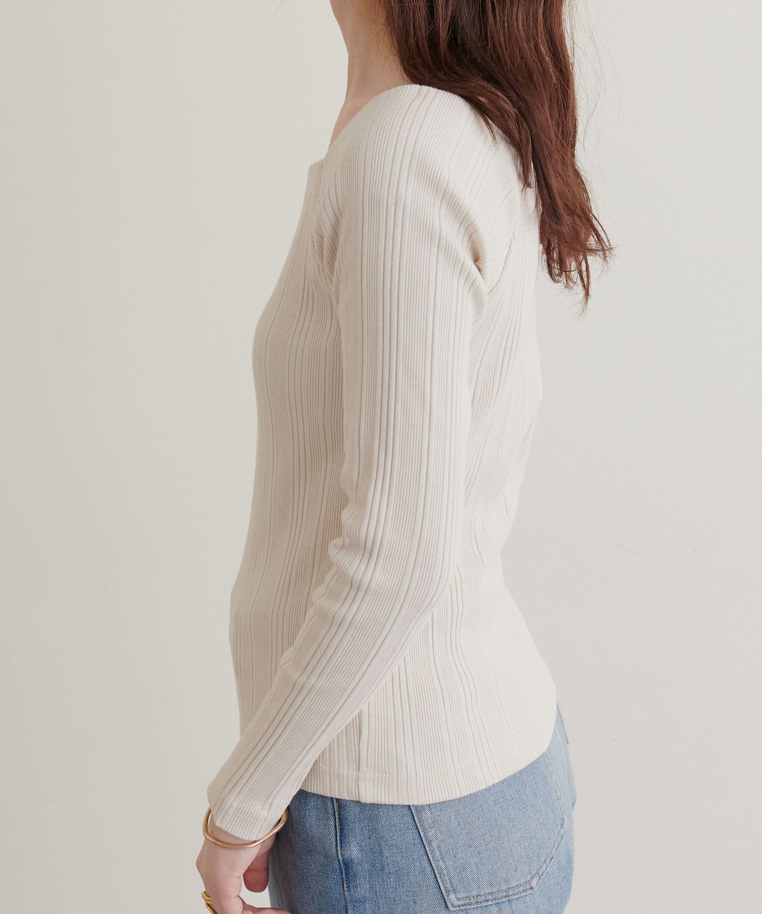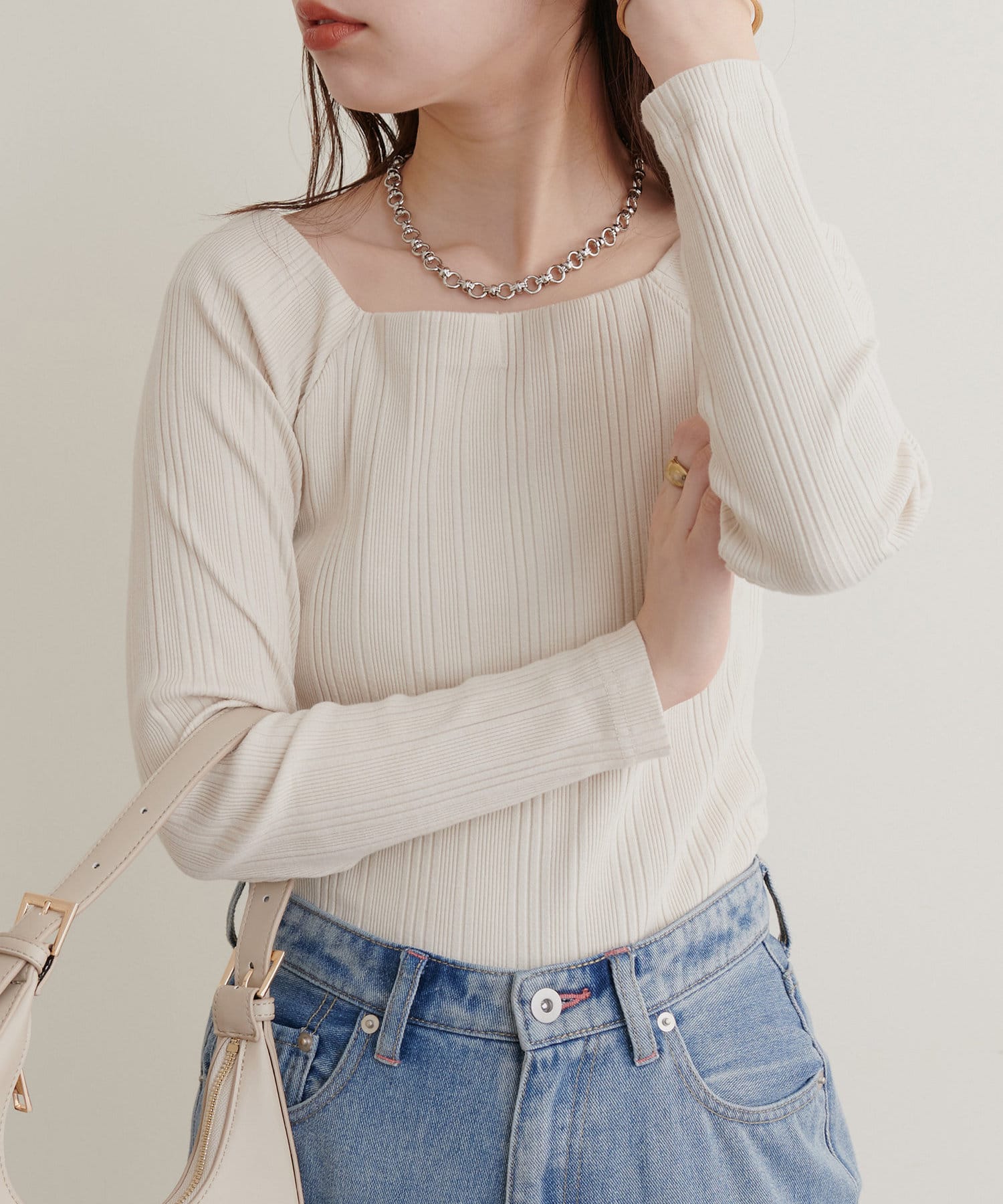 • natural couture(ナチュラルクチュール) 再販/スクエアネックランダムテレコT