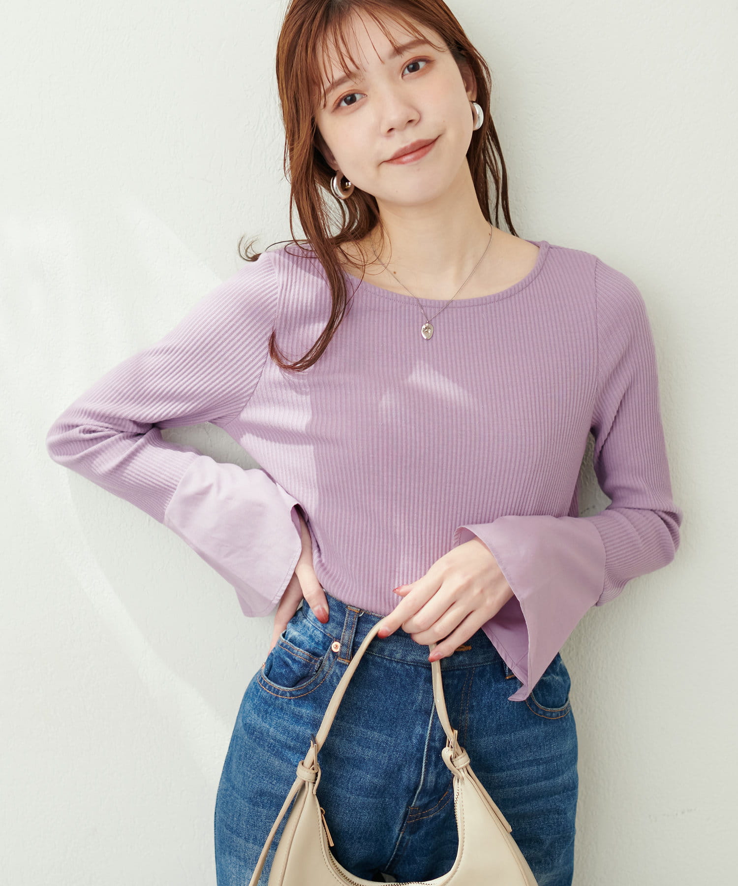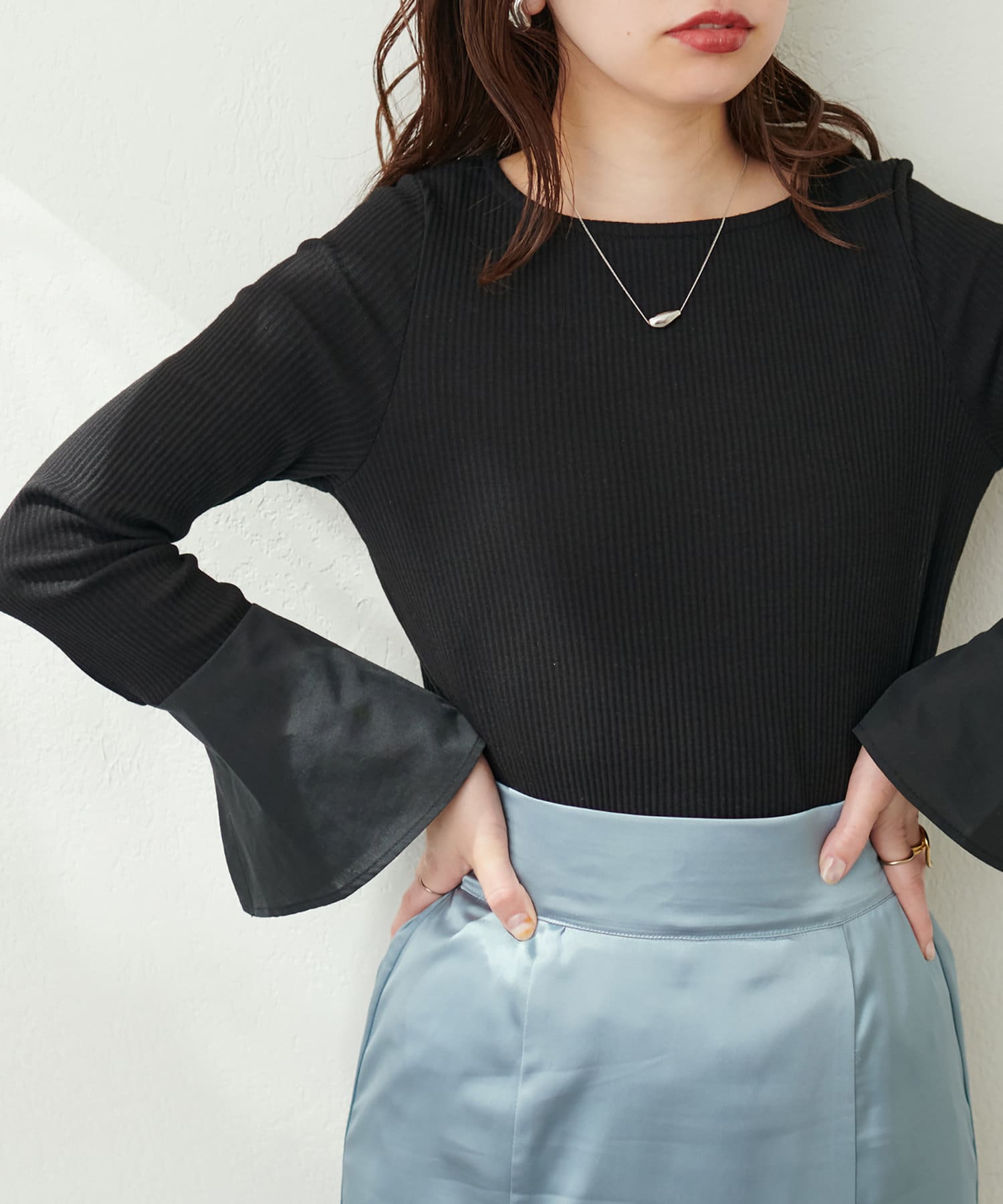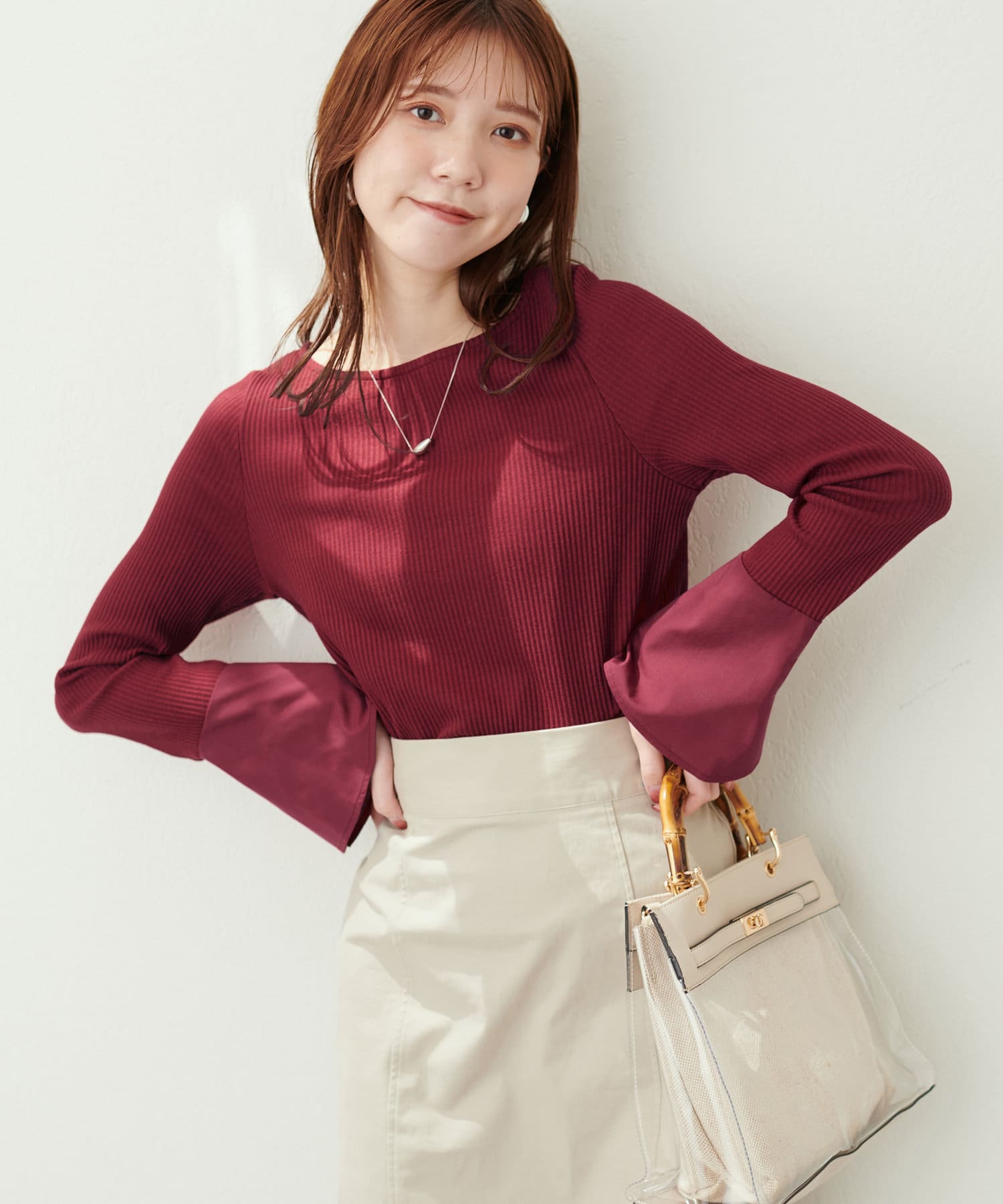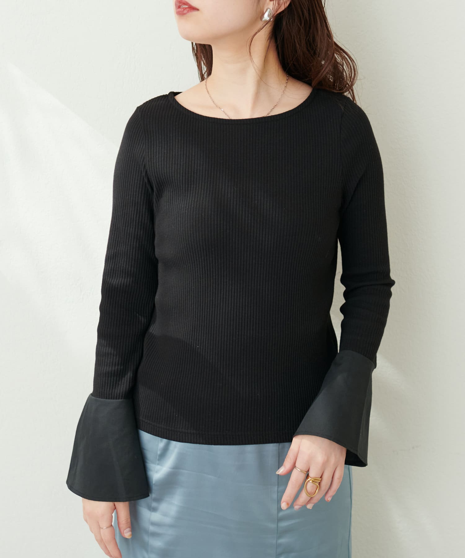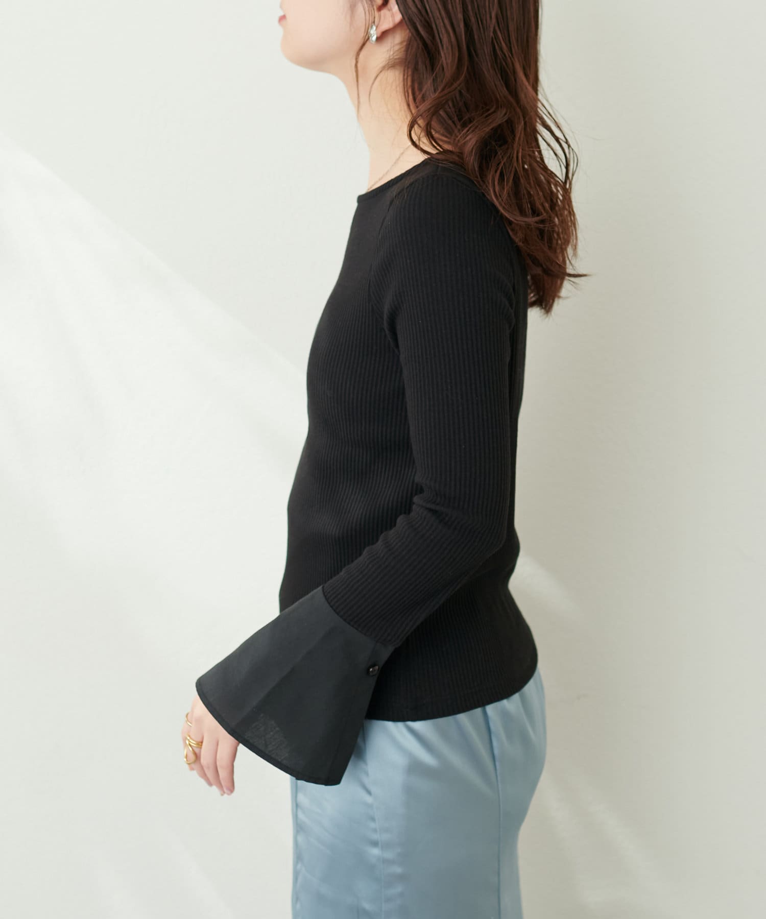 ウォッシャブル/袖口フレア切替テレコプルオーバー