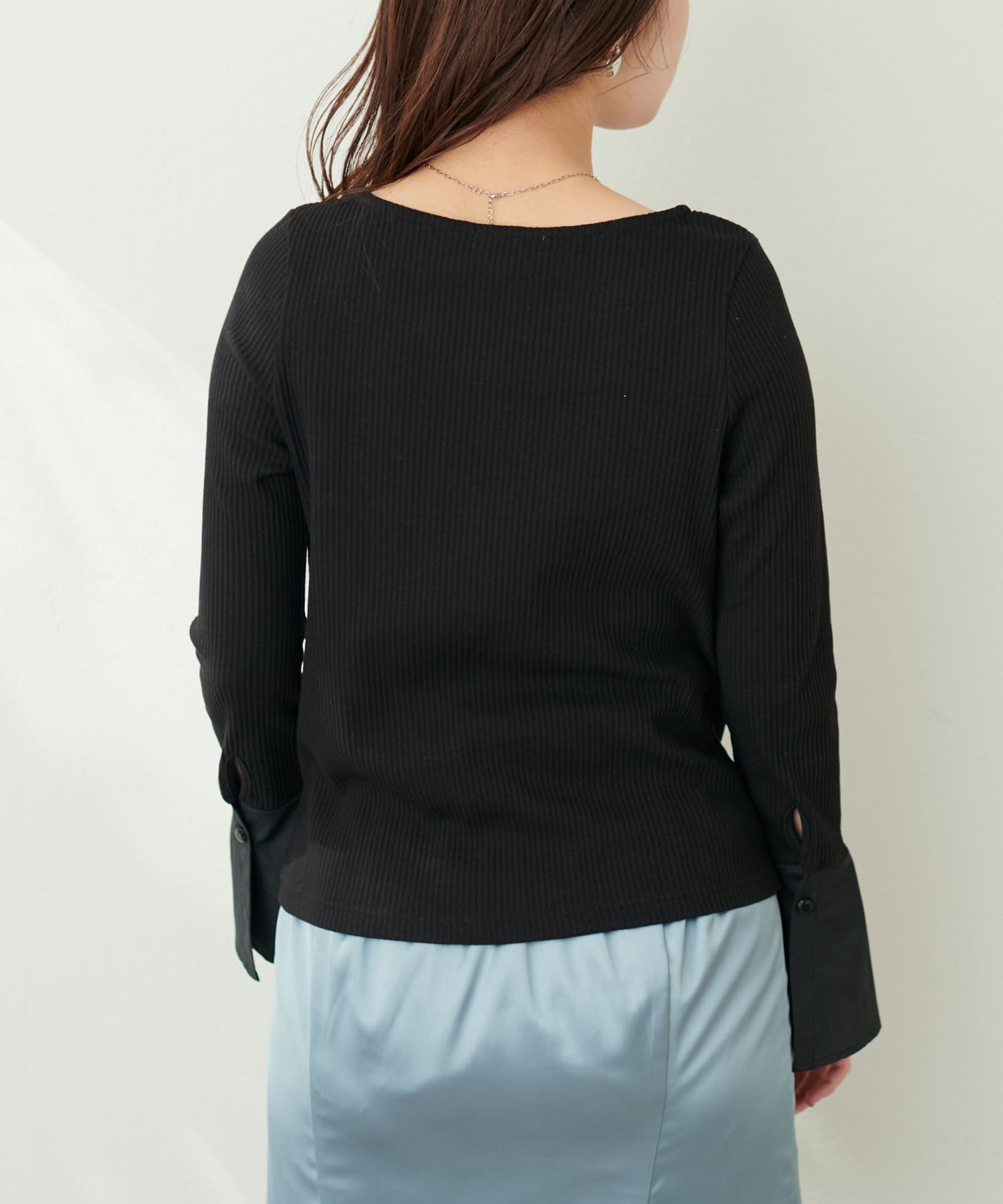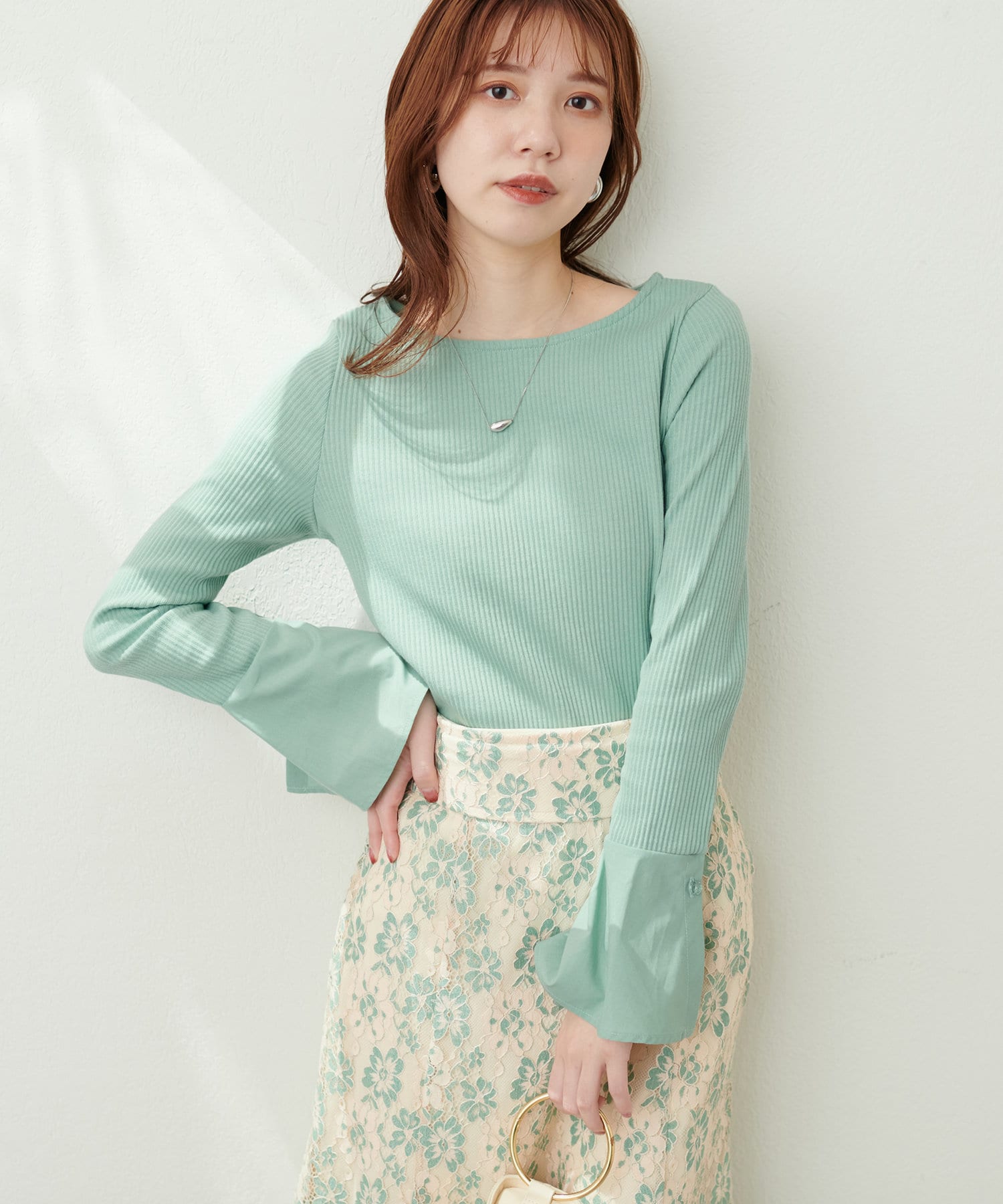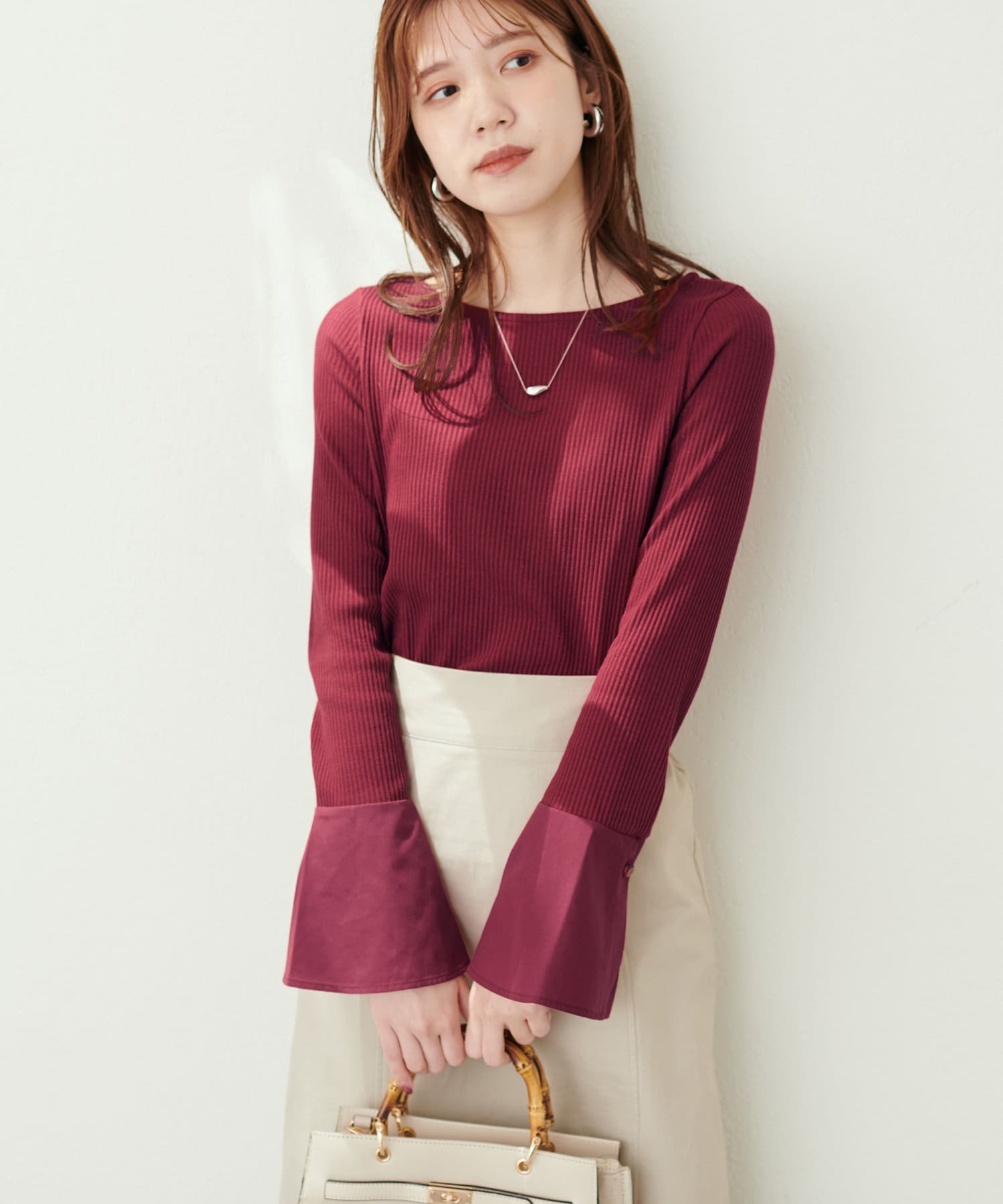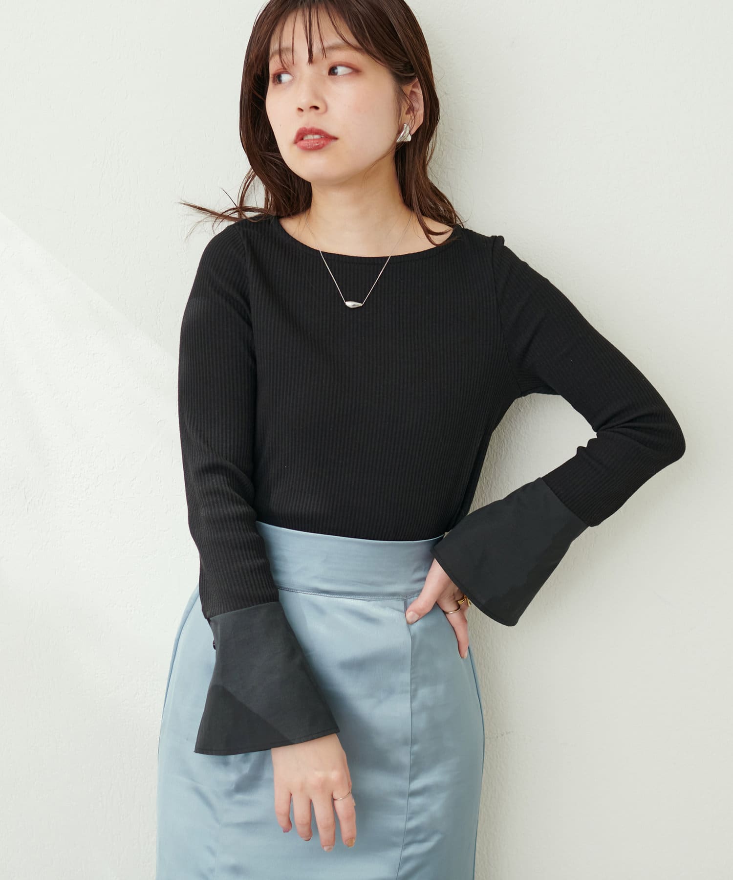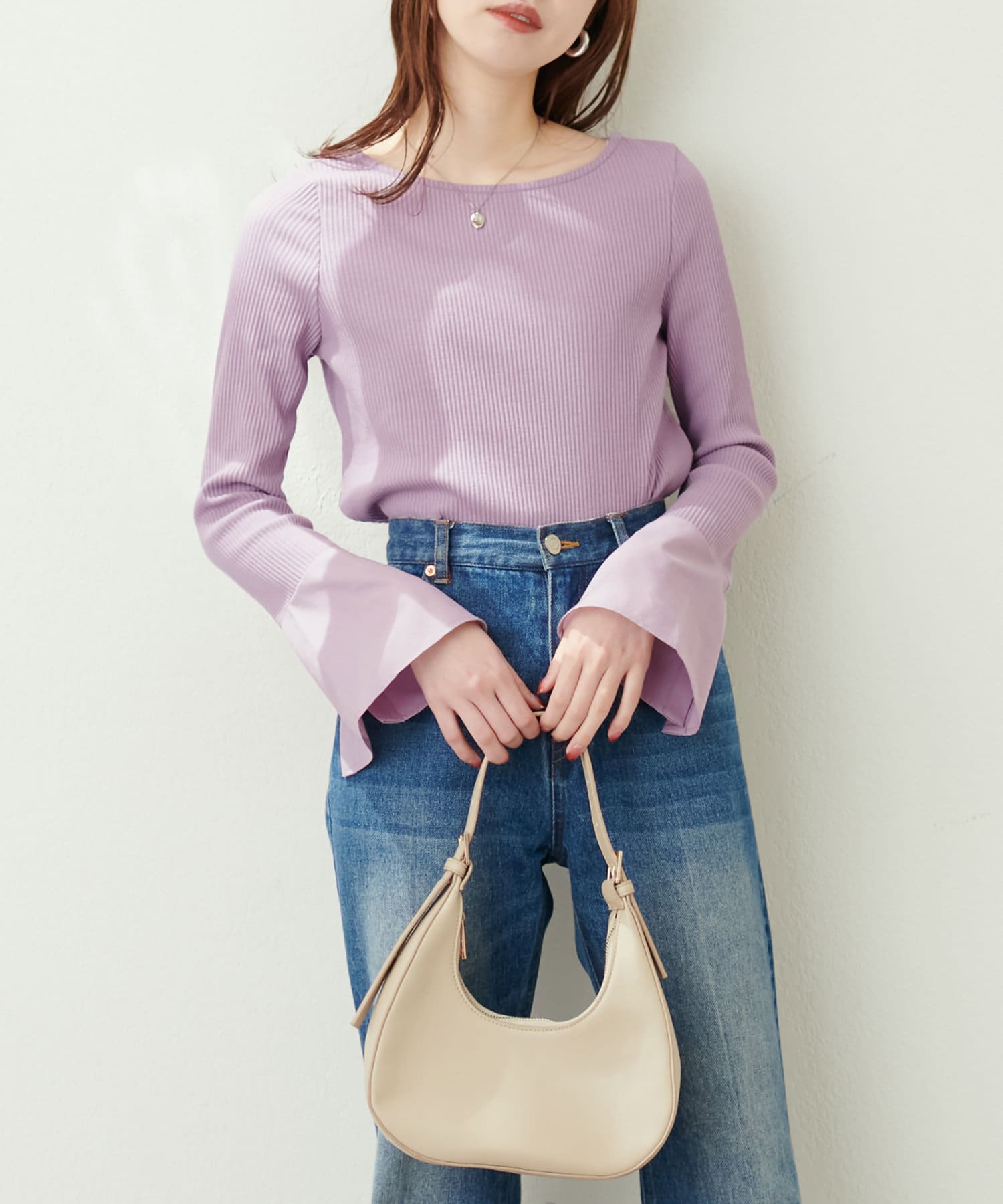 ウォッシャブル/袖口フレア切替テレコプルオーバー