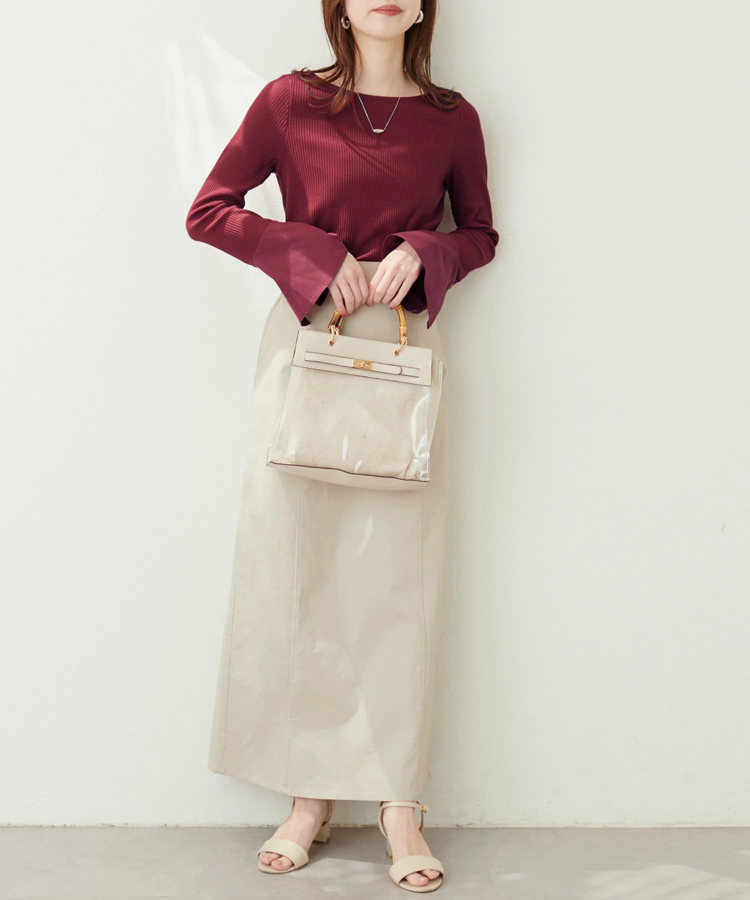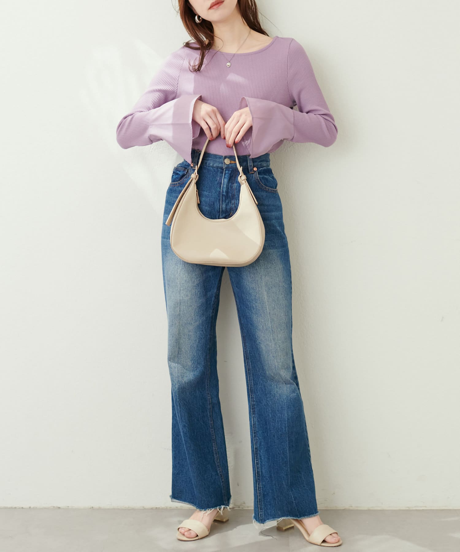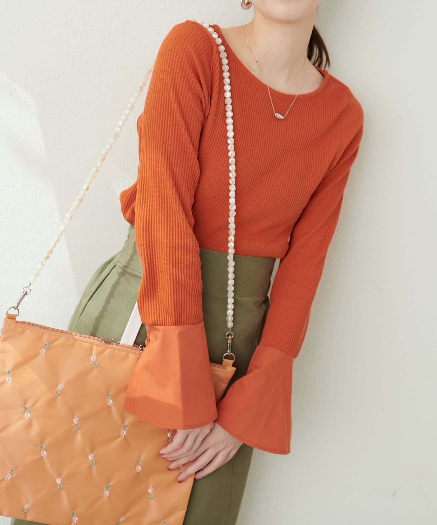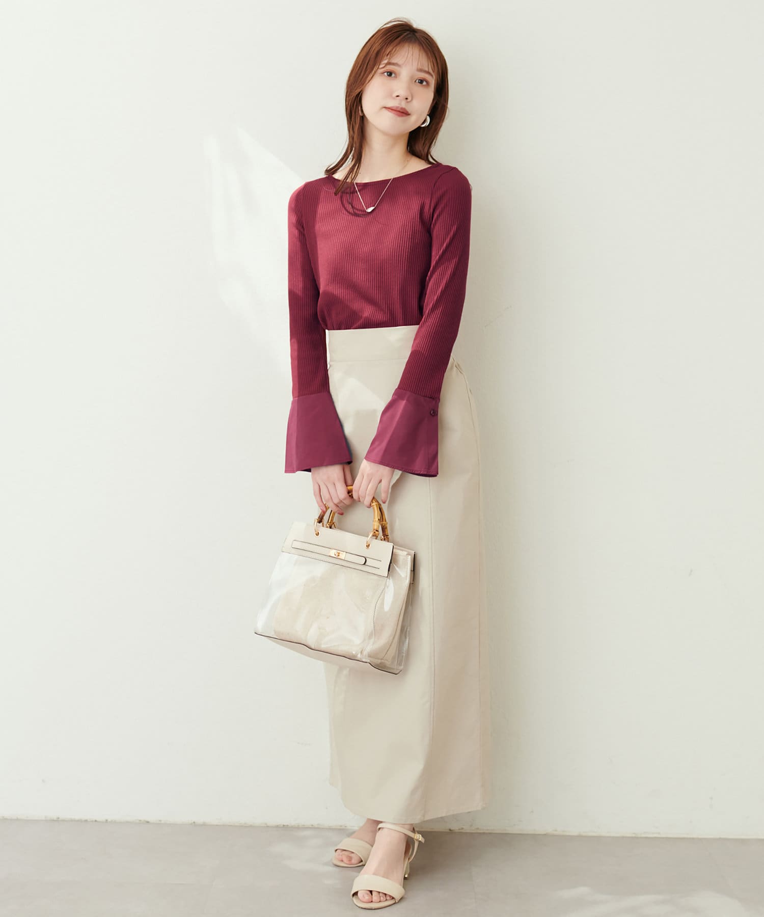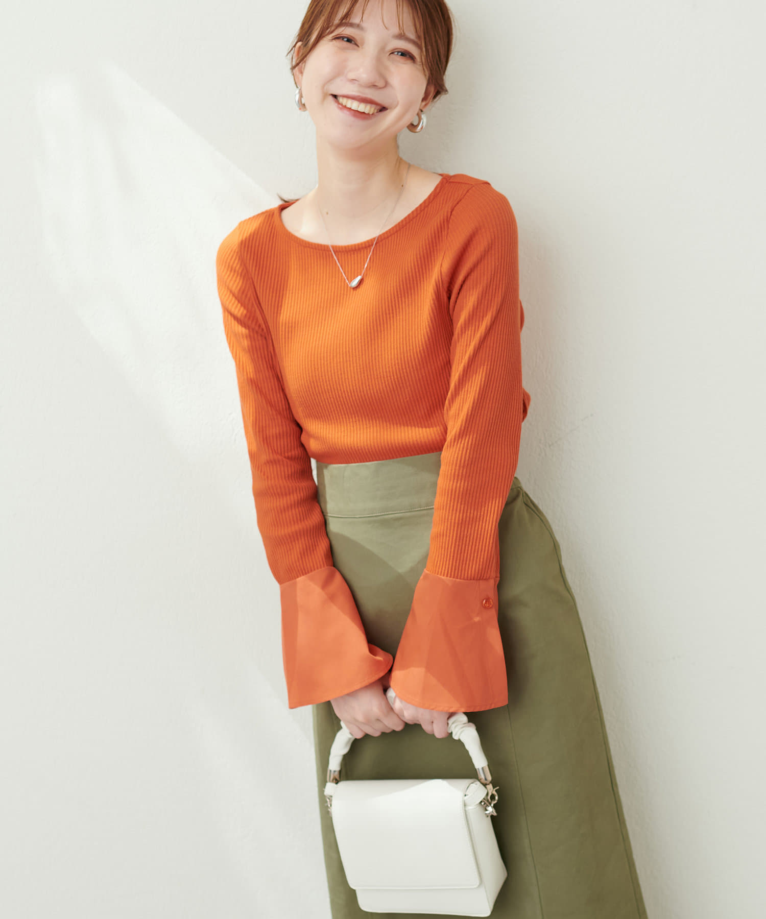 ウォッシャブル/袖口フレア切替テレコプルオーバー