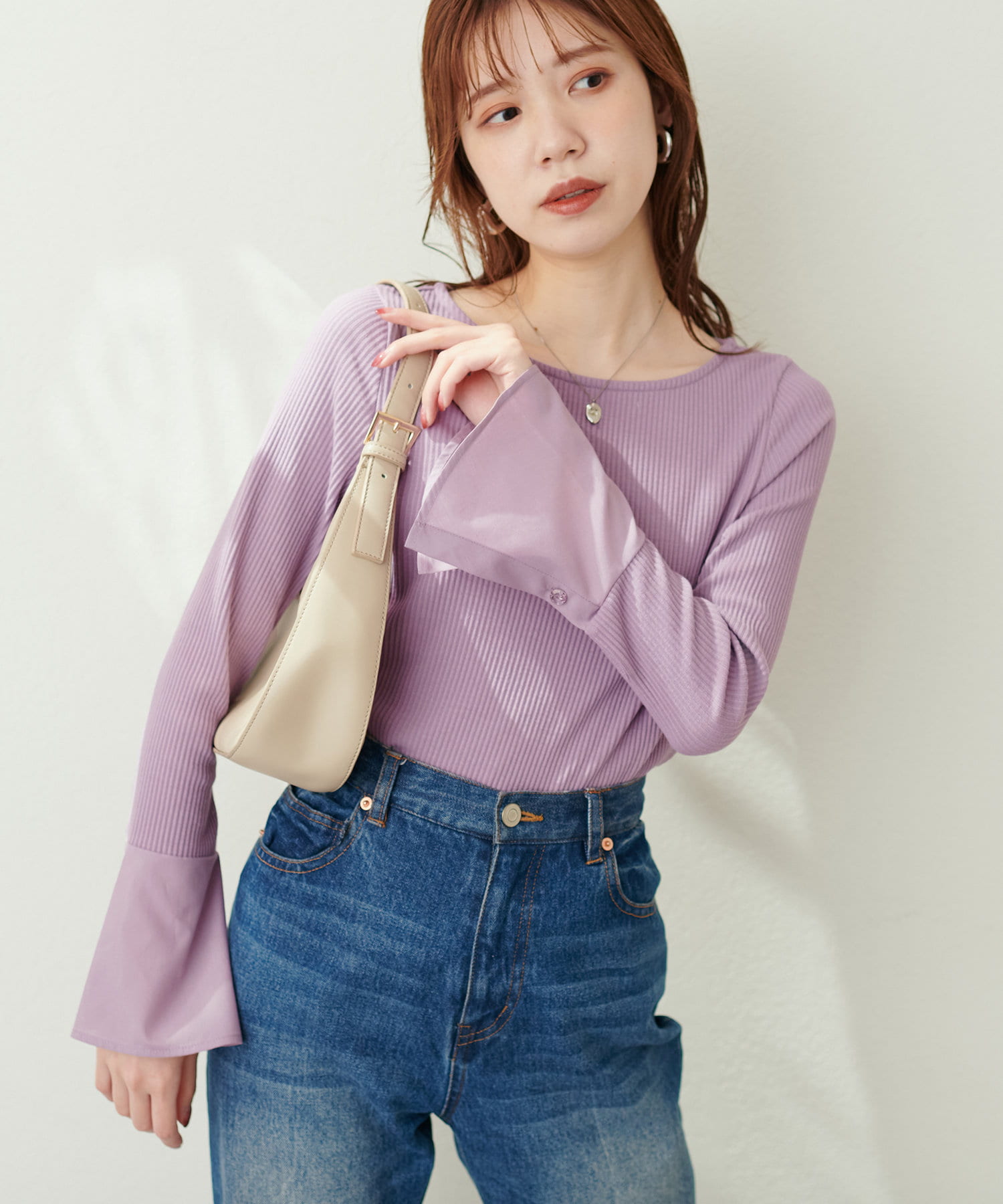 肌触りの良いテレコプルオーバーに、トレンド感のあるフレア袖がポイントになったアイテム。