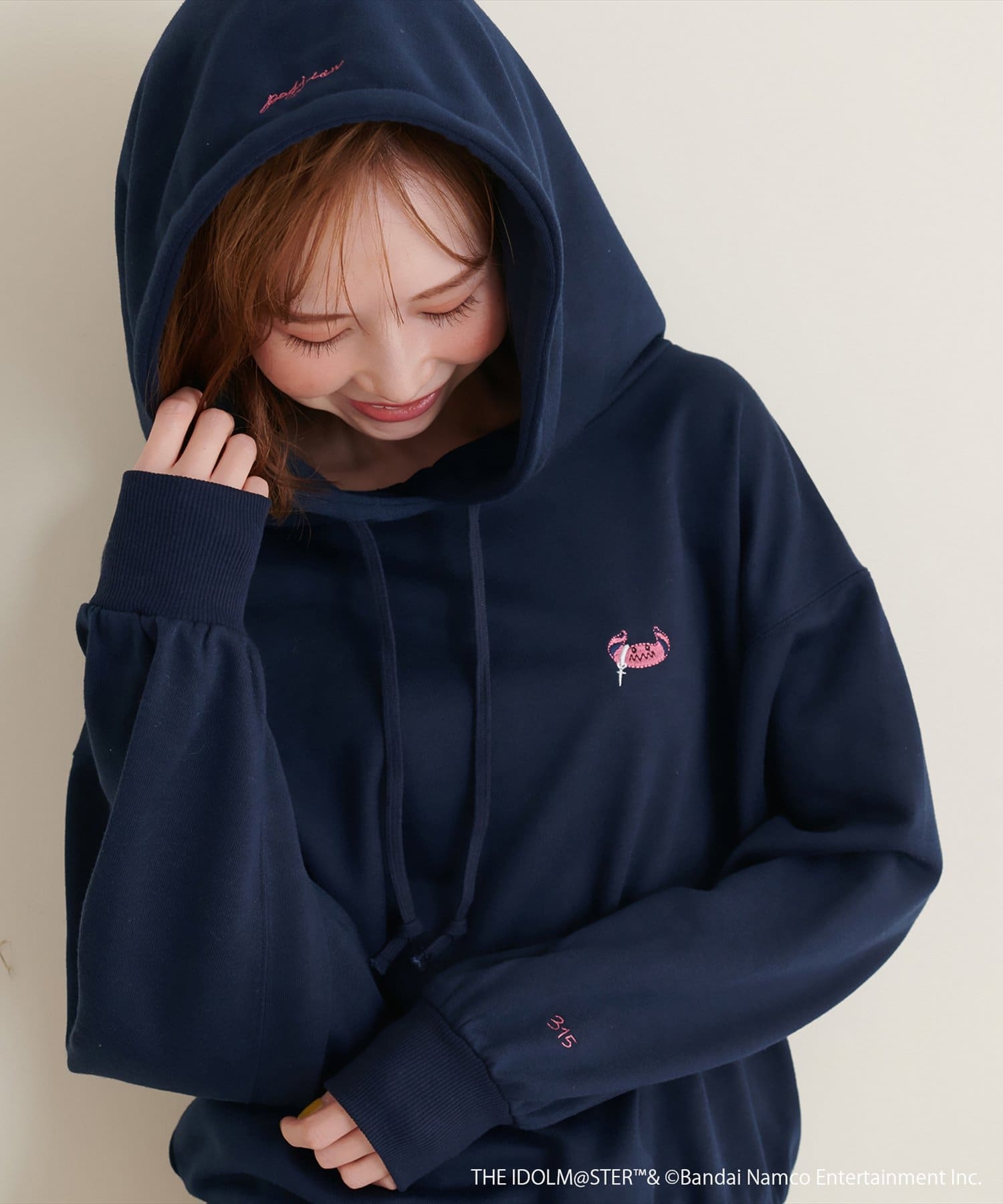 胸元のマスコット刺繍だけでなく、フードや袖口にも315プロダクションにちなんだ刺繍がされているのもこだわりポイント。