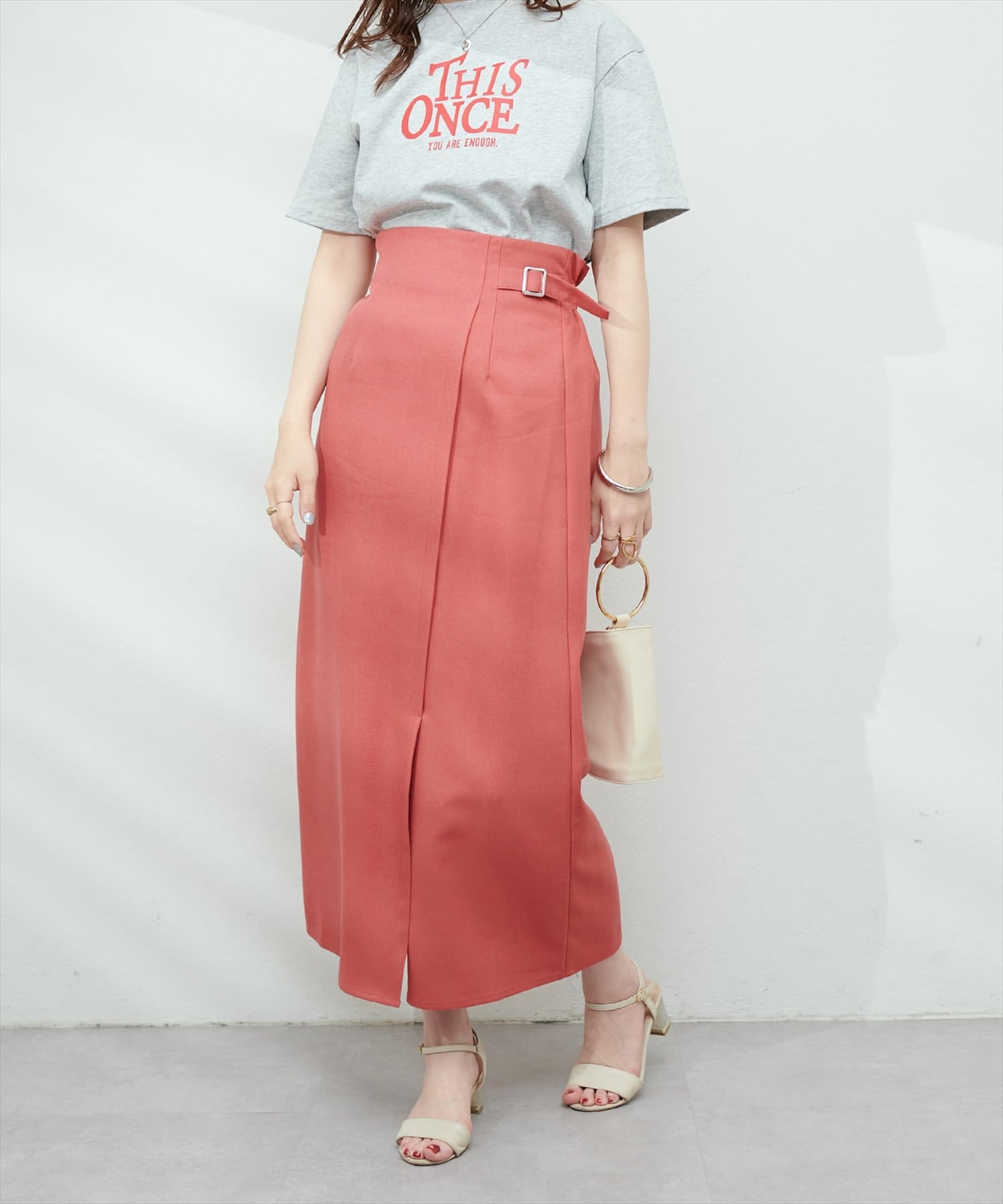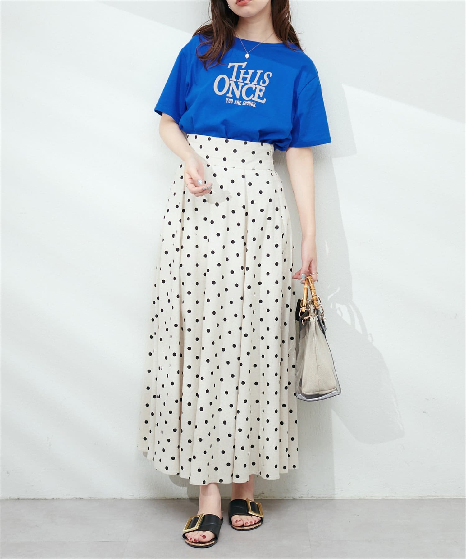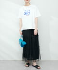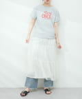 ボリュームのあるスカートと合わせると、大人カジュアルなトレンドコーデが完成します。