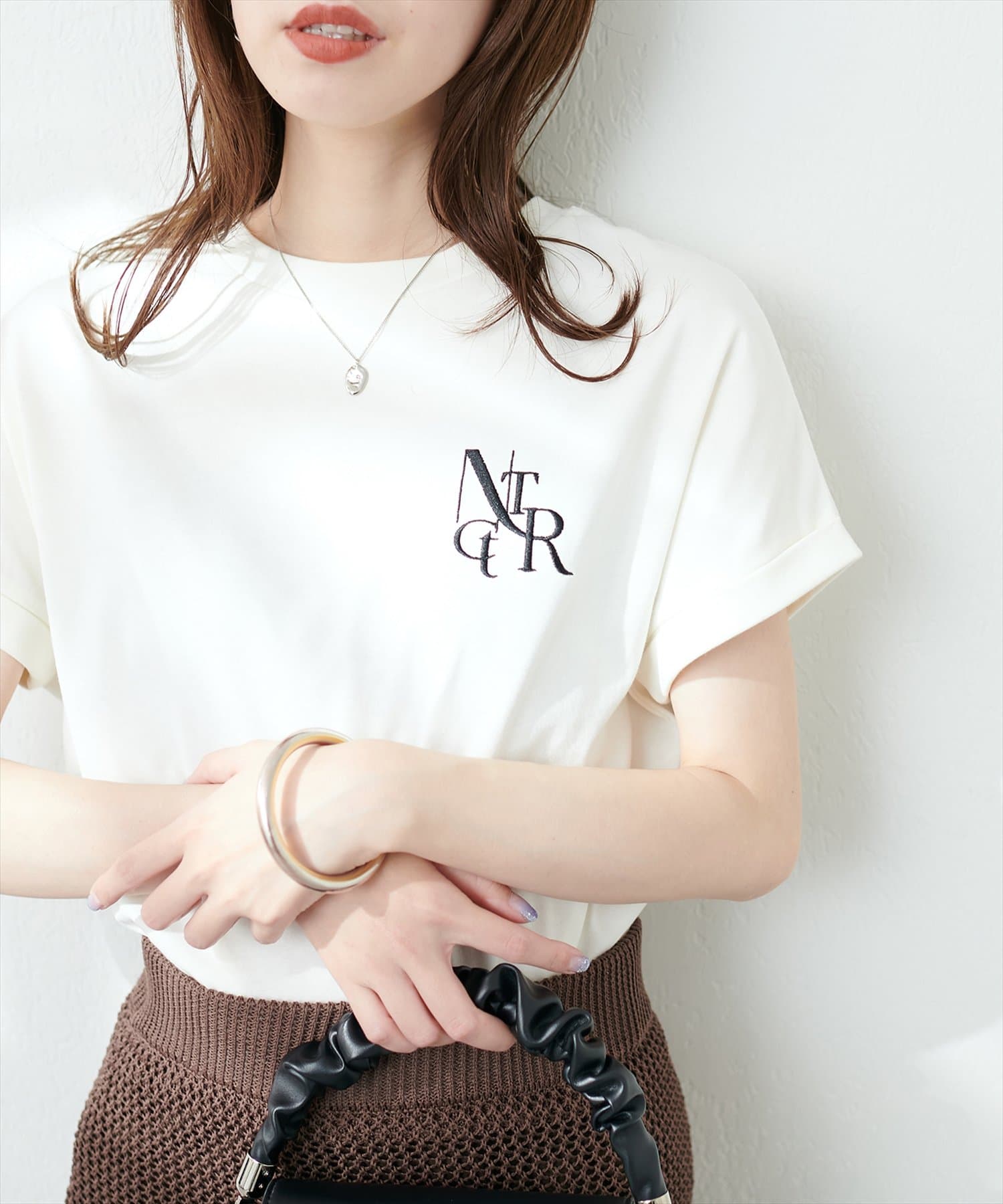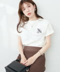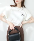 美シルエットなスラックスパンツとも相性が良く、トレンドのハンサムコーデにも似合うロゴを活かしたコーデがおすすめです。