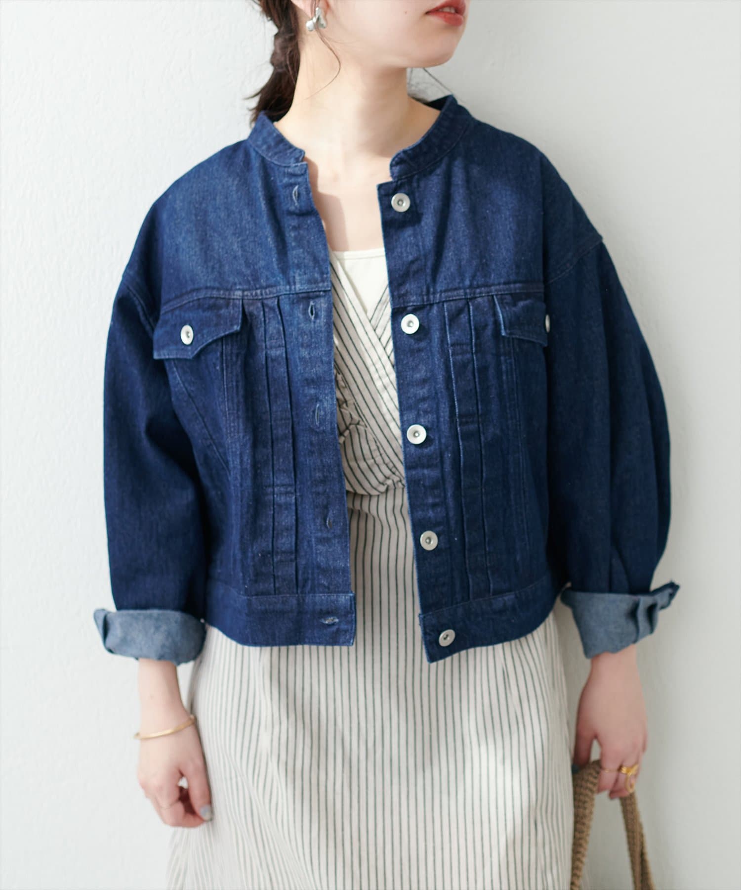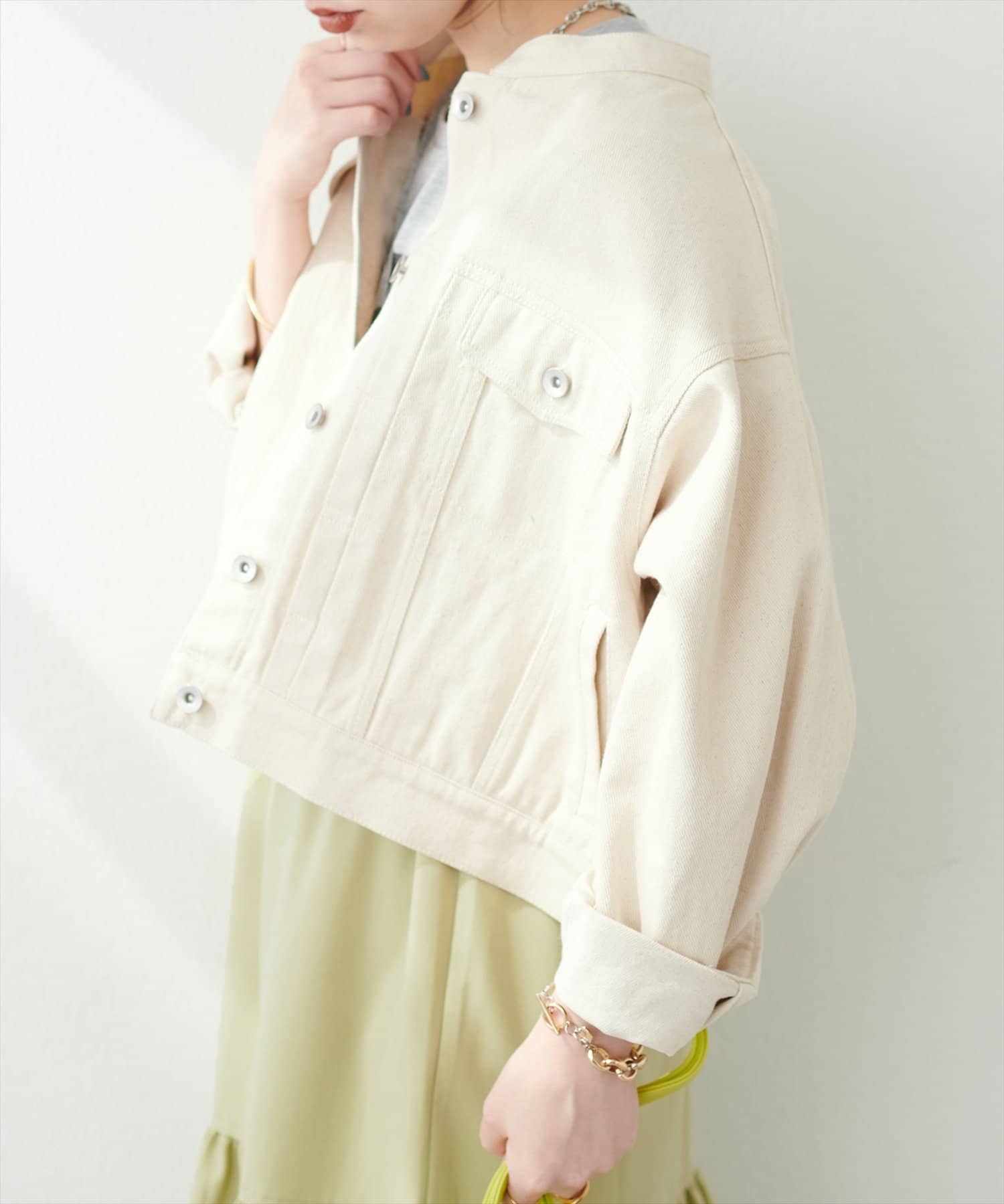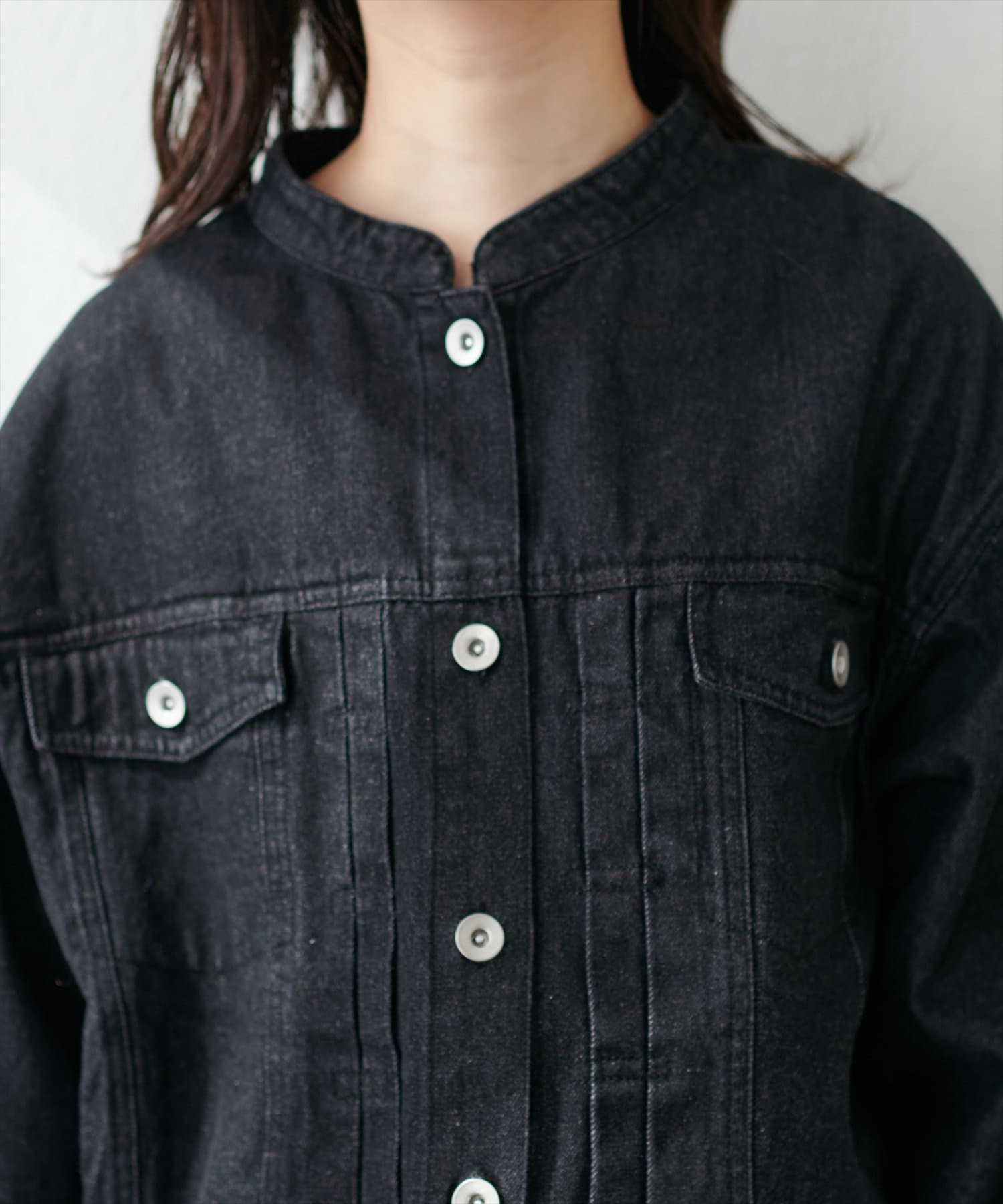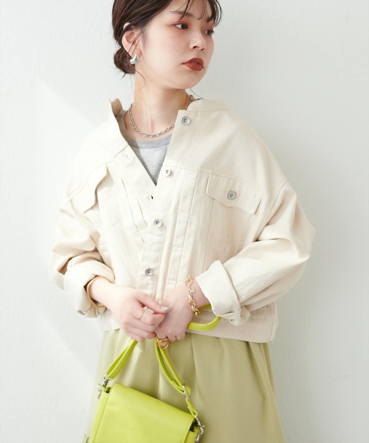 定番のGジャンに、バンドカラーで今っぽさをプラス。