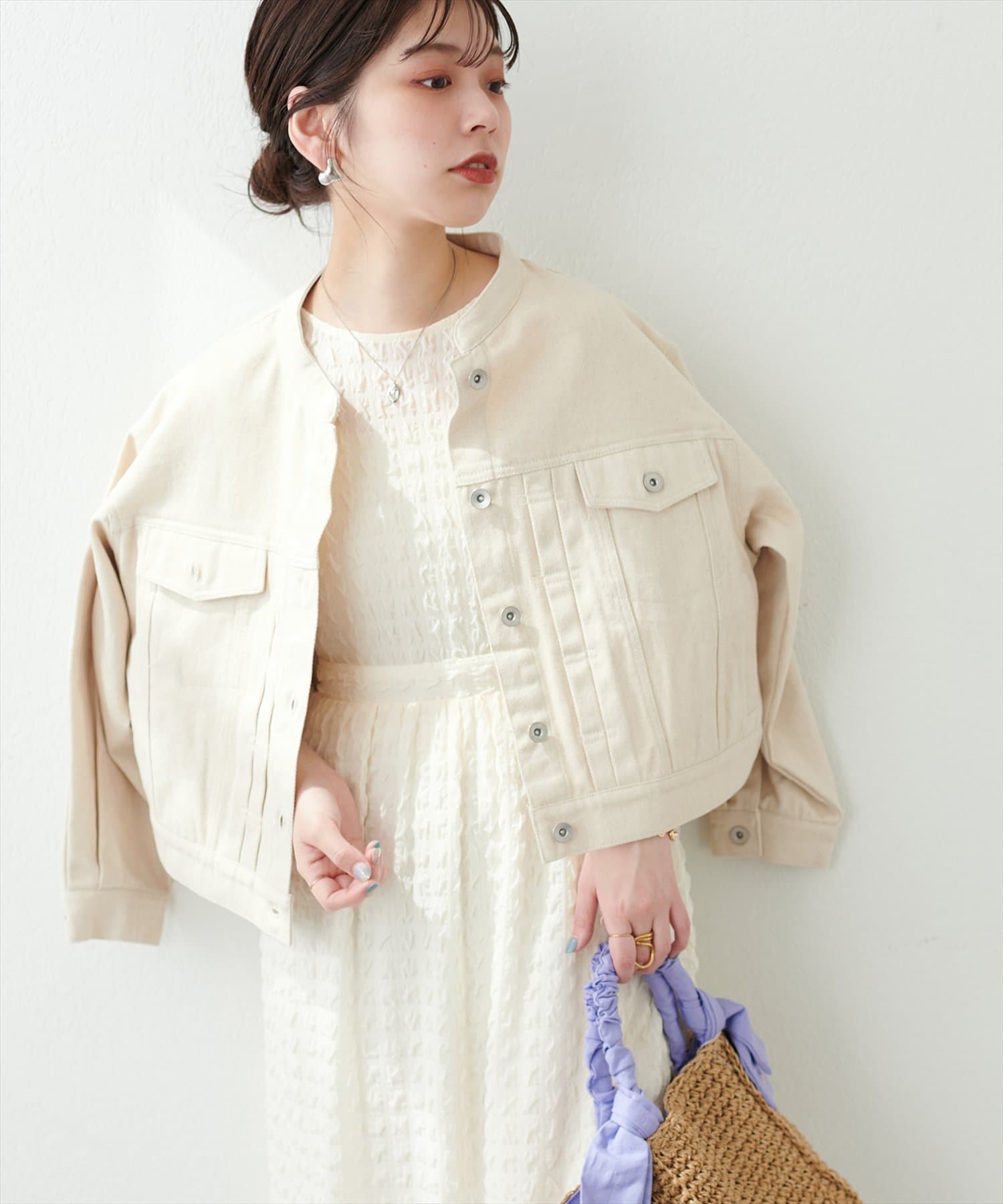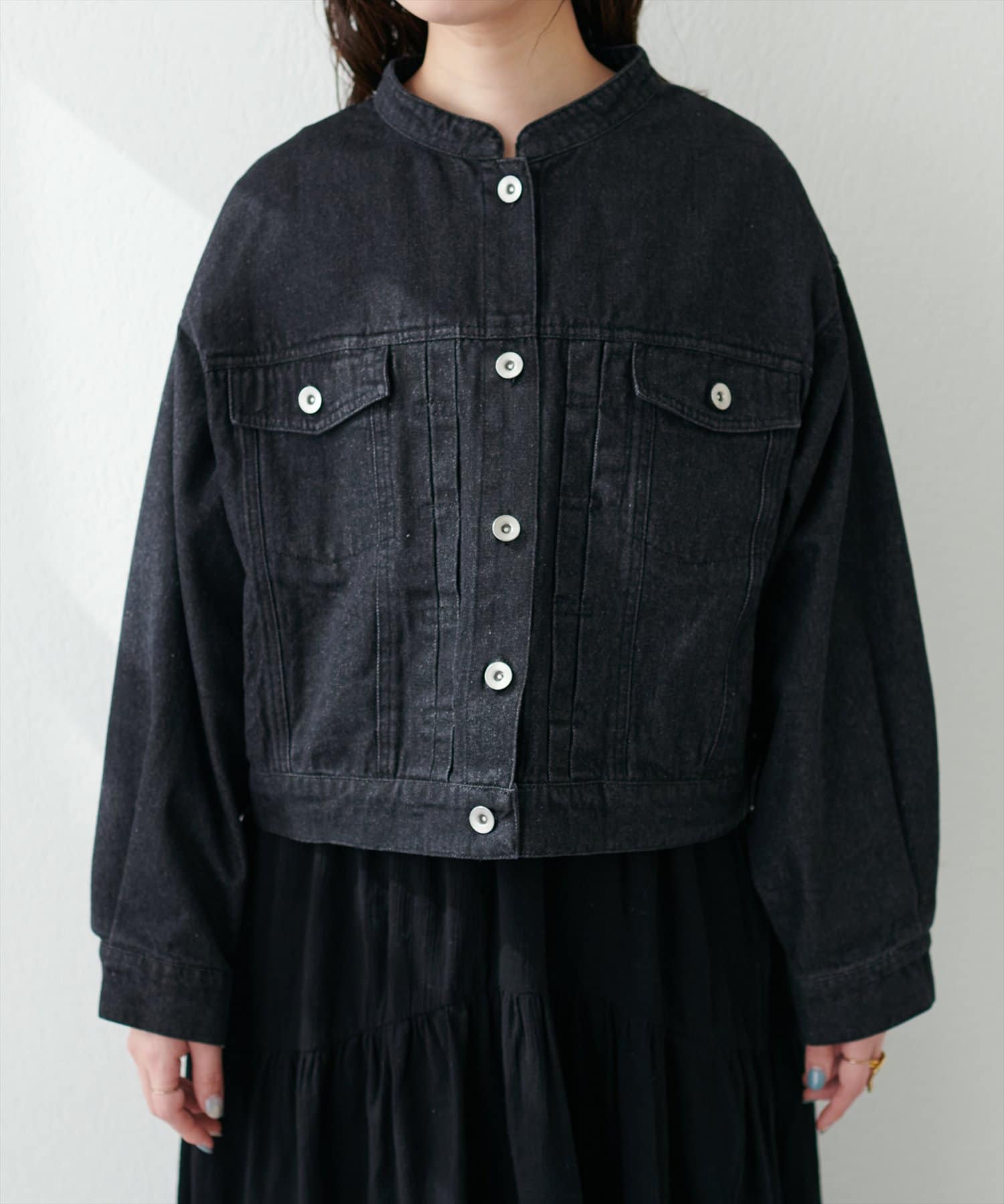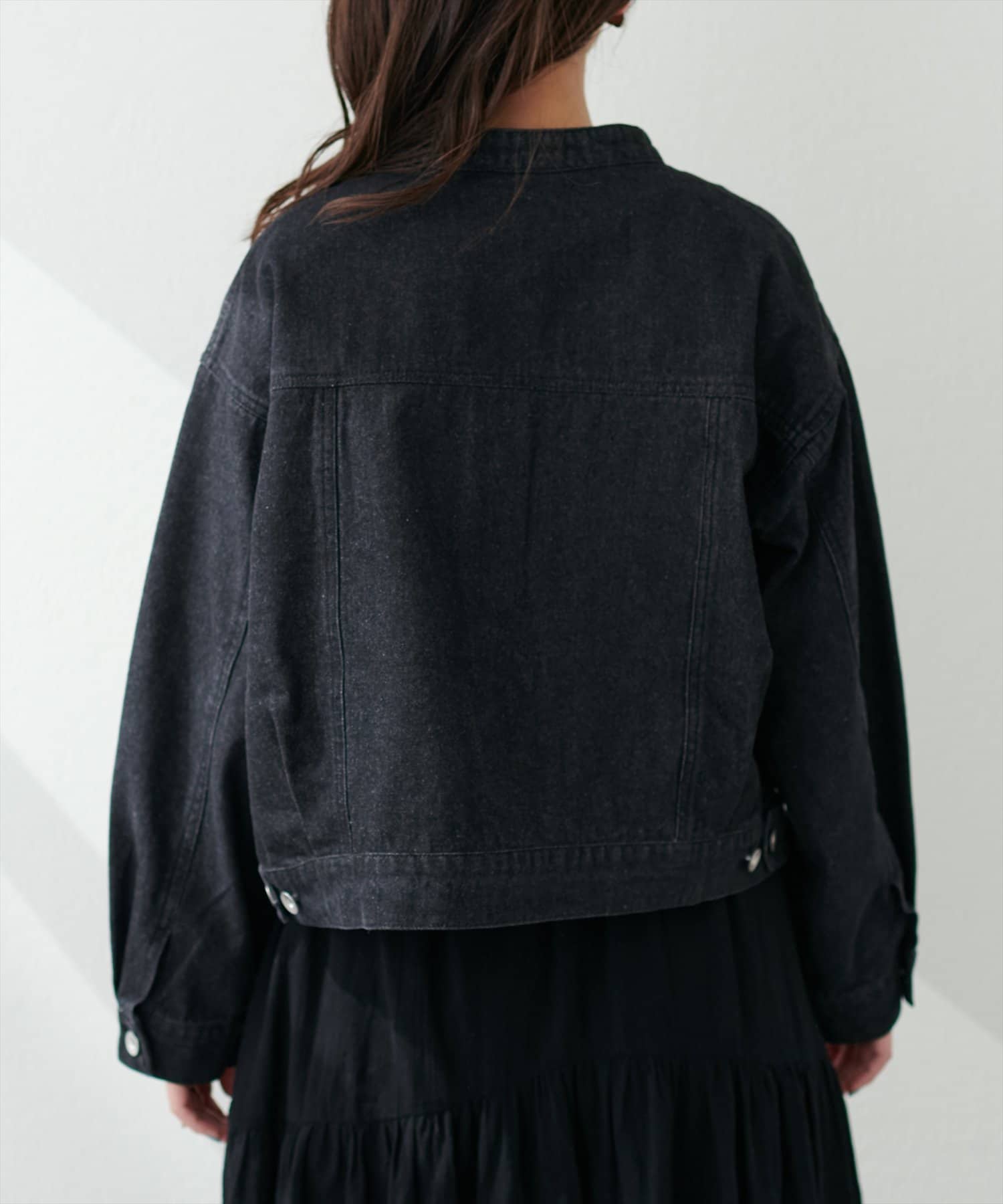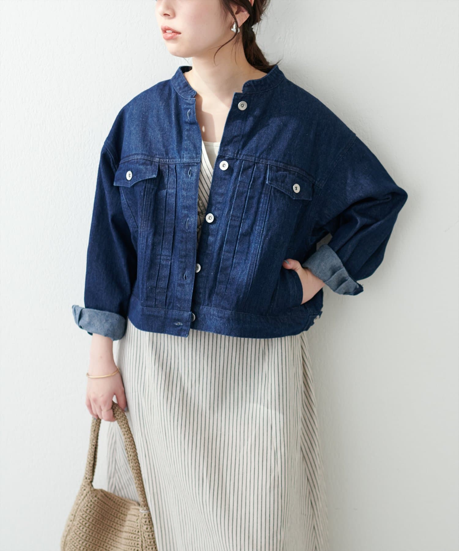 定番のGジャンに、バンドカラーで今っぽさをプラス。
