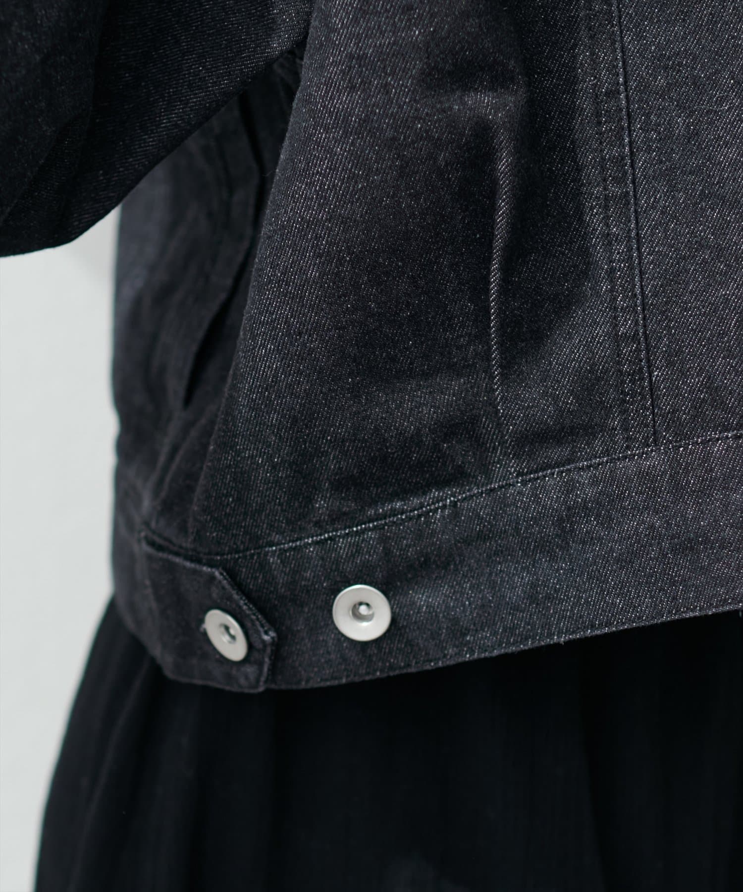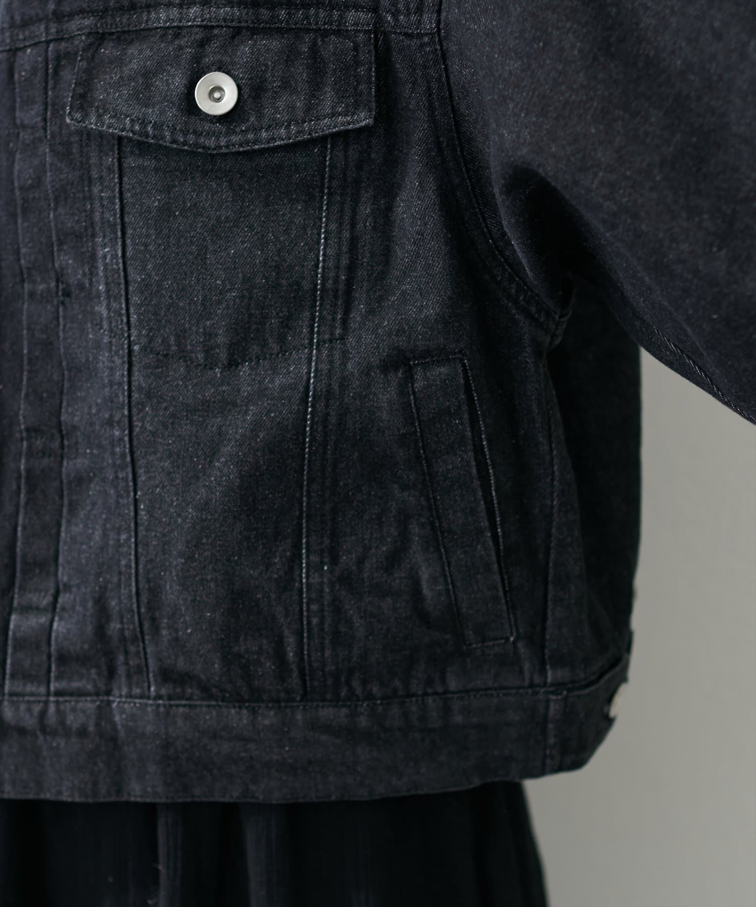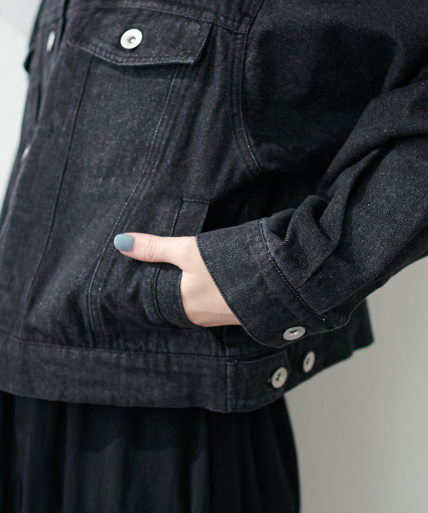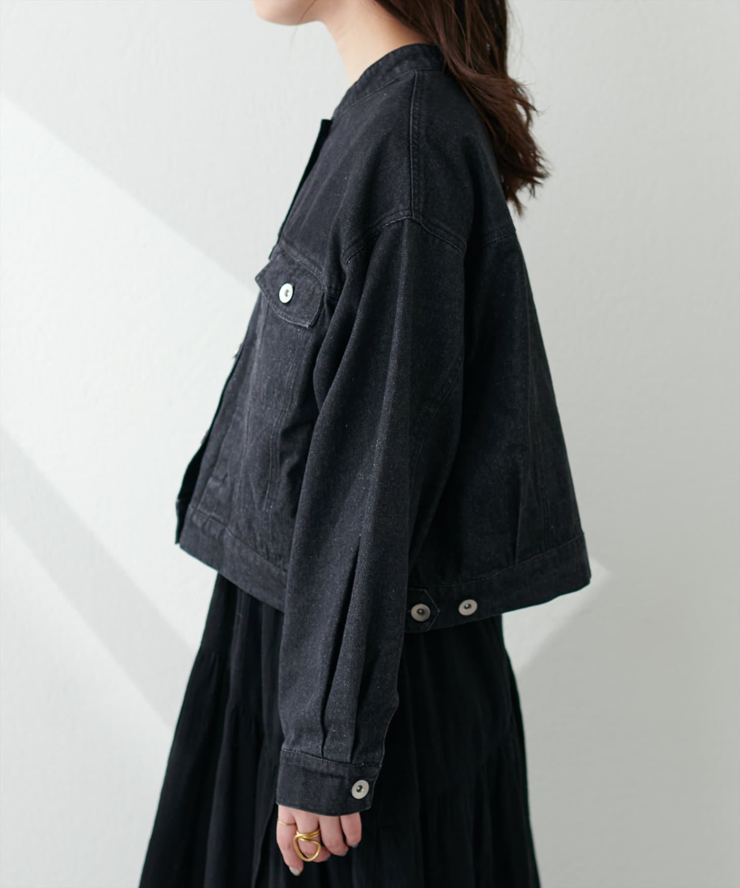 定番のGジャンに、バンドカラーで今っぽさをプラス。