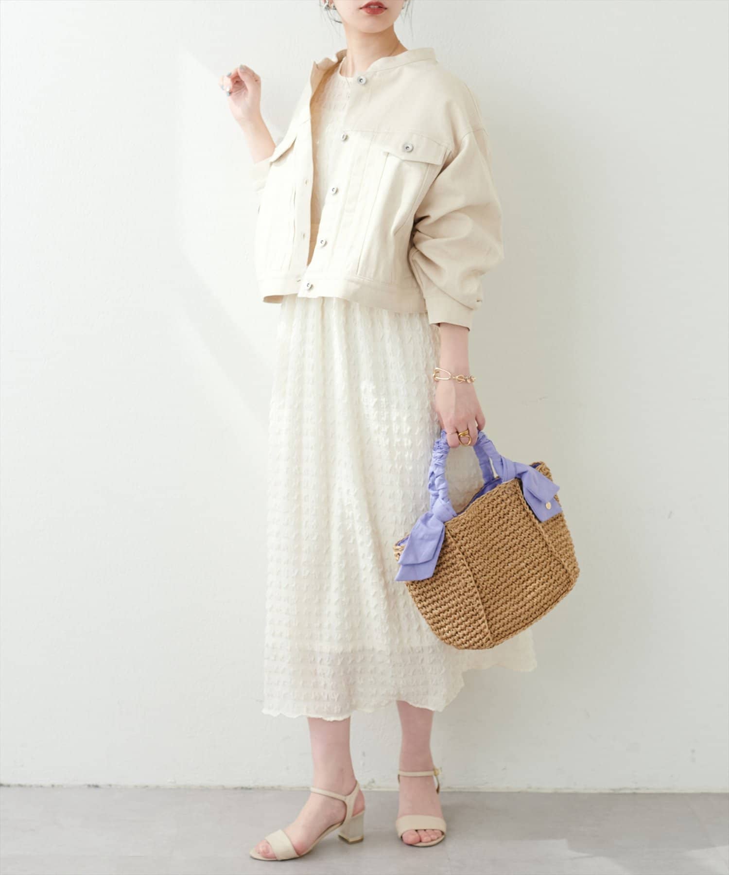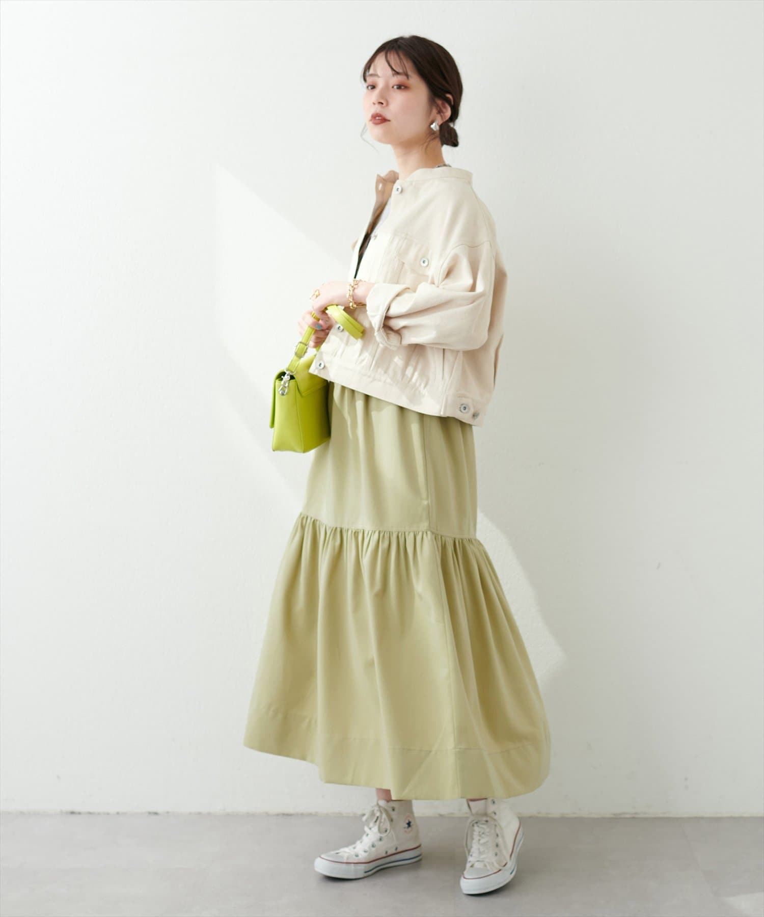 マーメイドシルエットやIラインなど、女性らしい綺麗めアイテムに敢えてラフに羽織って頂くと、