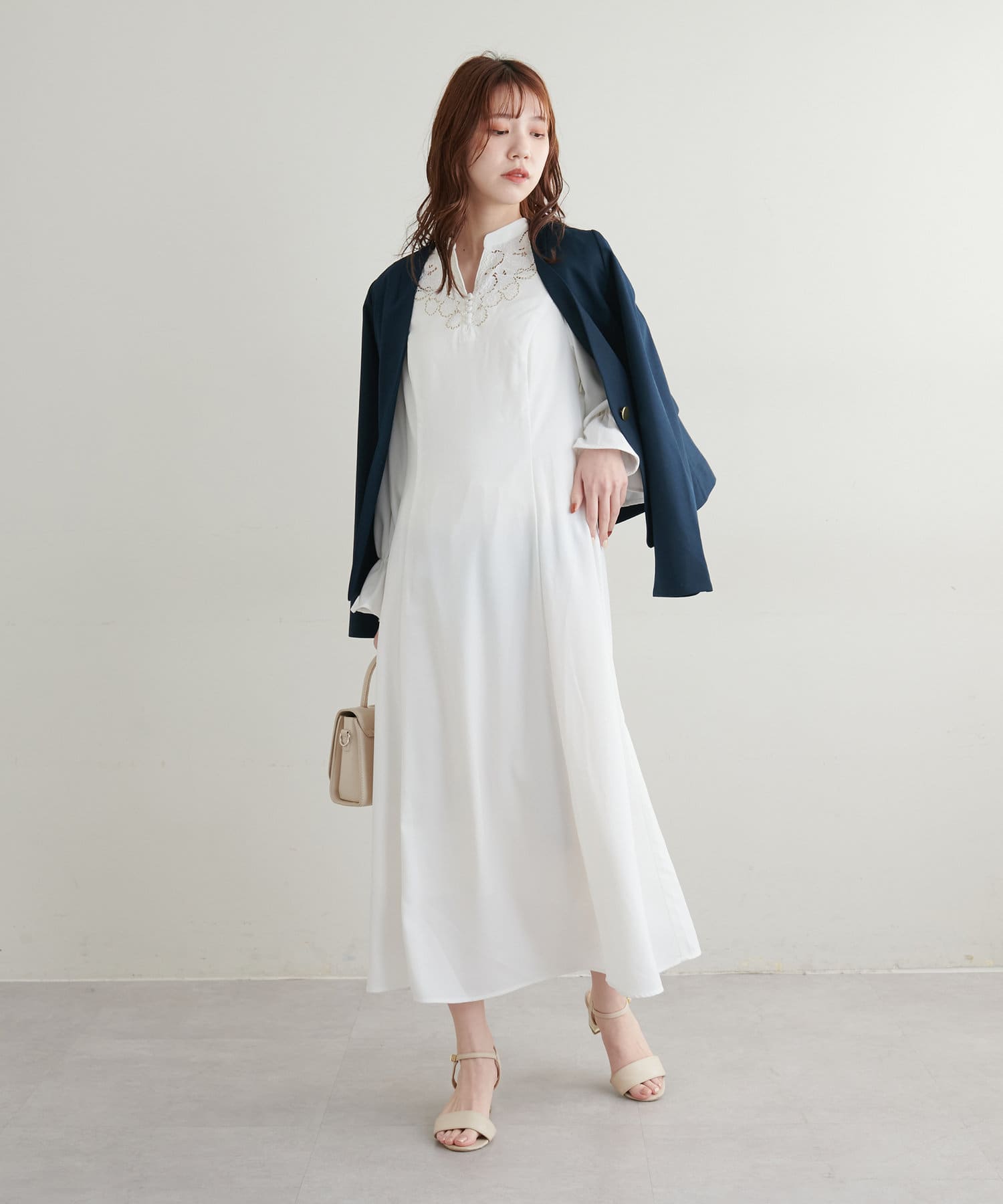 カジュアルダウンさせたインナーやブラウス、ワンピースと合わせることでデイリー使いも可能です。