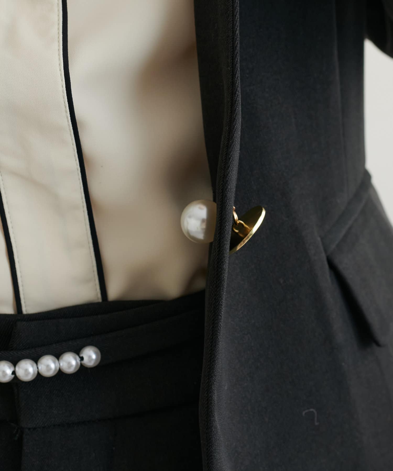 パールと金釦のリバーシブルでおしゃれさも忘れないデザイン。