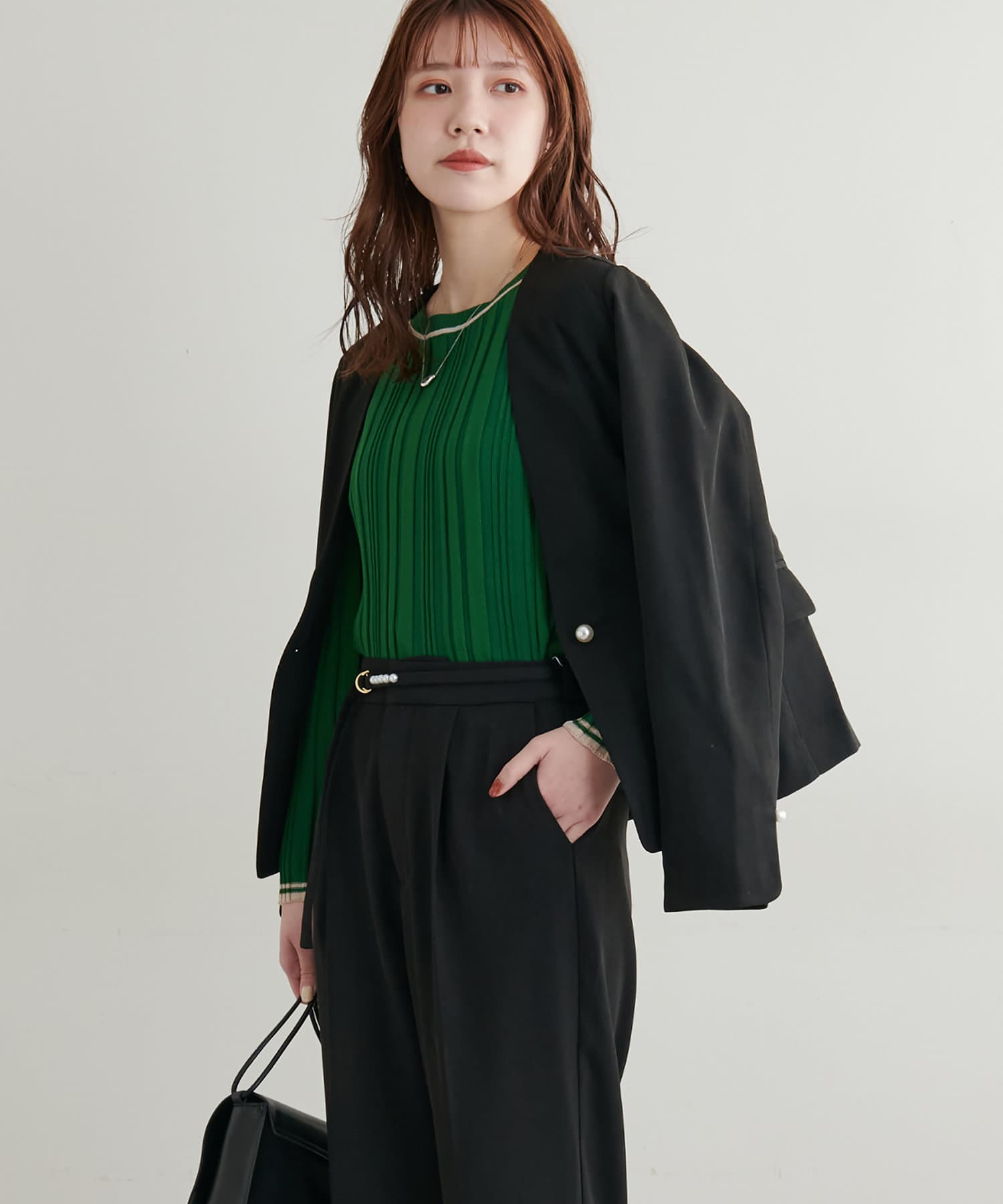 同素材のパンツ(0331020090)と合わせてオフィスにはもちろんのこと、