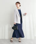 タイトなボトムスと合わせて、ジャケットとのバランスを
