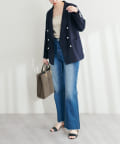 ベーシックながらパール釦が際立つテーラージャケット
