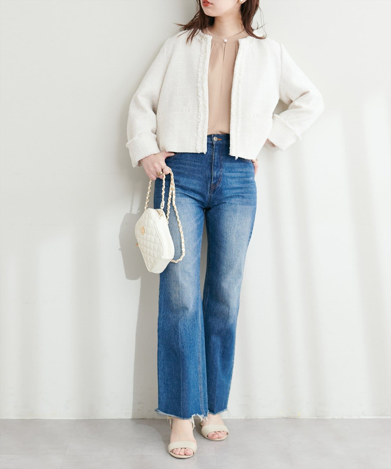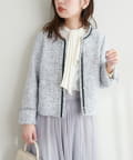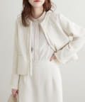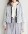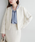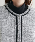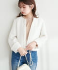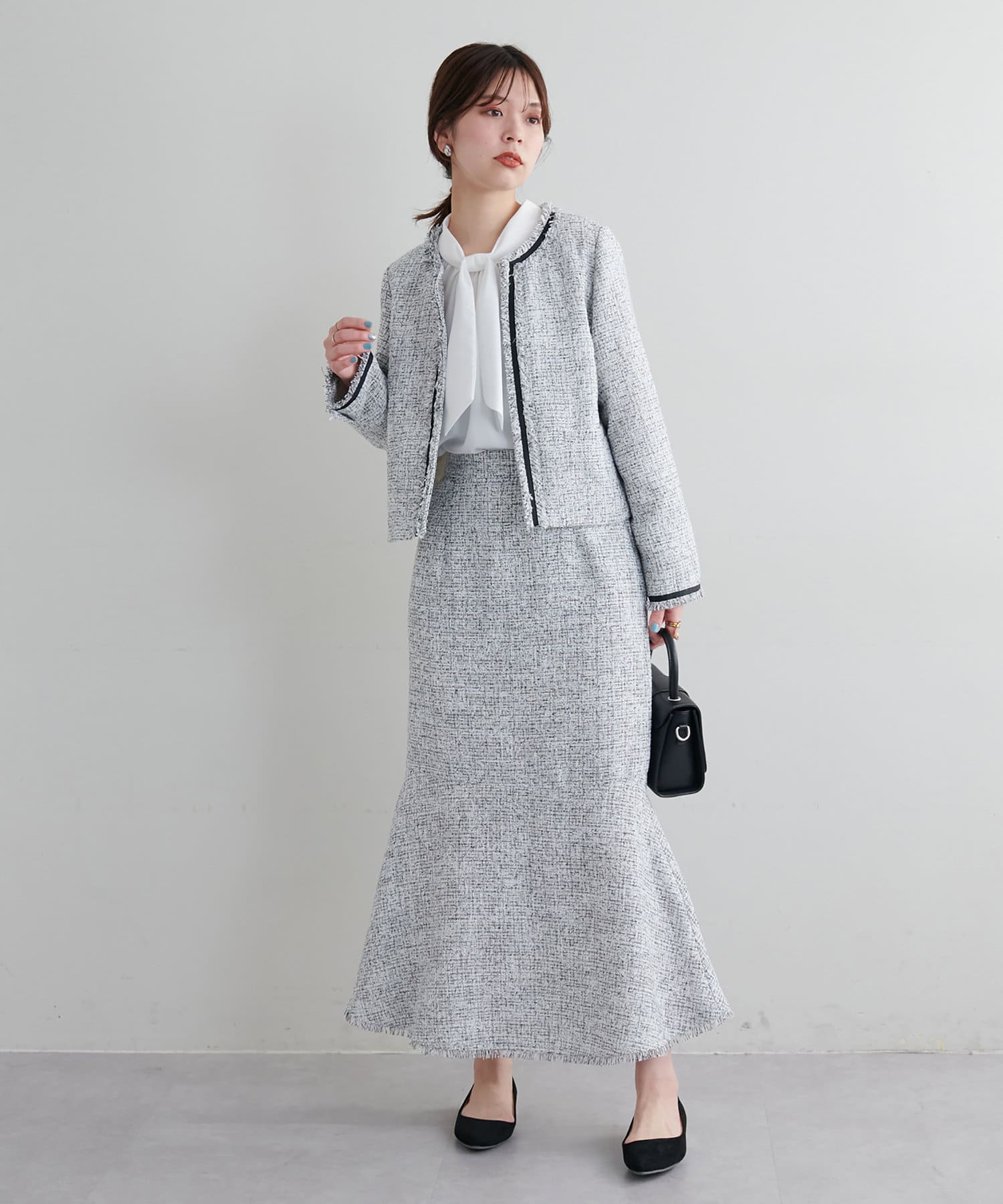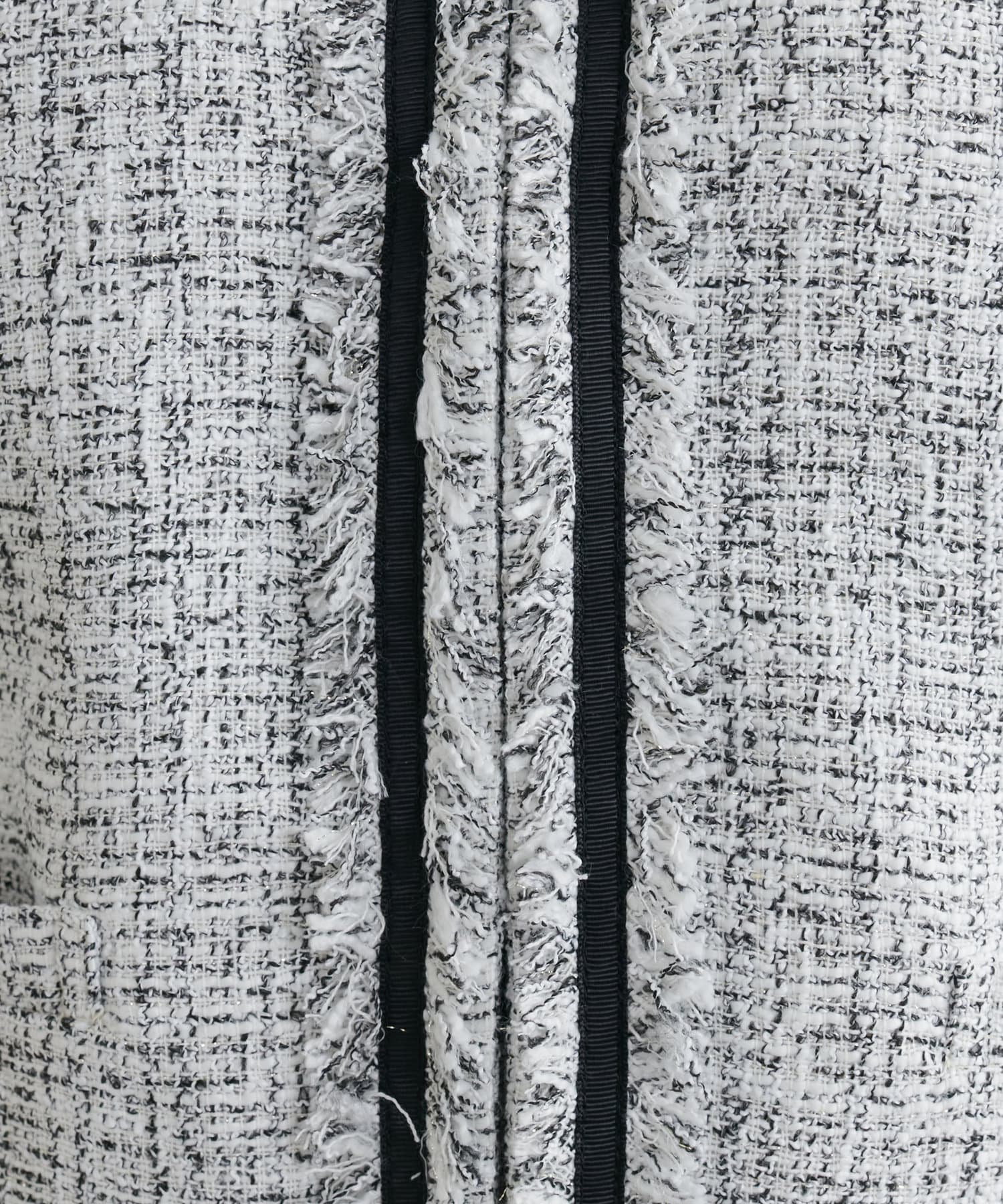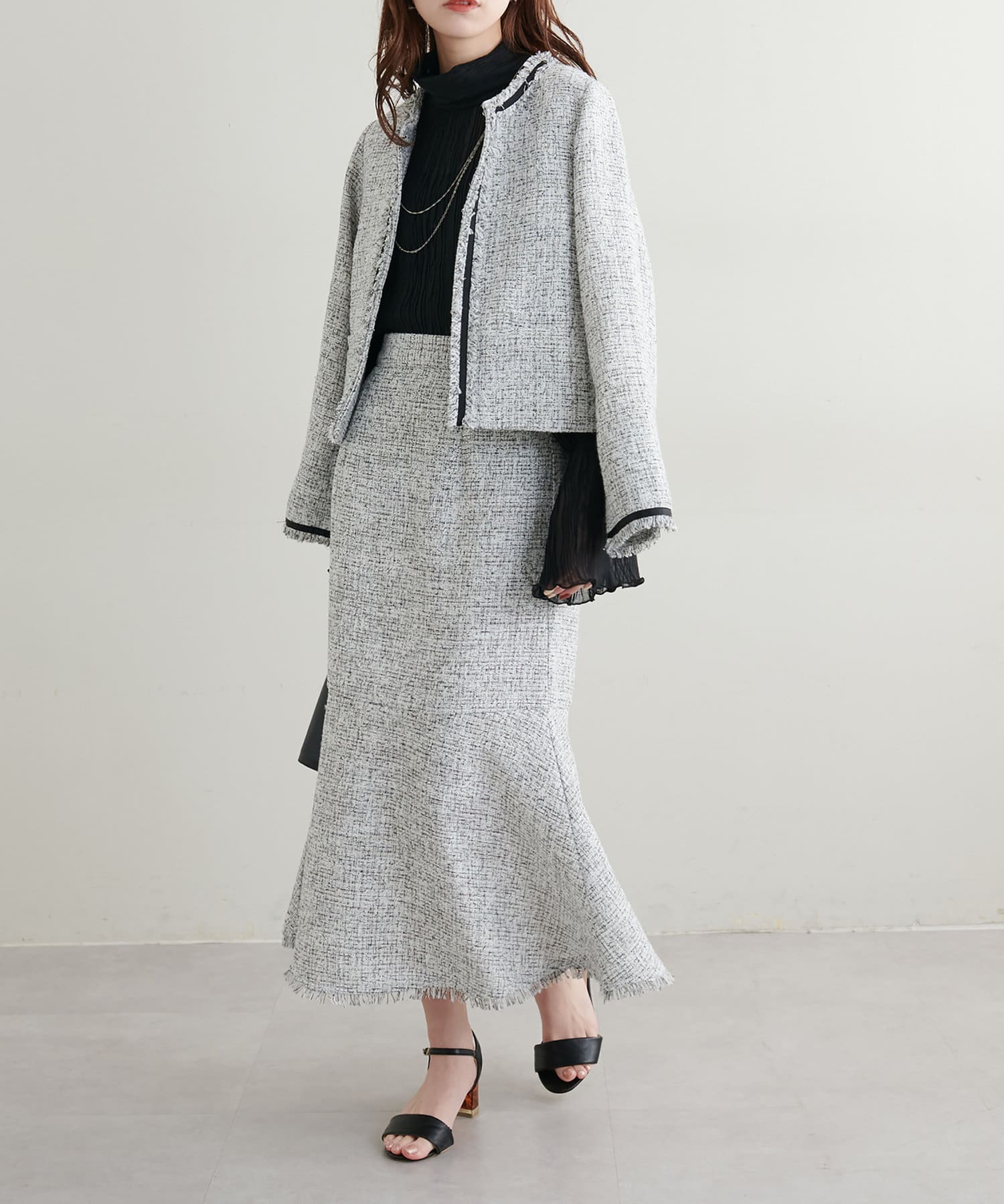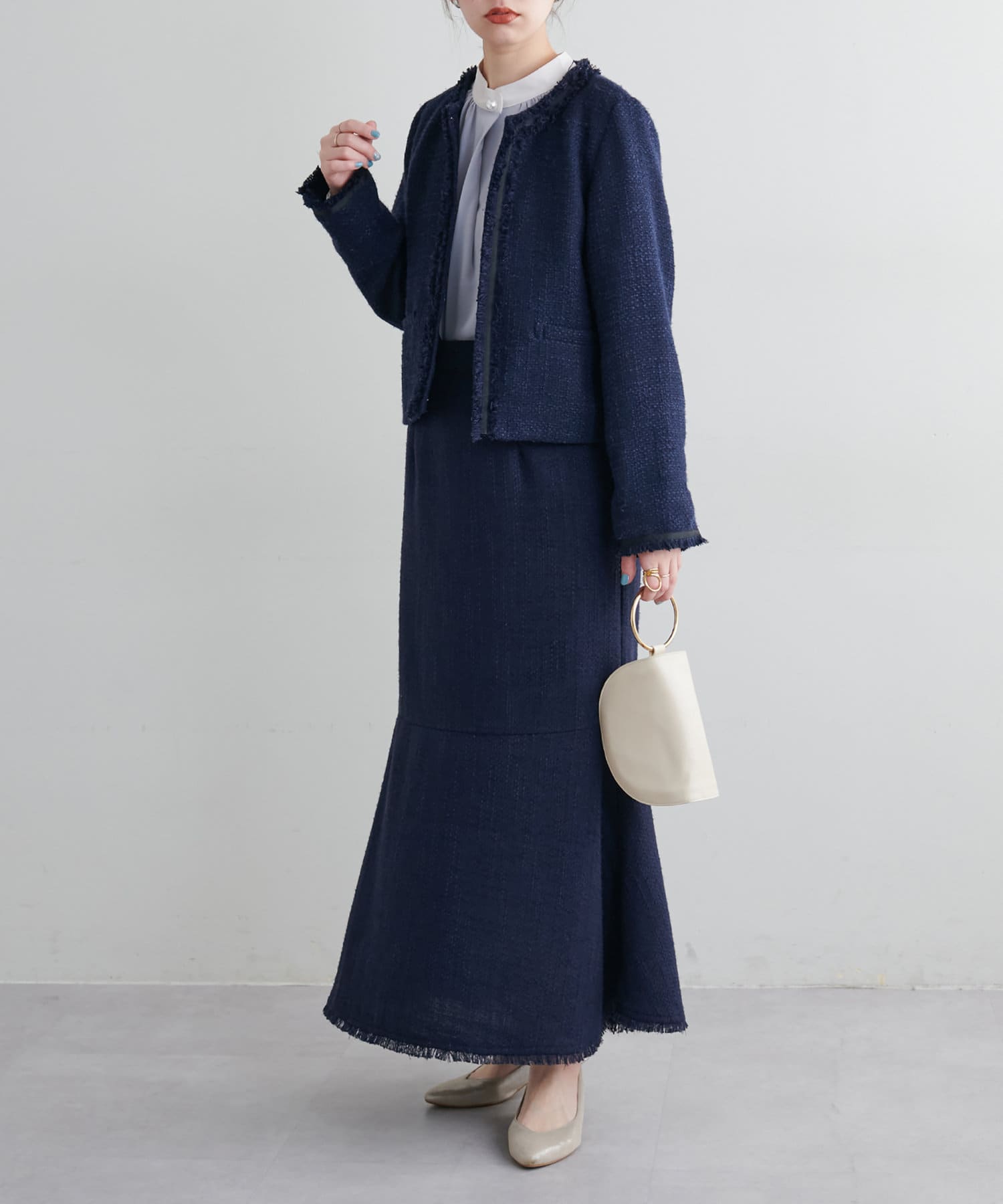 ハレの日/セットアップ着用可/ノーカラーフリンジツイードジャケット