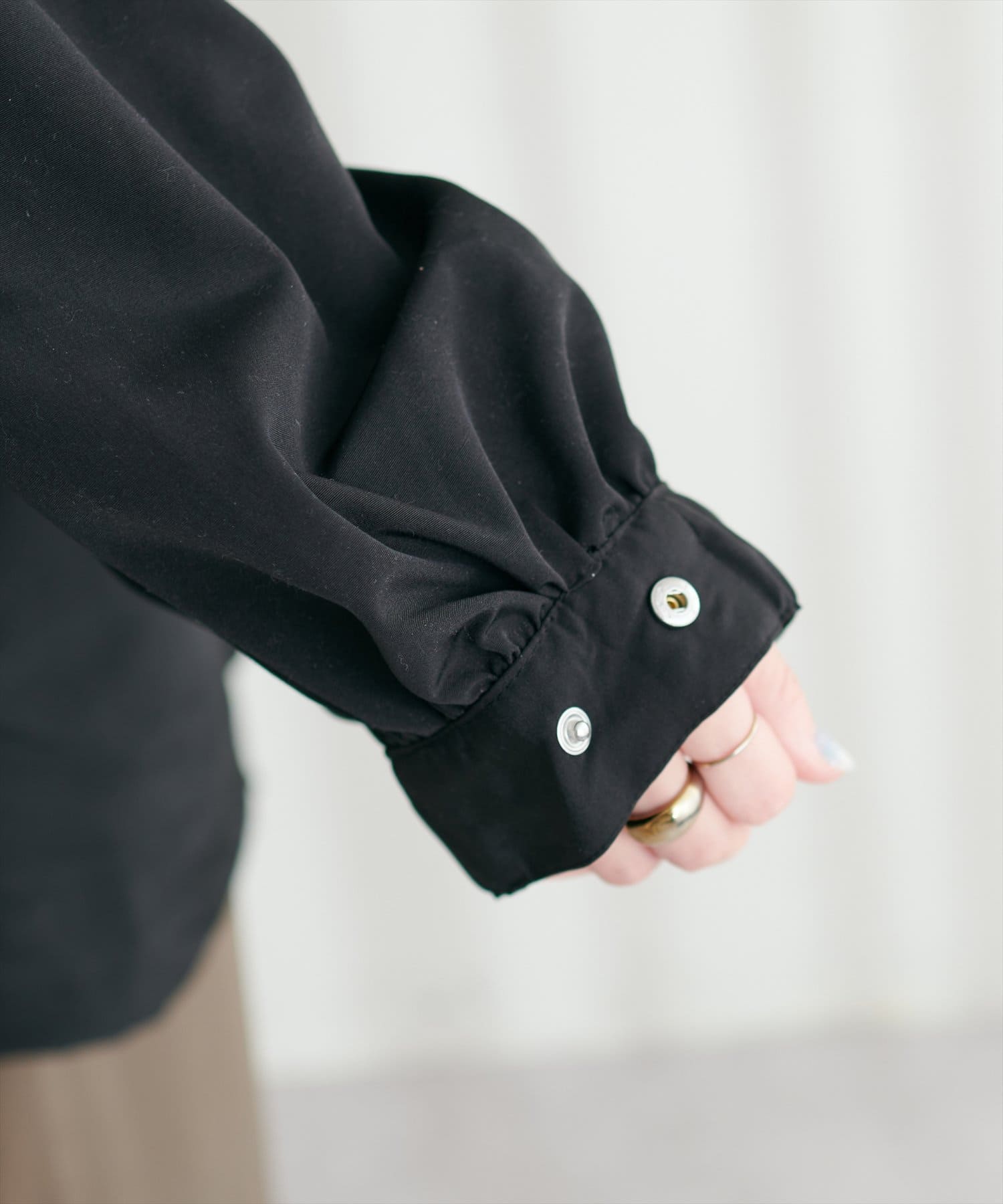 幅広いボトムに合わせやすい程よい丈感で、ドロストデザインのウエストはきゅっと締めることでフェミニン見え&スタイルアップ効果も◎