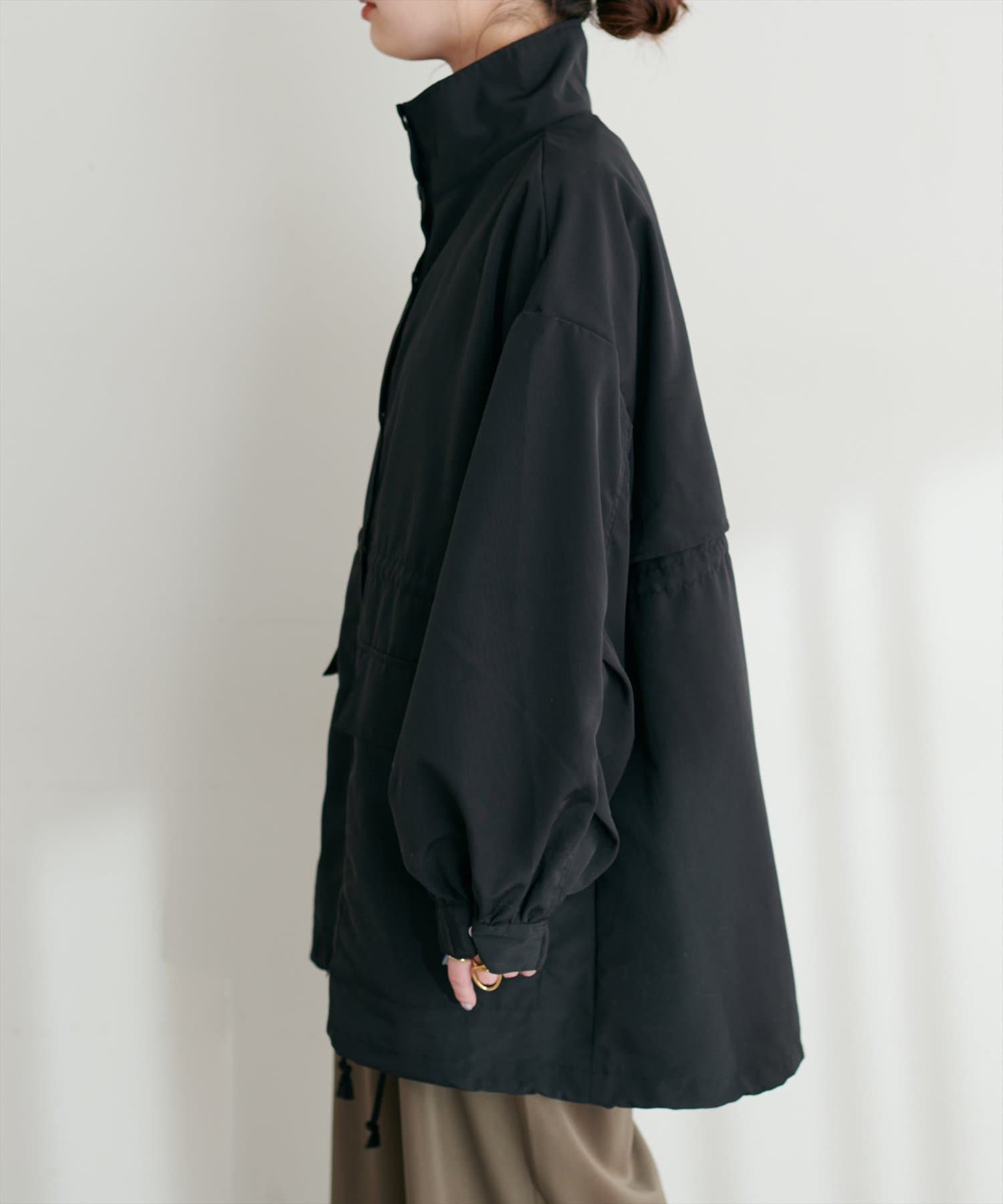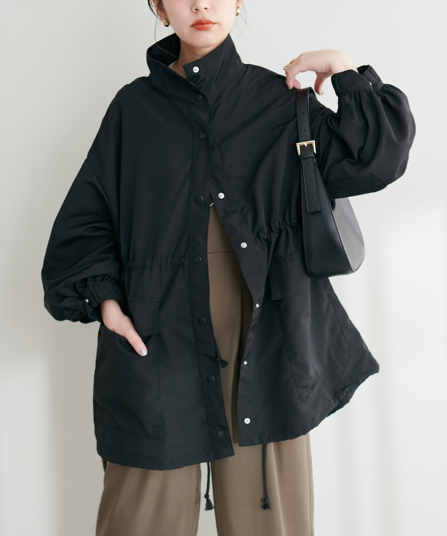 ミリタリー風のディティールを取り入れたボリューム袖が目を惹く、今季トンドのスタンドカラーのマウンテンパーカー。